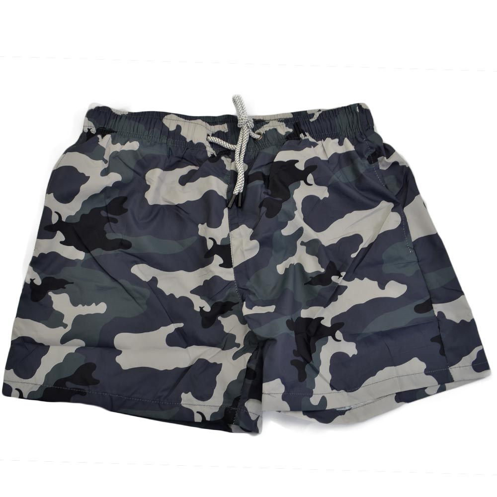 Costume uomo grigio fantasia militare box con rete interna pantaloncino corto laccio made in italy asciugatura rapida