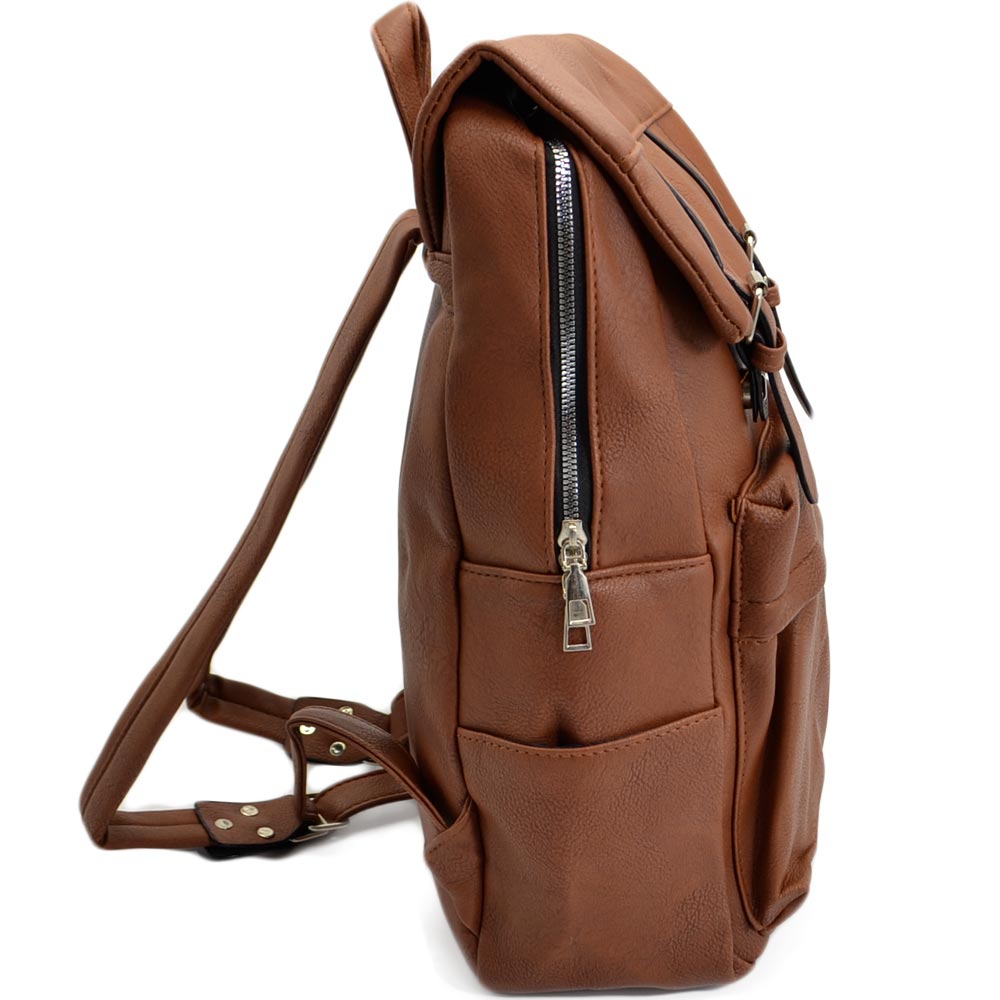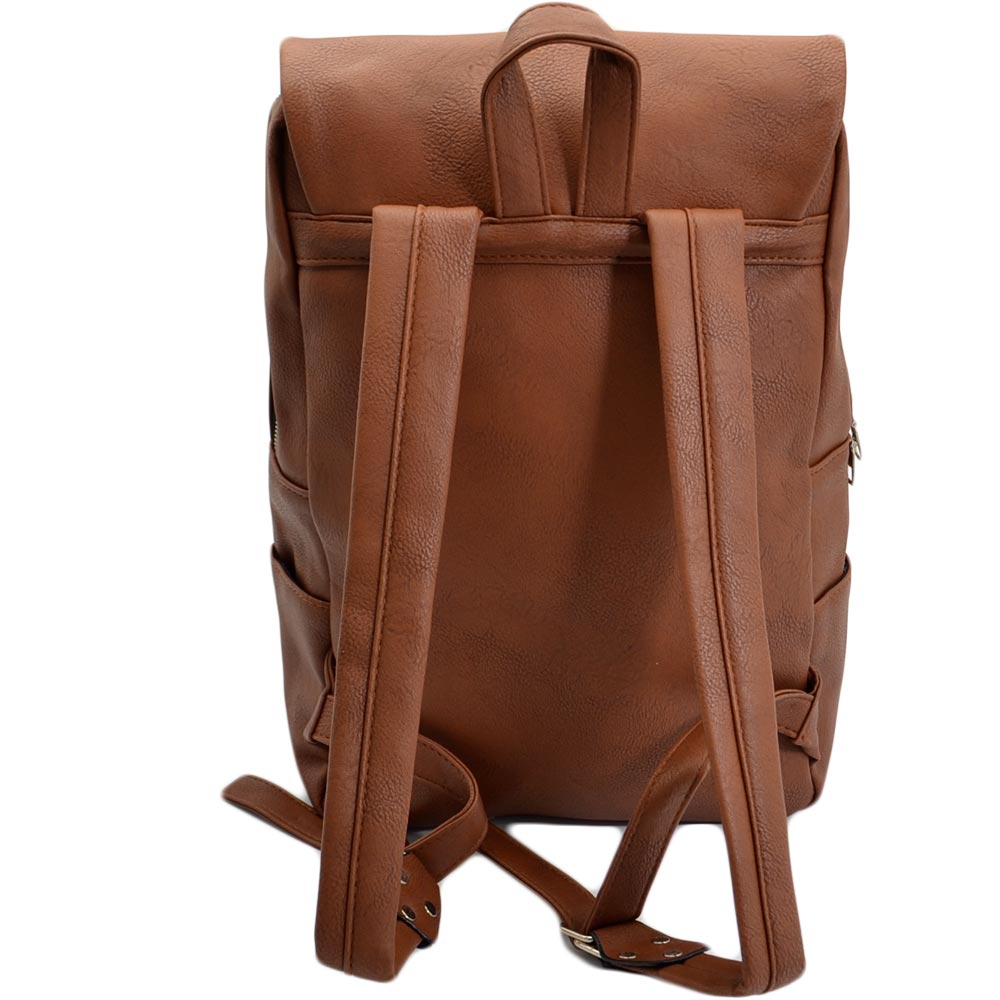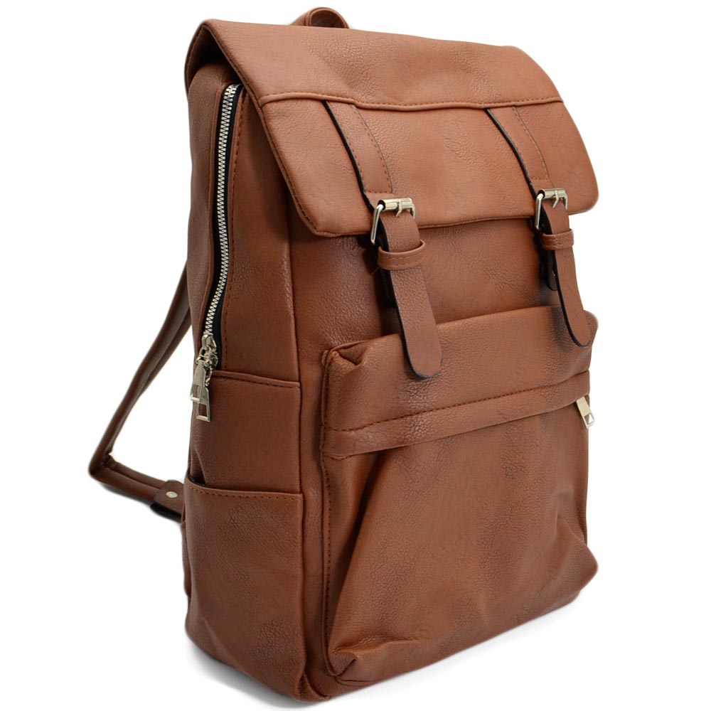 Zaino uomo borsa cartella tascata chiusura zip 2 aperture vari scompartimenti frontale capiente bagaglio viaggio marrone.