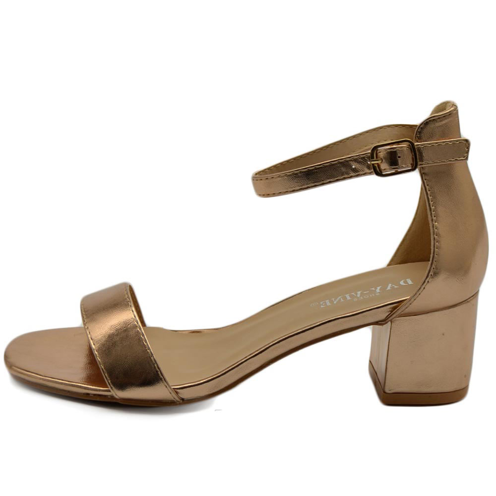 Scarpe sandalo oro rosa donna con tacco 3 cm basso comodo basic con fascia morbida e cinturino alla caviglia cerimonia
