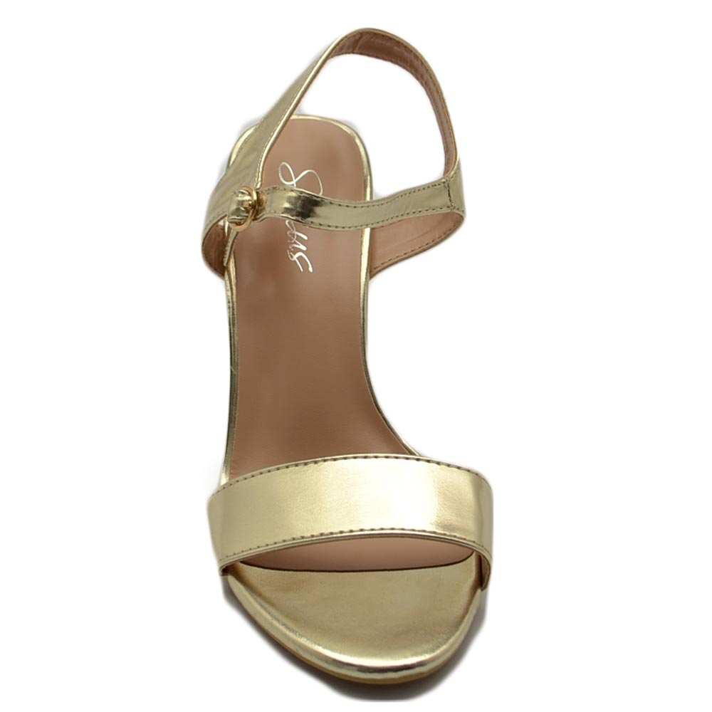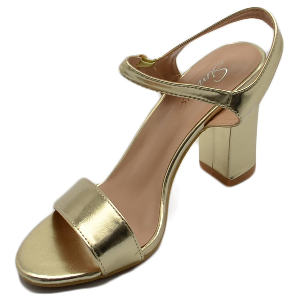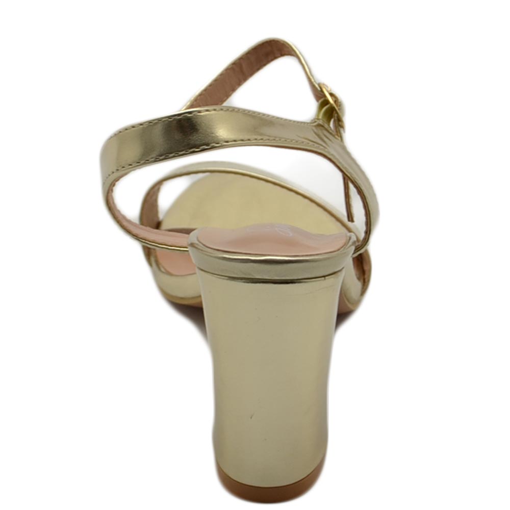 Scarpe sandalo oro donna con tacco 3 cm basso comodo basic con fascia morbida e cinturino alla caviglia cerimonia