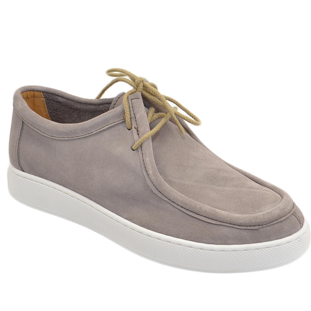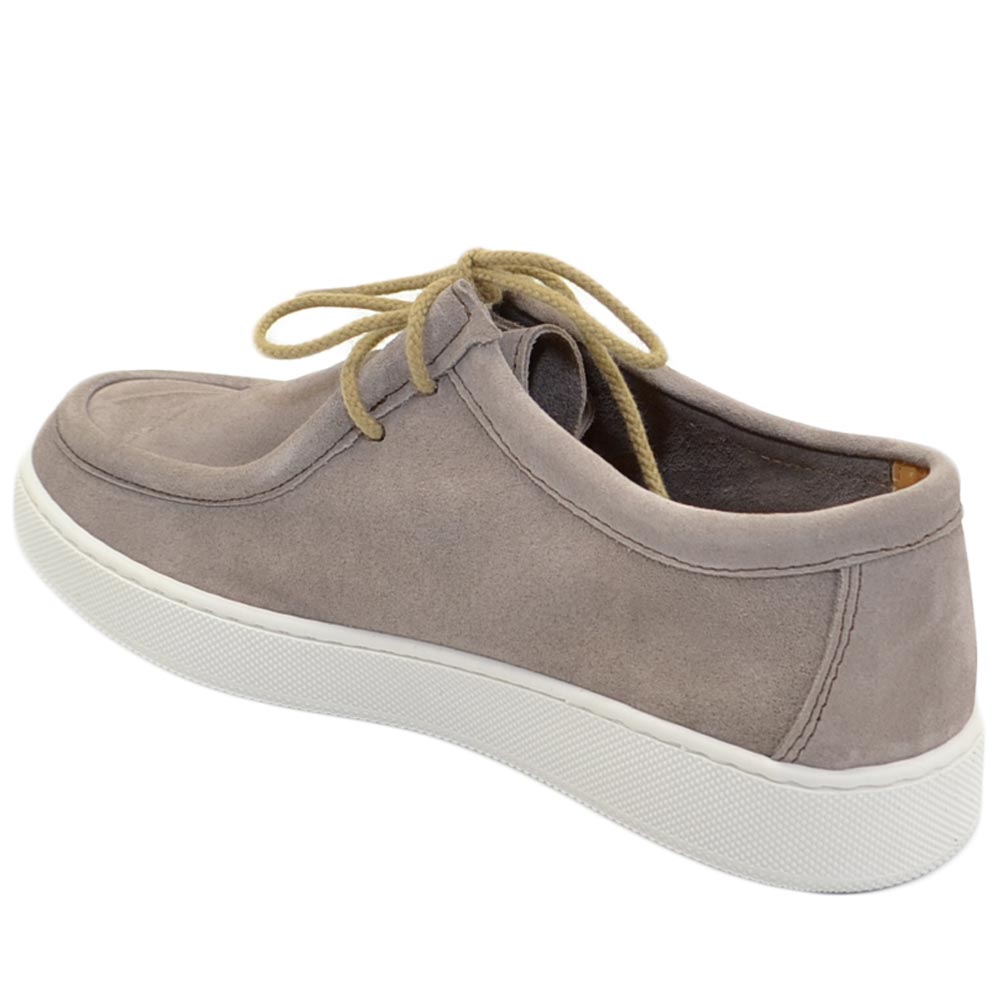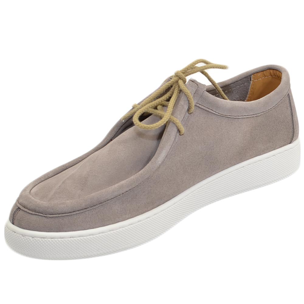 SCARPA UOMO MODELLO INGEGNERE IN VERA PELLE SCAMOSCIATO BEIGE CON GOMMA BIANCA ULTRALEGGERA E LACCI TONO SU TONO