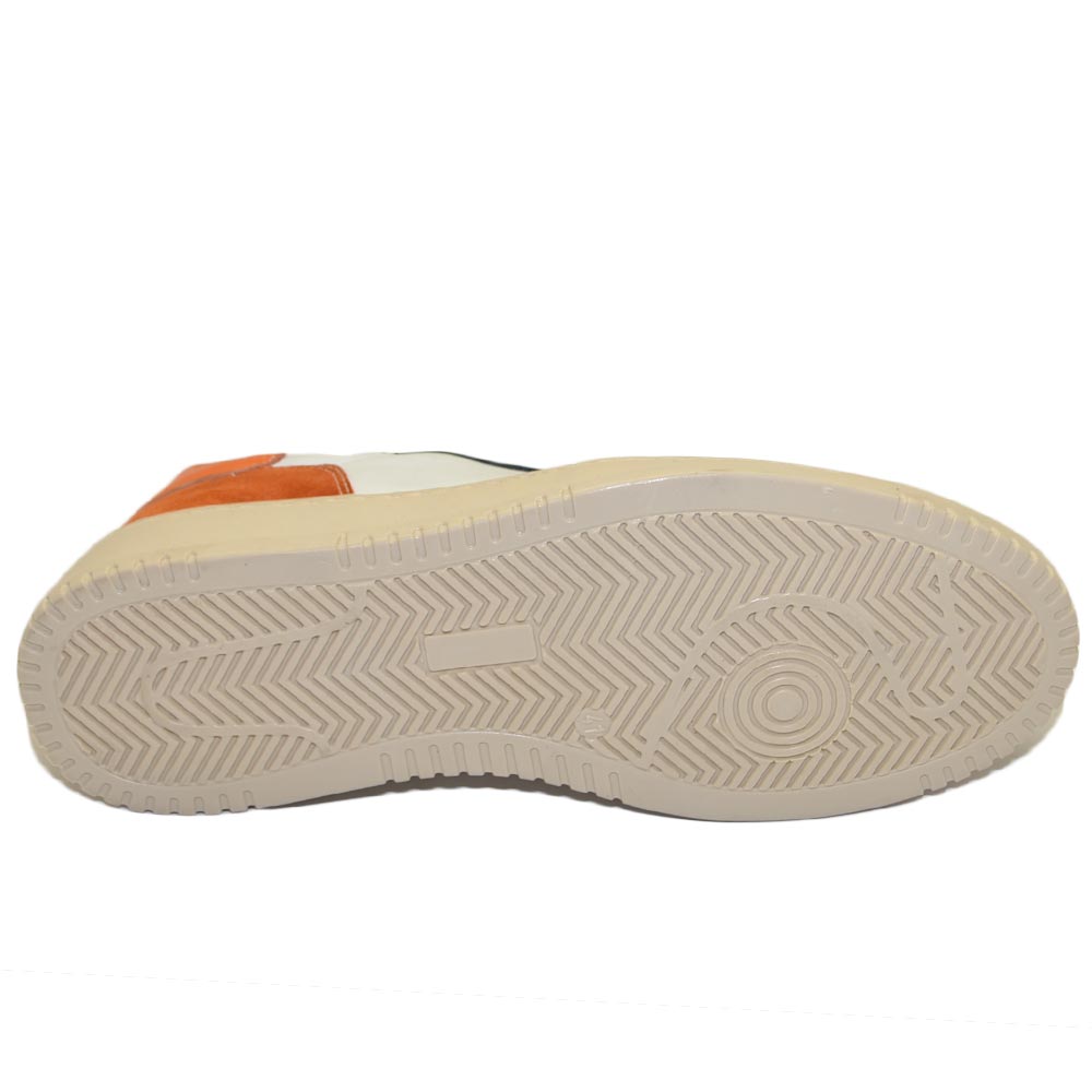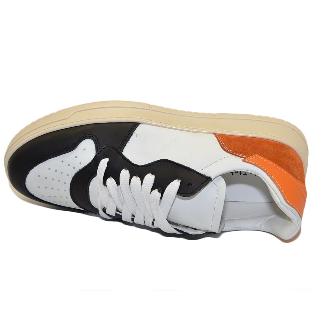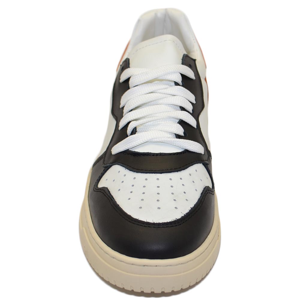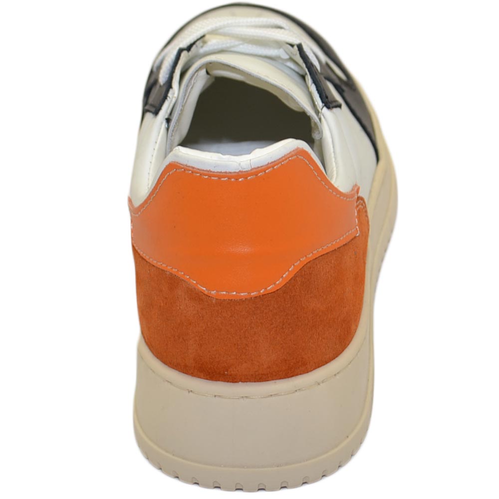 Scarpa sneakers multicolore bianco arancione e nero uomo basic vera pelle lacci comodo fondo in gomma beige