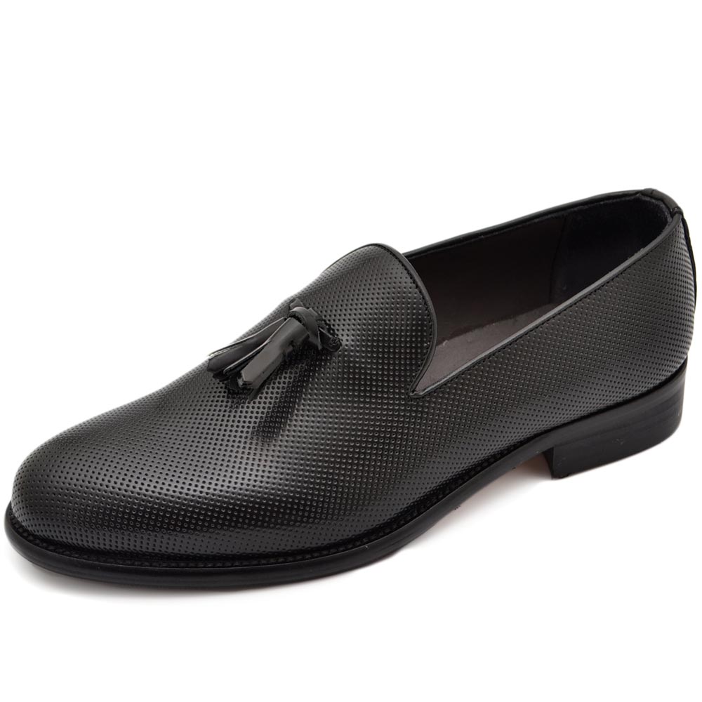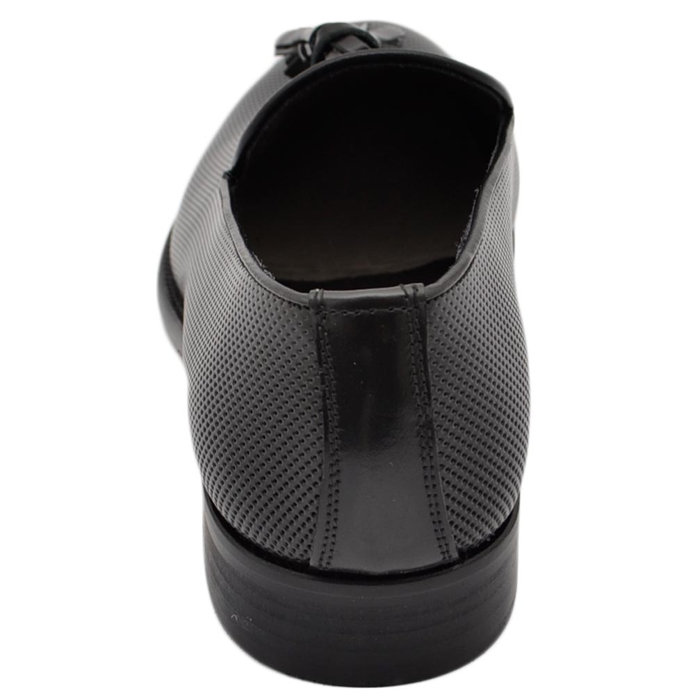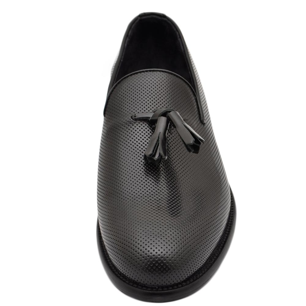 Scarpe uomo mocassino elegante cerimonia in vera pelle nera puntinat con nappe fondo cuoio con antiscivolo made in italy