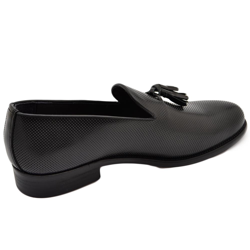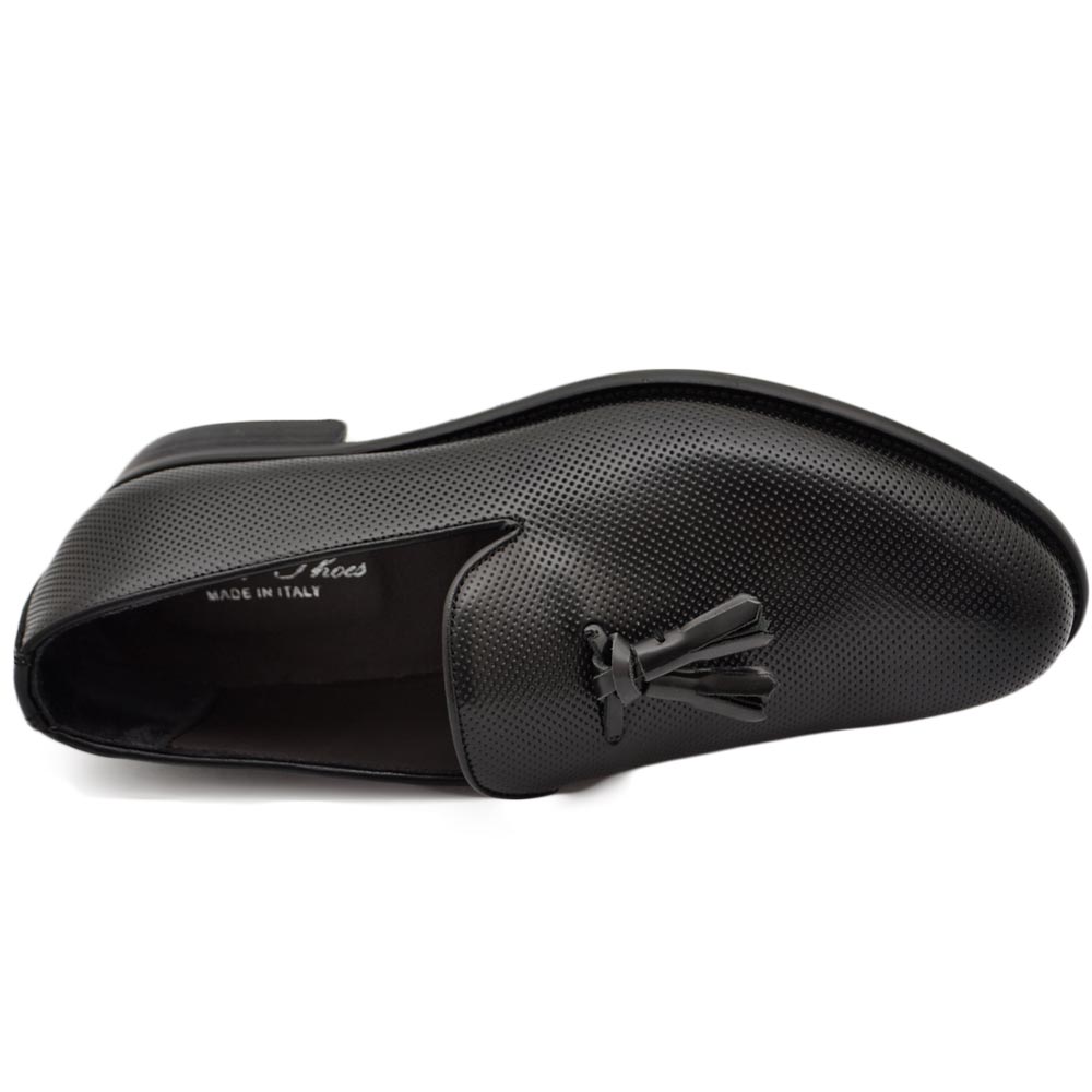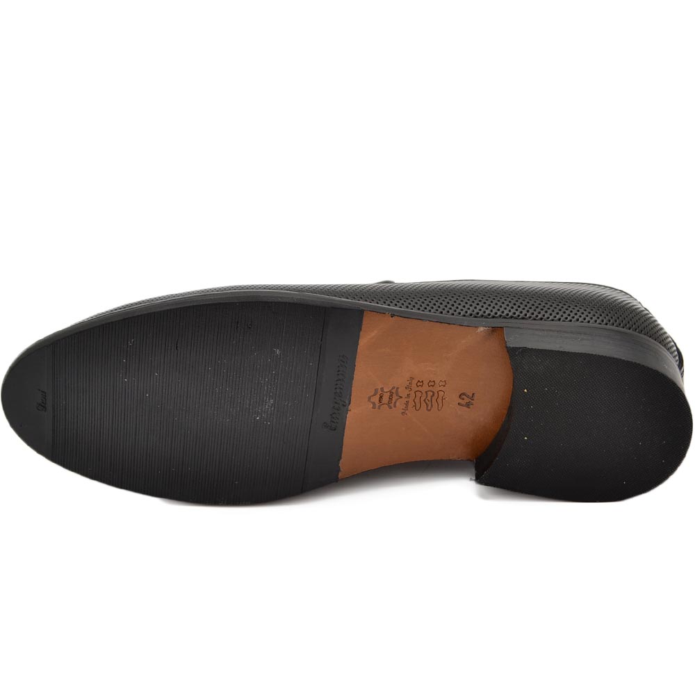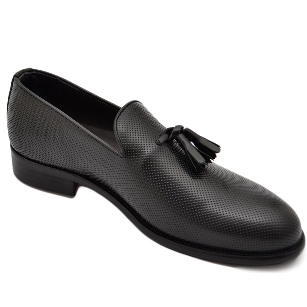 Scarpe uomo mocassino elegante cerimonia in vera pelle nera puntinat con nappe fondo cuoio con antiscivolo made in italy