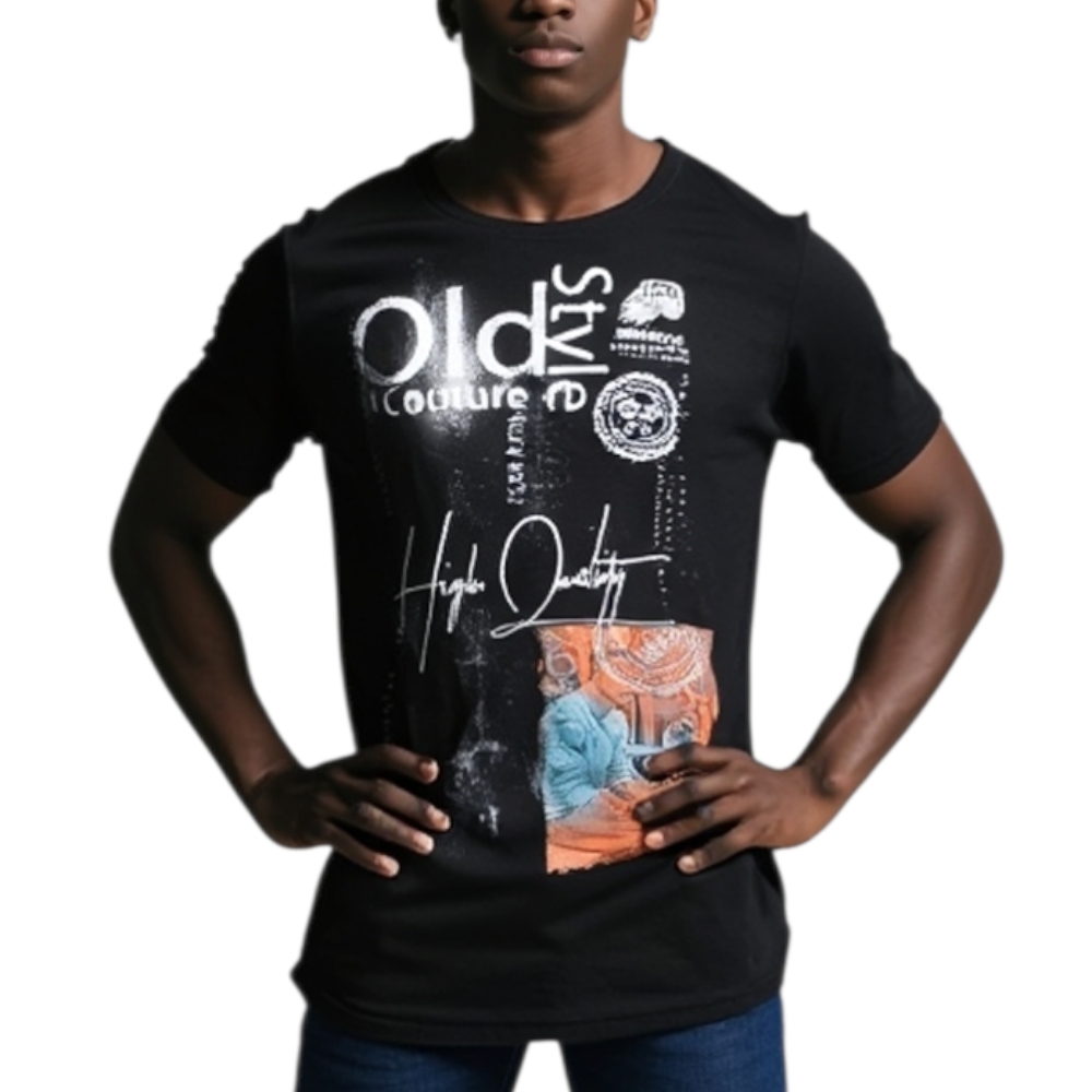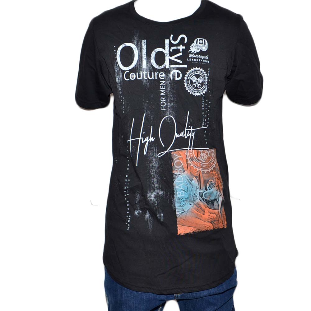 T-Shirt Uomo Girocollo nera Stampa Con Scritta vintage Casual Slim Fit moda uomo