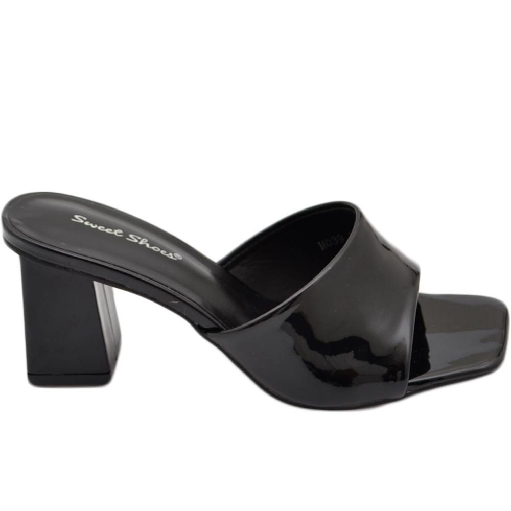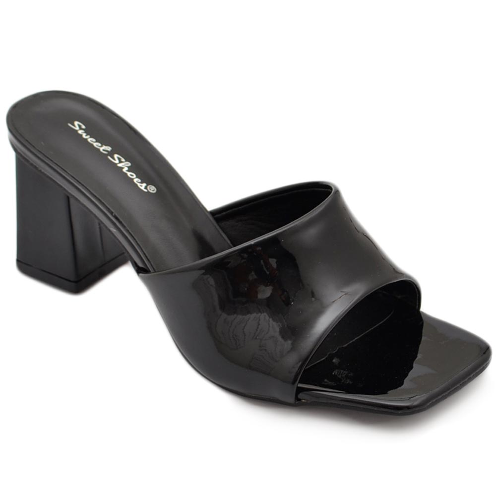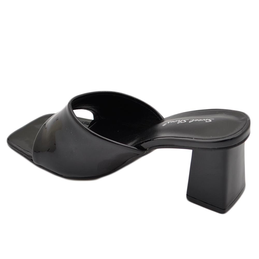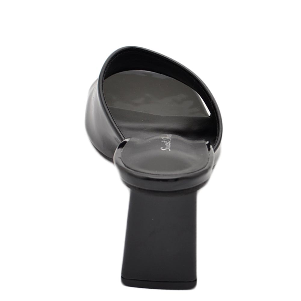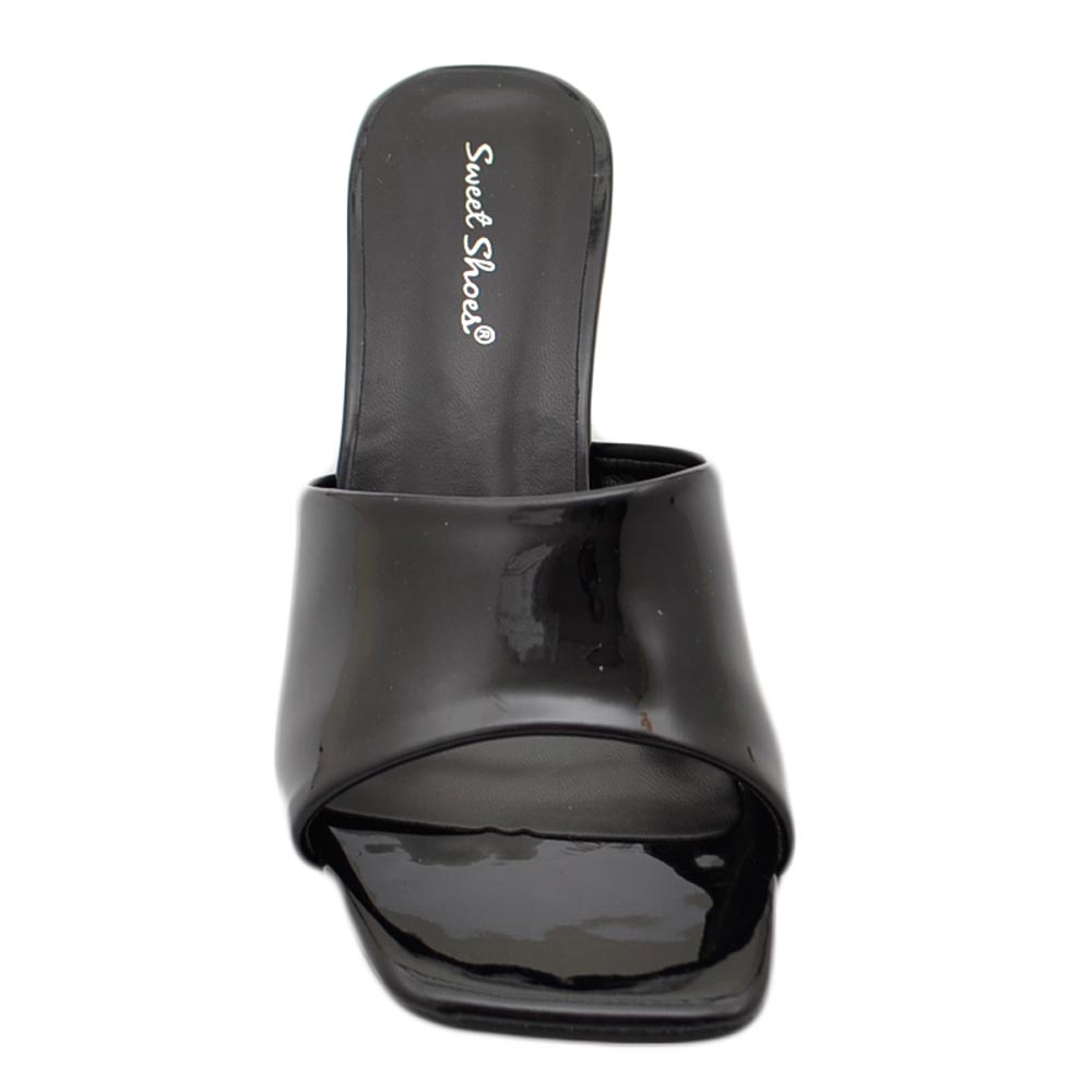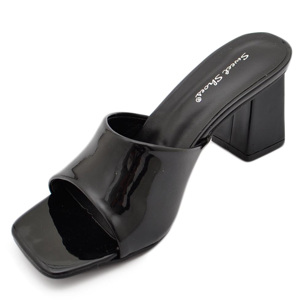 Sandali donna mules sabot con tacco grosso 7 cm fascetta larga lucidi nero comodo ciabi moda tendenza