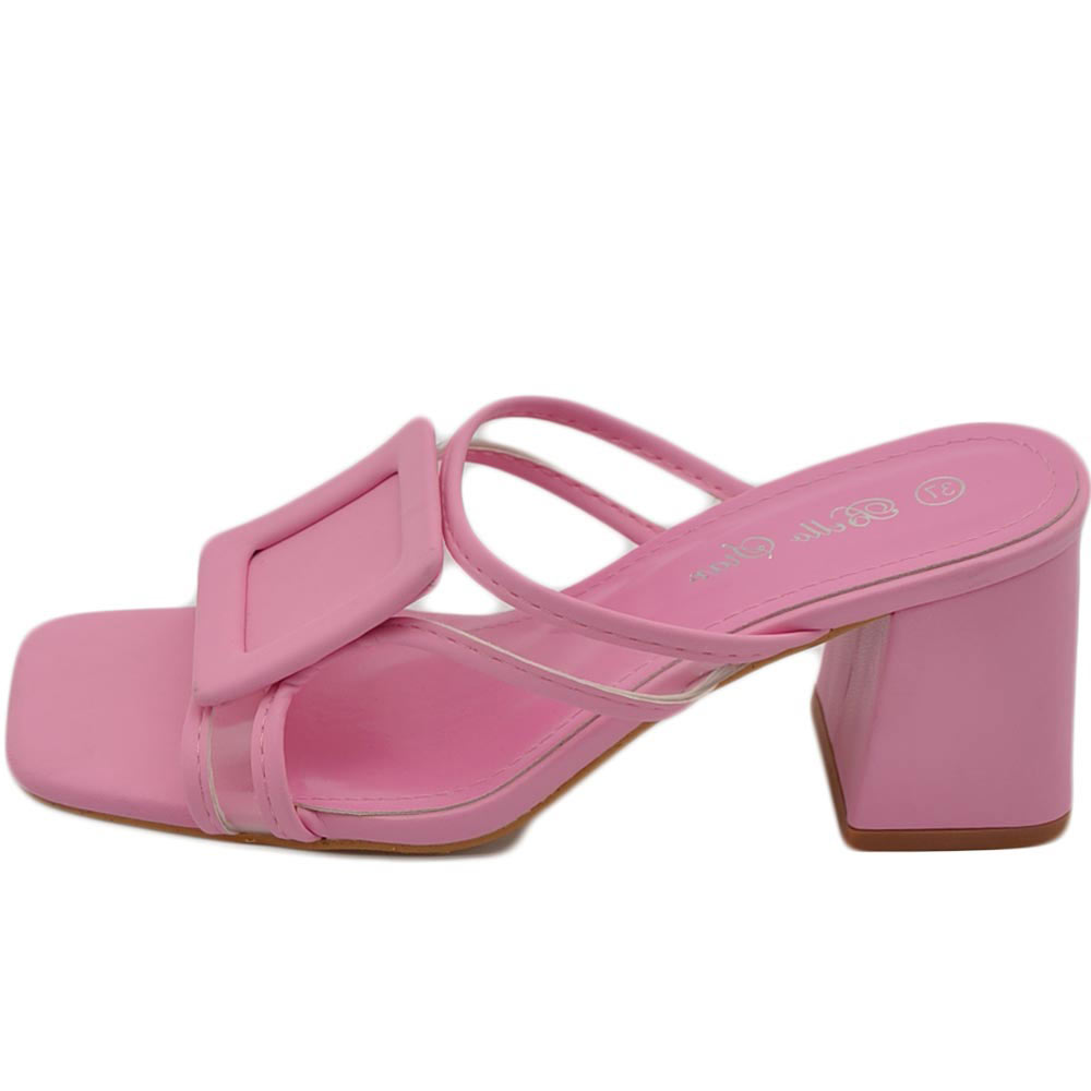 Sandali donna rosa acceso mules sabot pantofola lasci trasparenti accessorio con tacco grosso 7 cm comodo moda tendenza