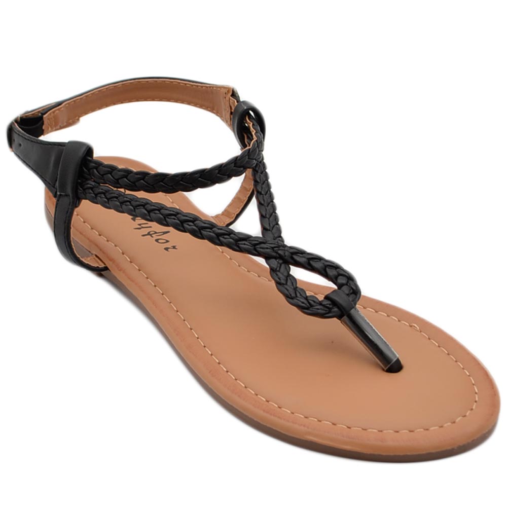 Sandalo basso infradito donna incrociata nero cinturino alla caviglia antiscivolo fondo imbottito in memory linea basic