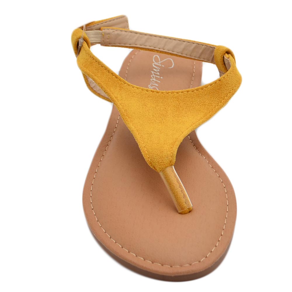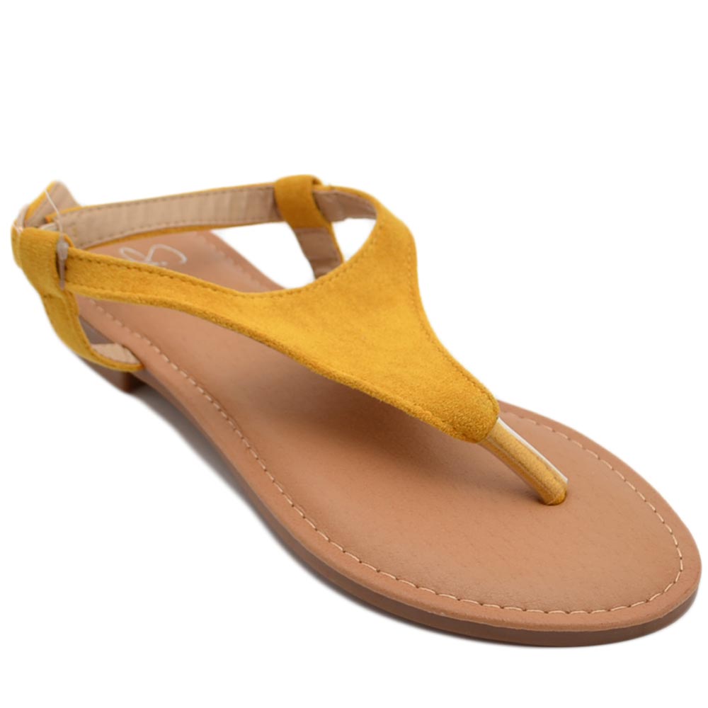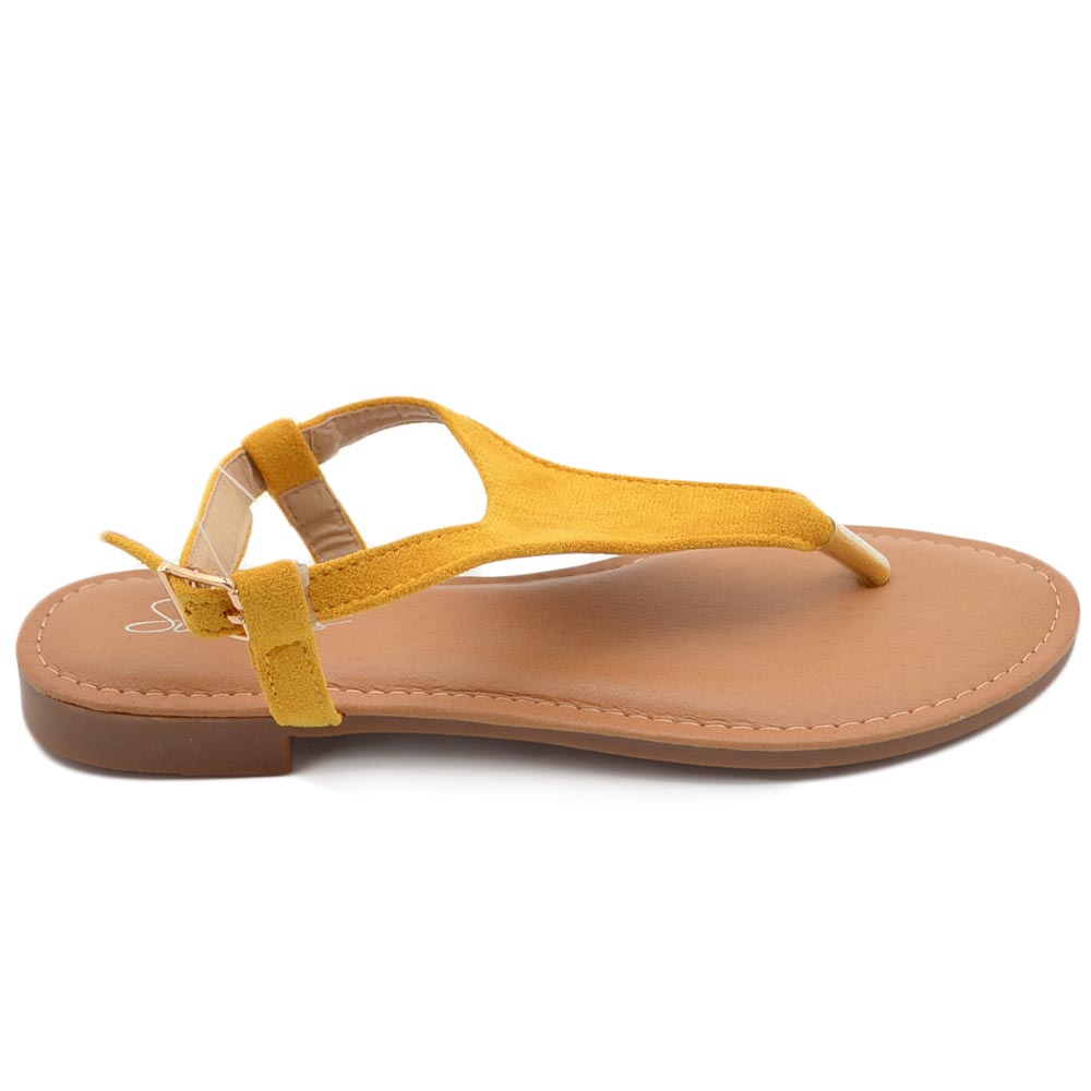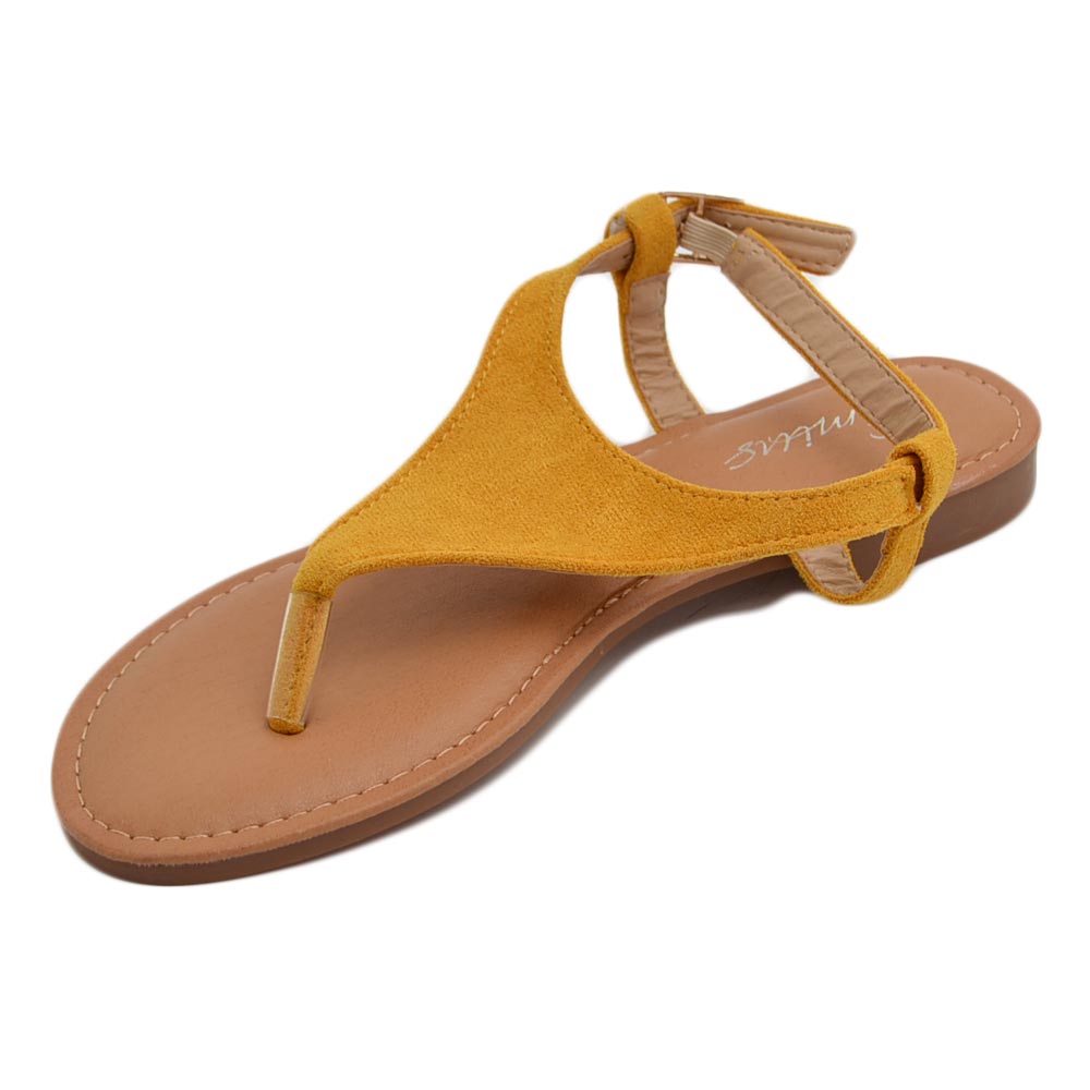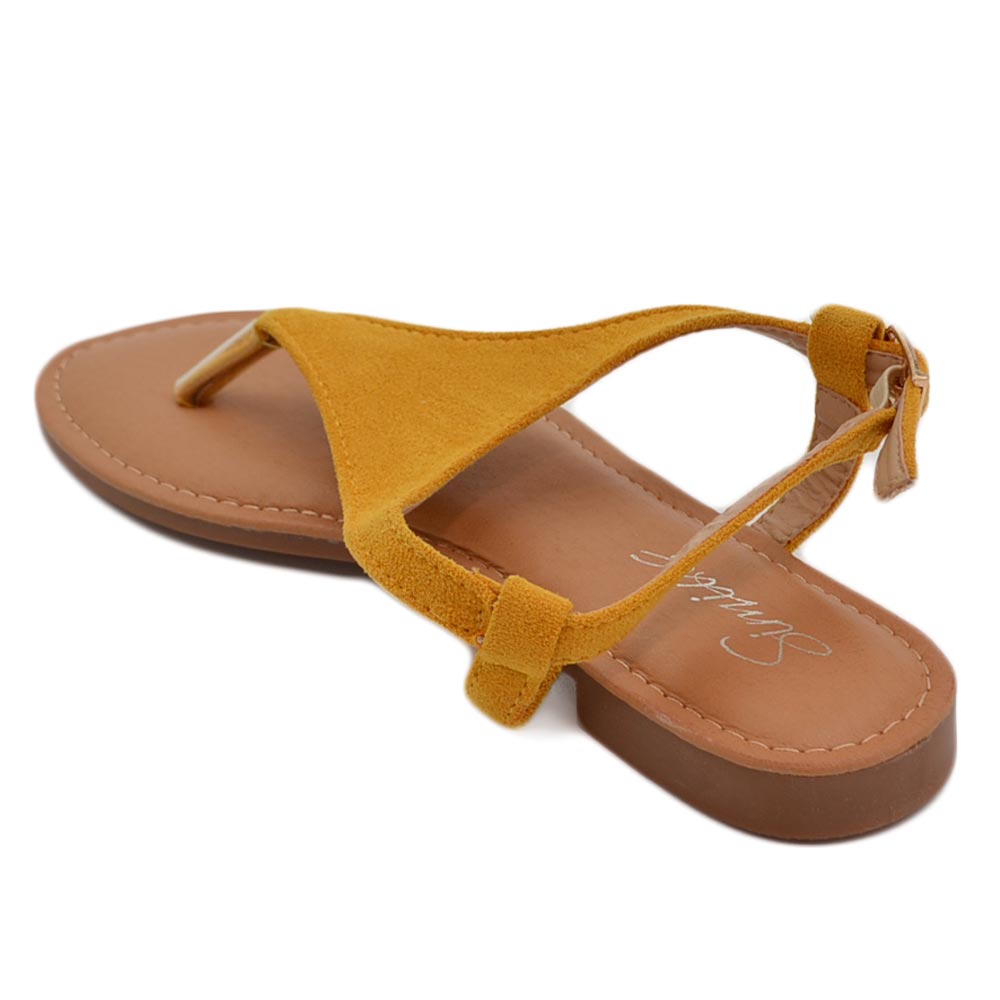 Sandalo basso giallo infradito in morbida alcantara cinturino alla caviglia fondo imbottito in memory comoda estate