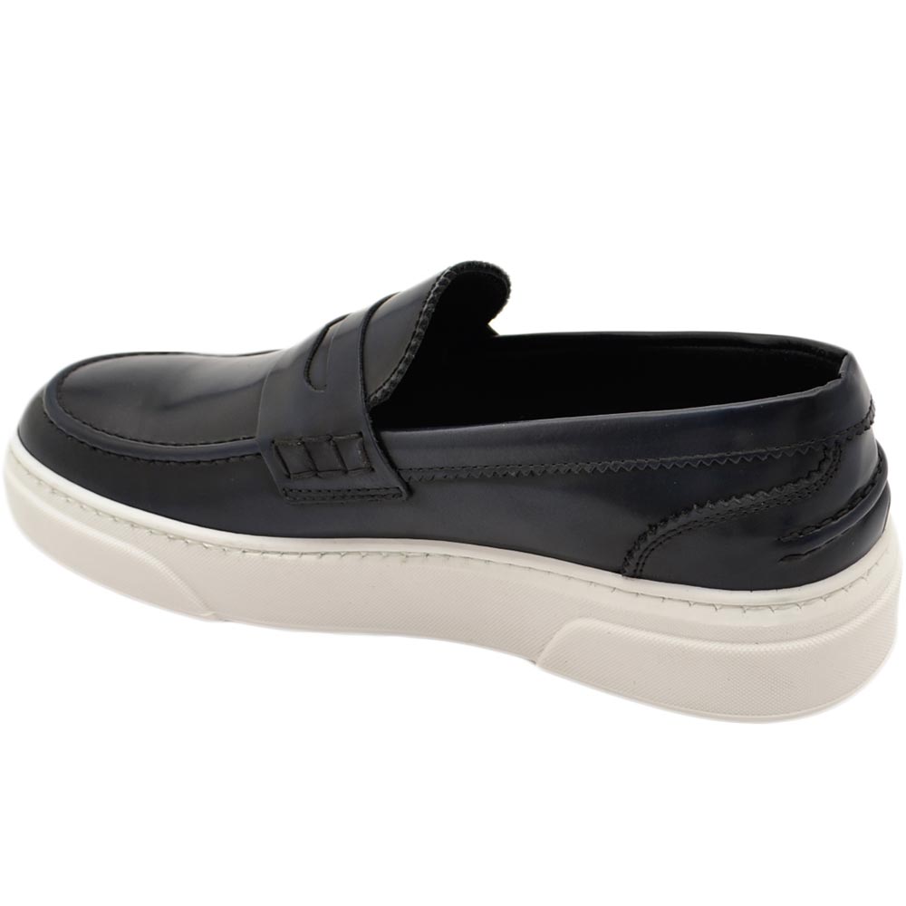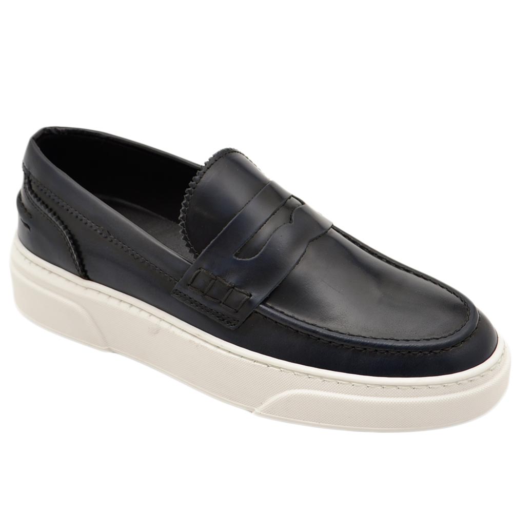 Mocassini uomo college con nappine in vera pelle di vitello nero fondo bianco alto gomma ultraleggera 3 cm.