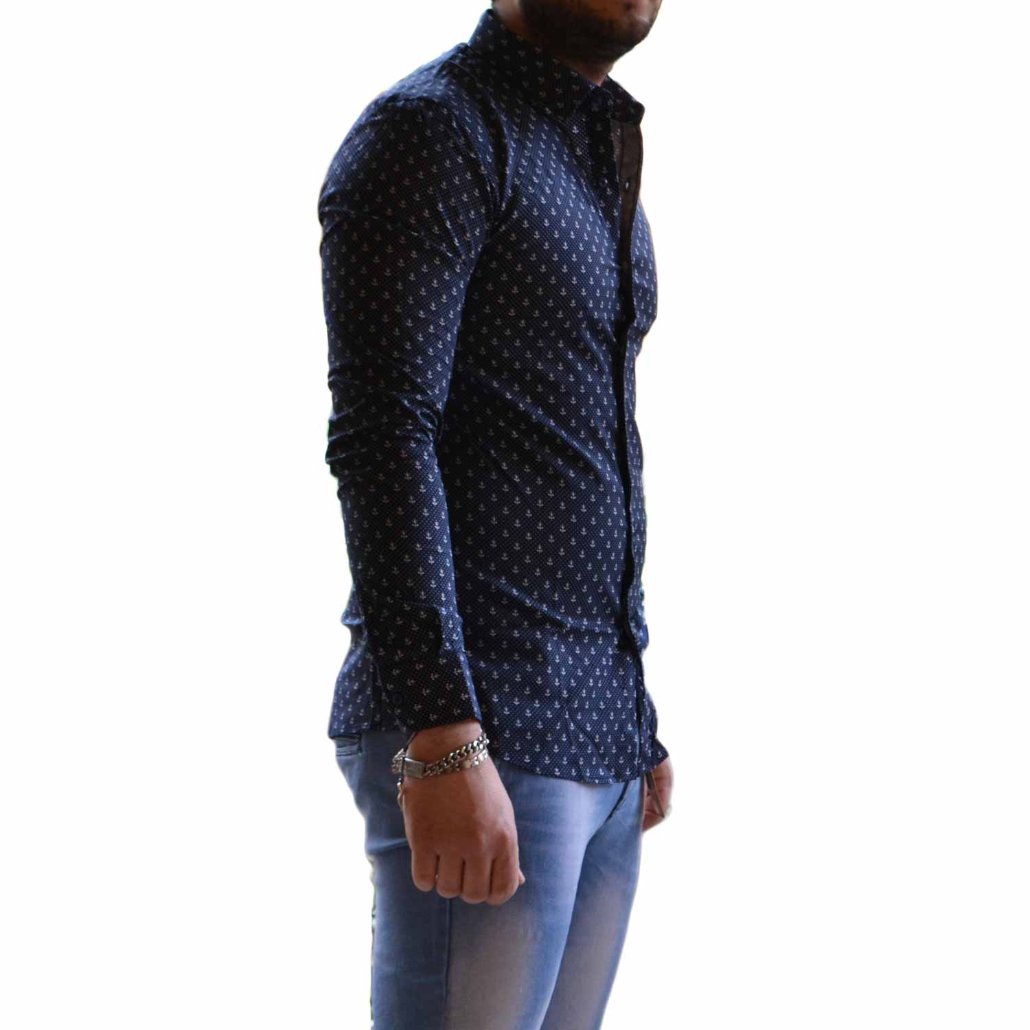 Camicia Ancora Uomo Manica Lunga Cotone Pois Casual Regular