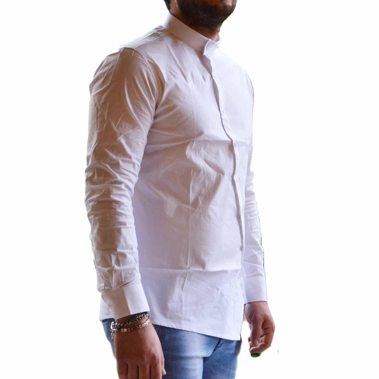 camicia uomo slim coreana curva bianca 100% cotone made in italy collo aperto