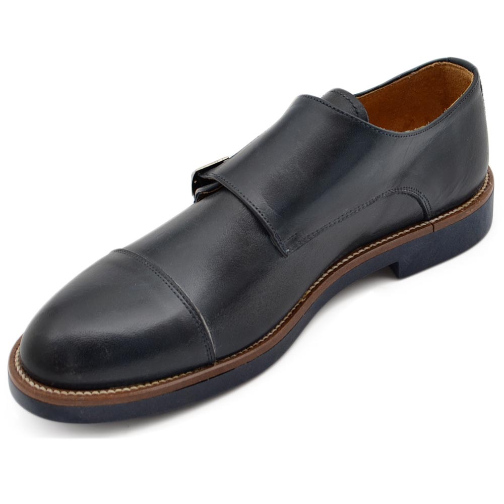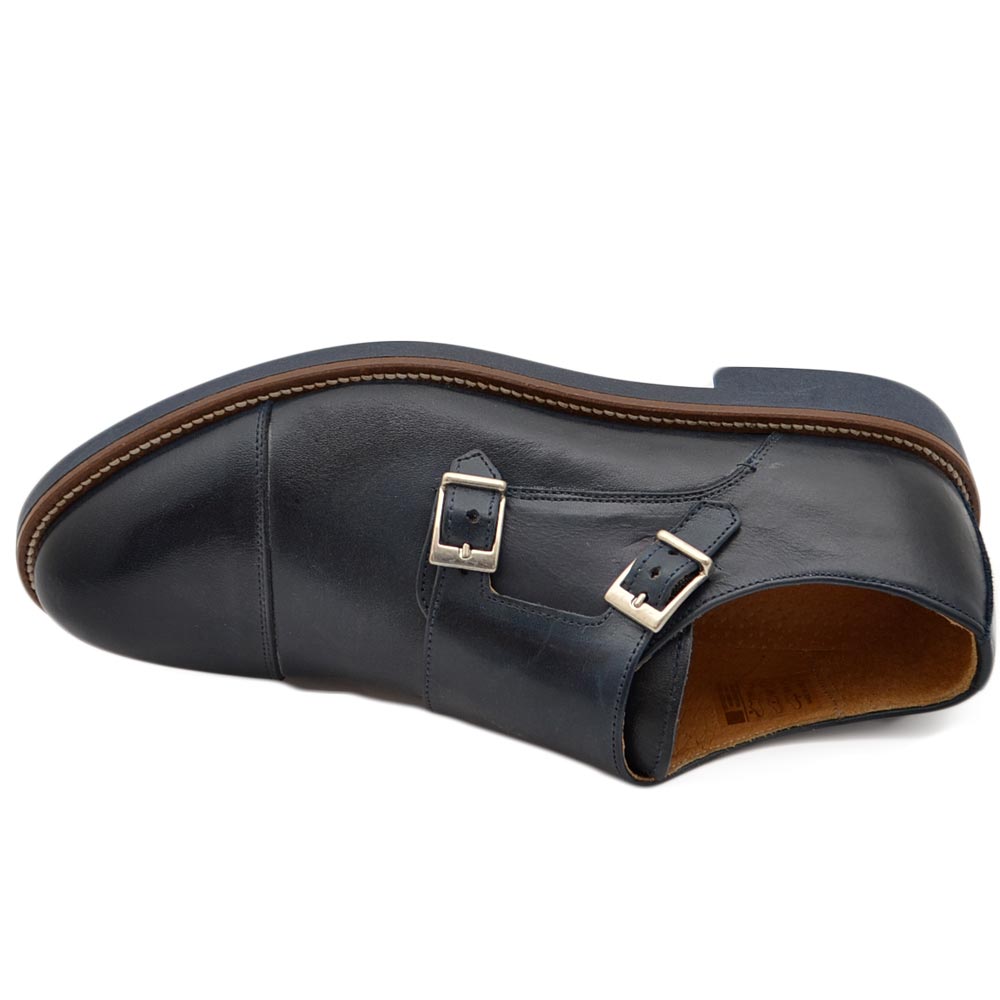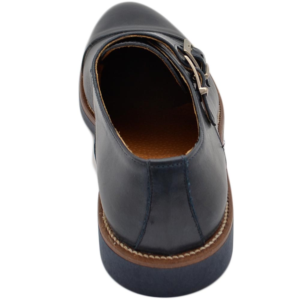 Scarpe doppia fibbia uomo classico sportivo in vera pelle nappa blu opaca suola gomma sottile bicolore