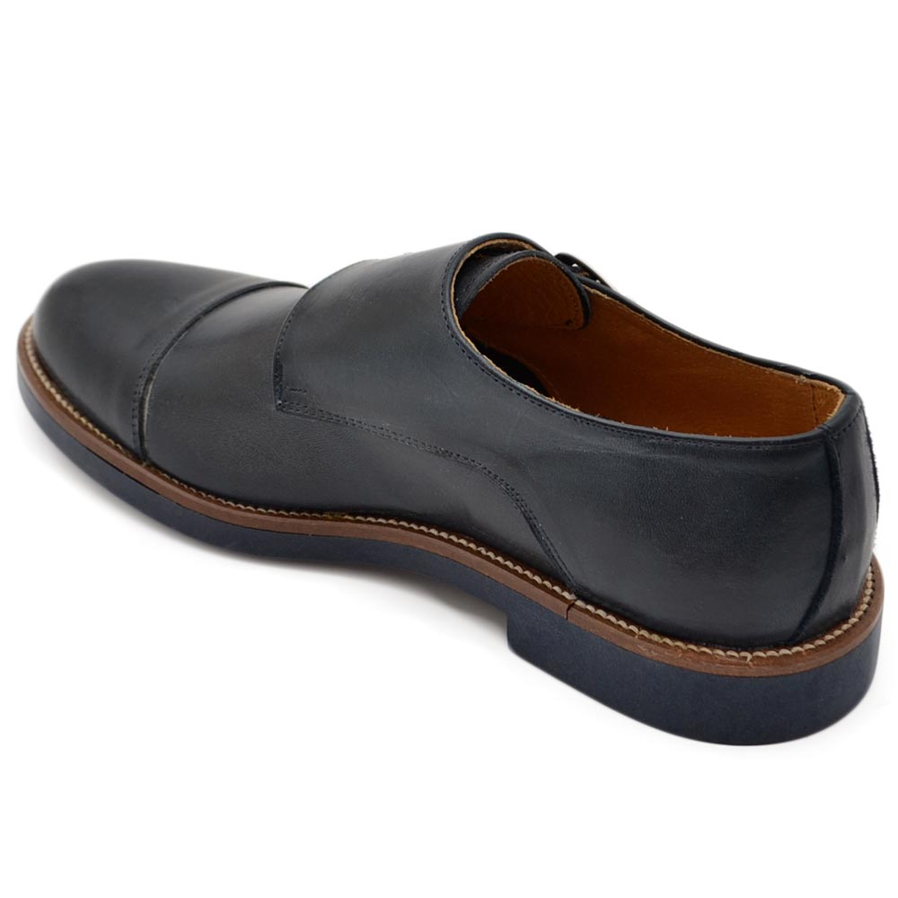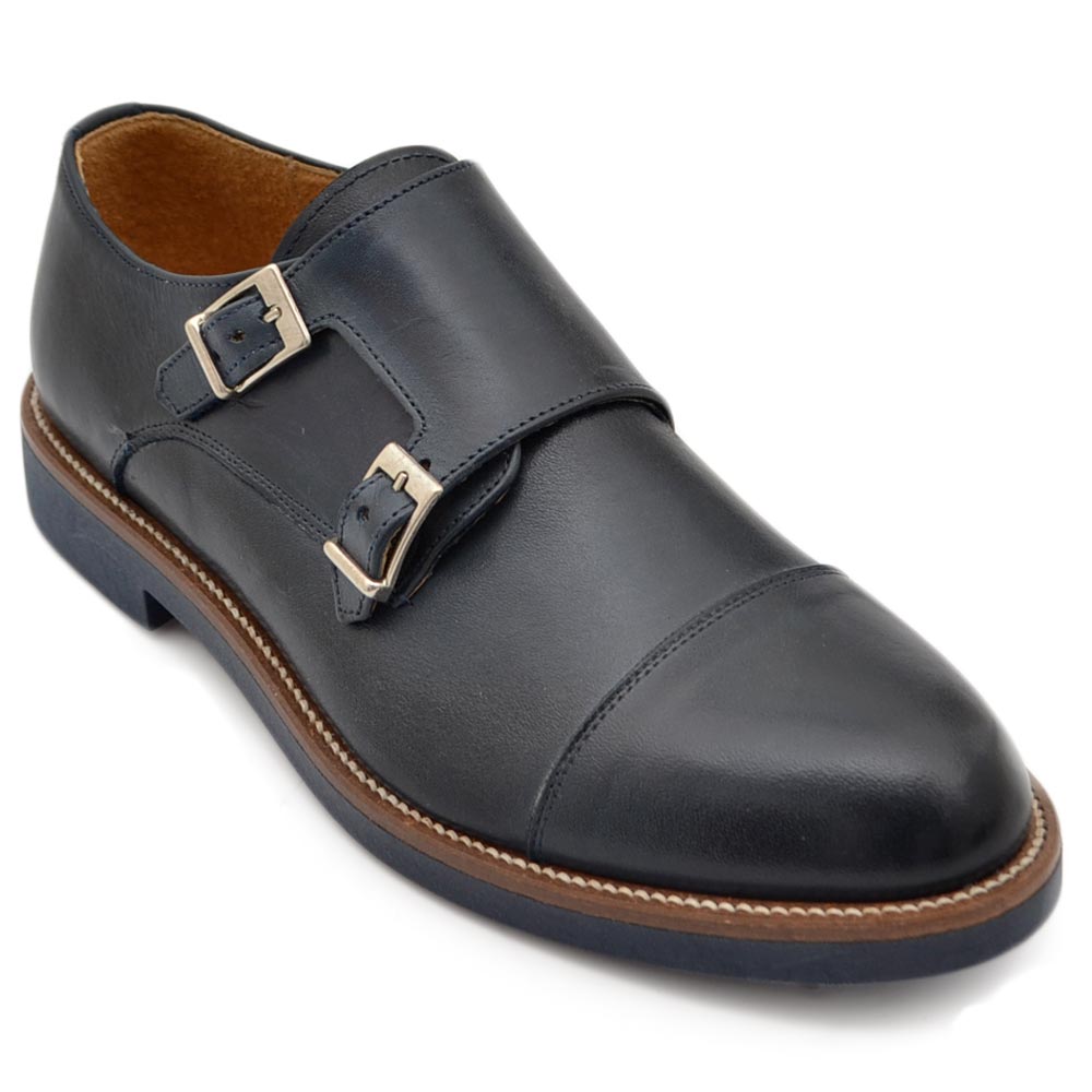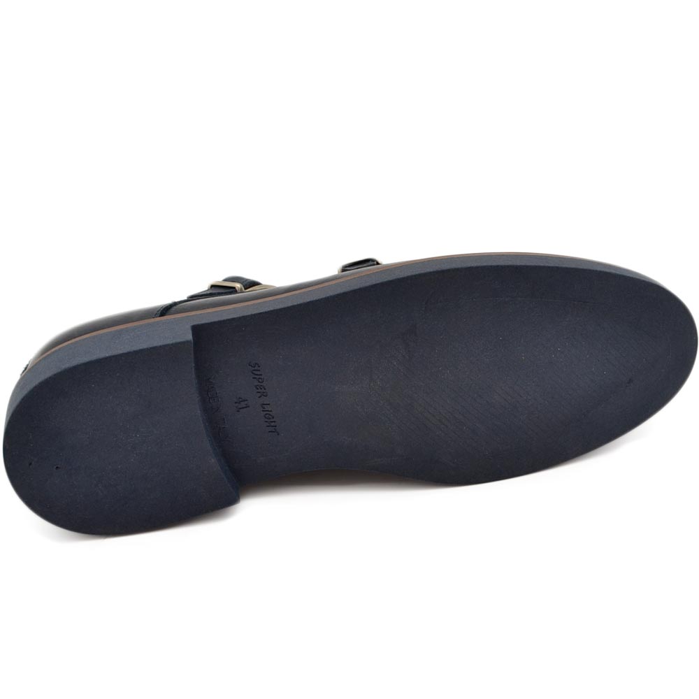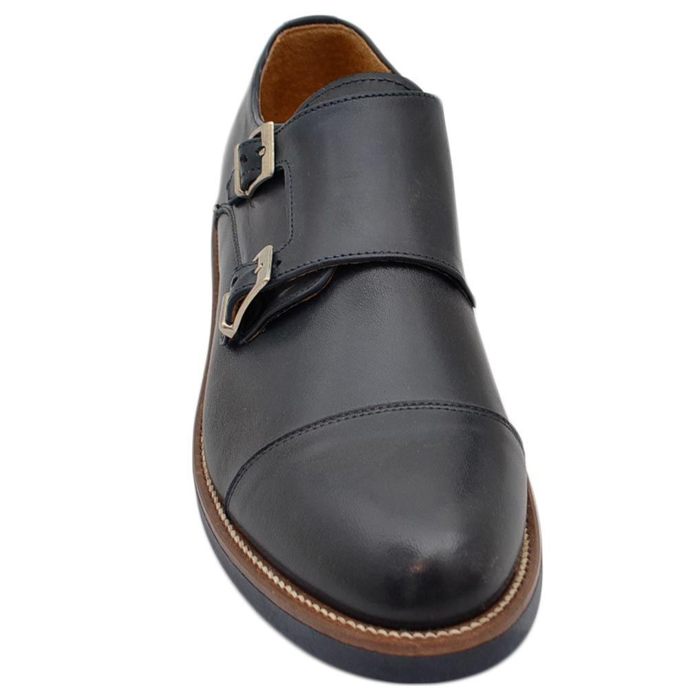 Scarpe doppia fibbia uomo classico sportivo in vera pelle nappa blu opaca suola gomma sottile bicolore