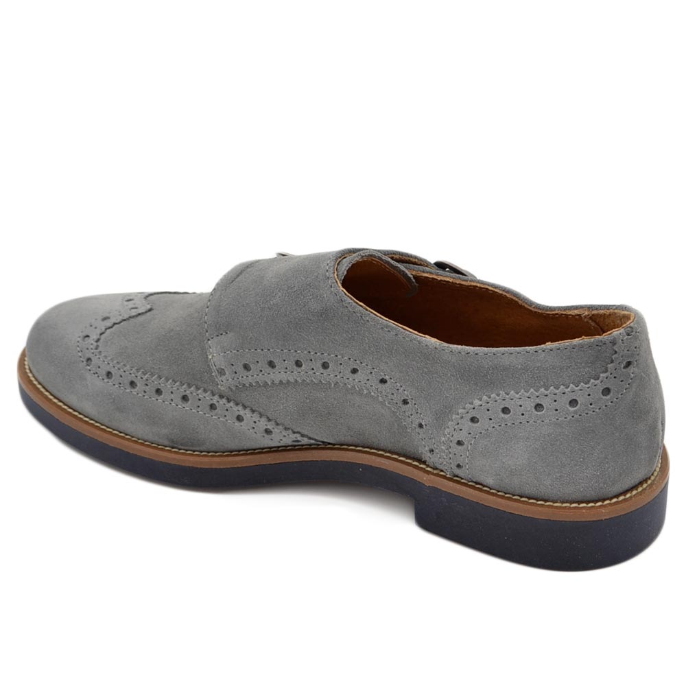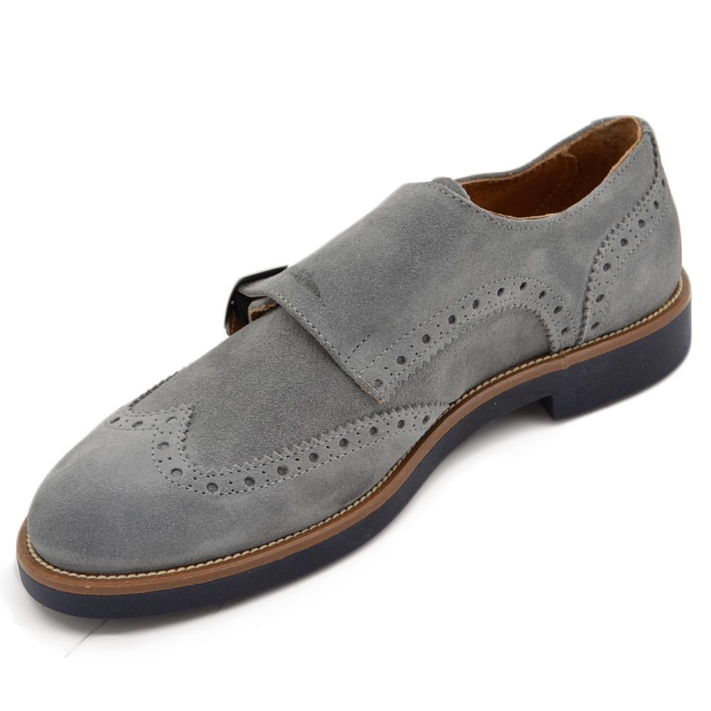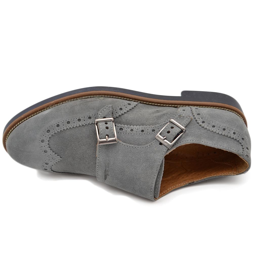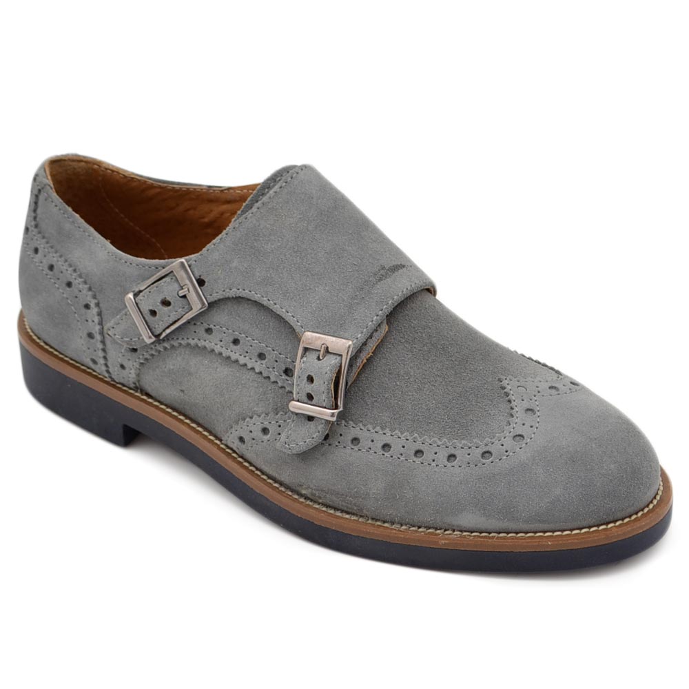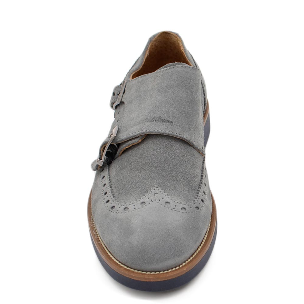 Scarpe uomo grigio ghiaccio allacciatura doppia fibbia in vera pelle e camoscio spazzolato fondo classico sportivo mem.