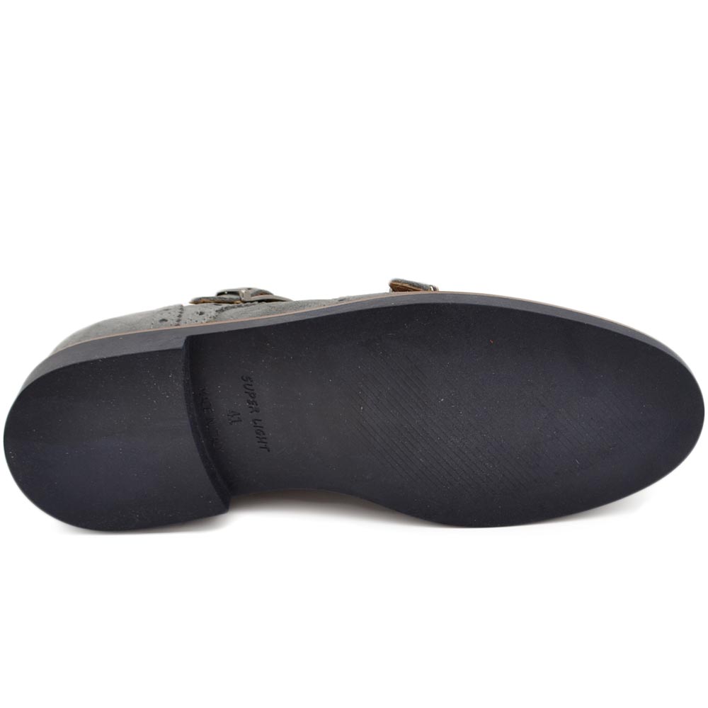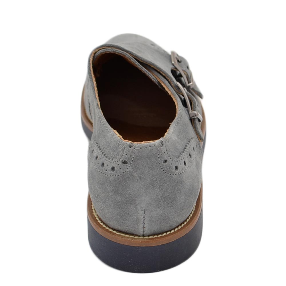Scarpe uomo doppia fibbia grigio in vera pelle morbida scamosciata con suola in gomma sottile bicolore classico sportivo