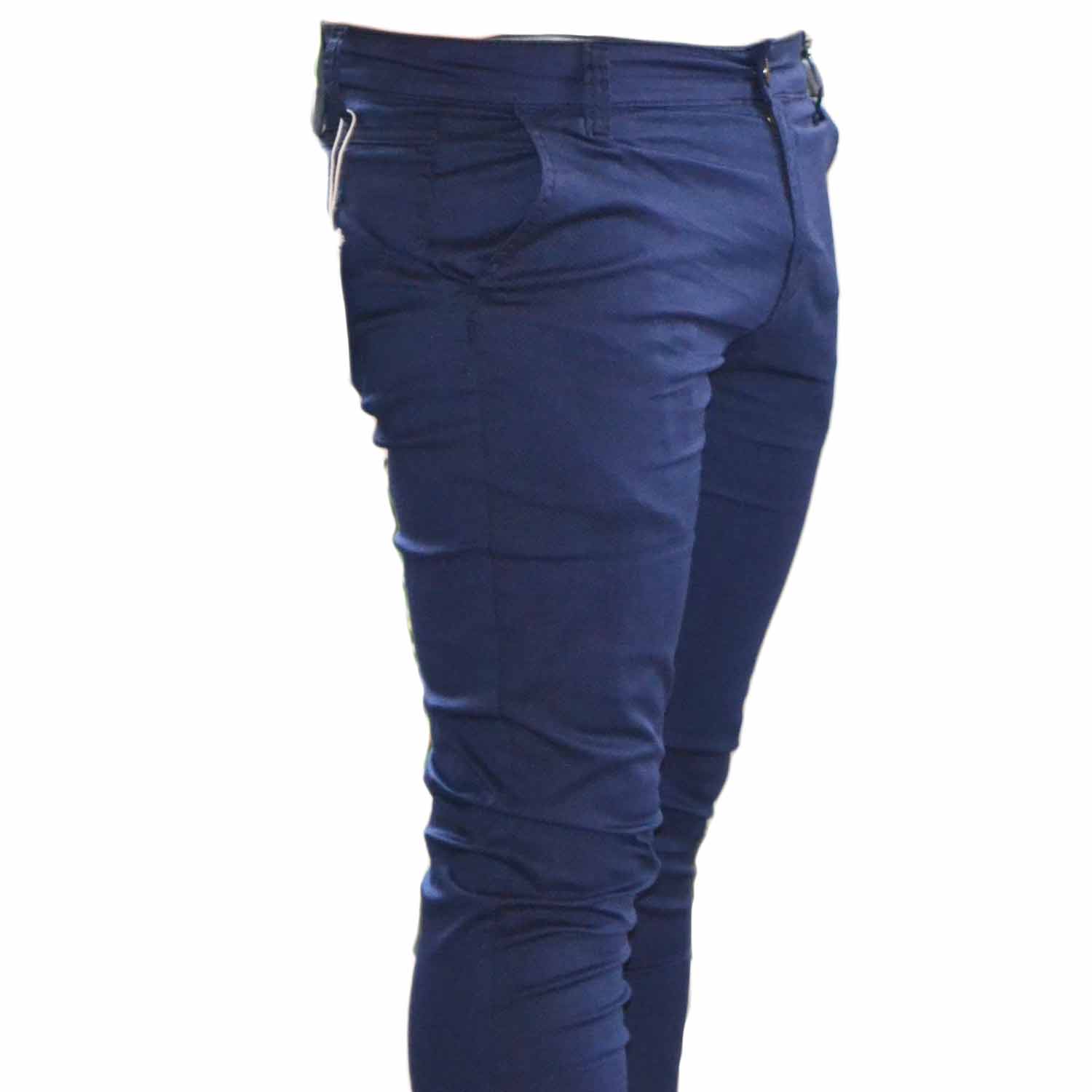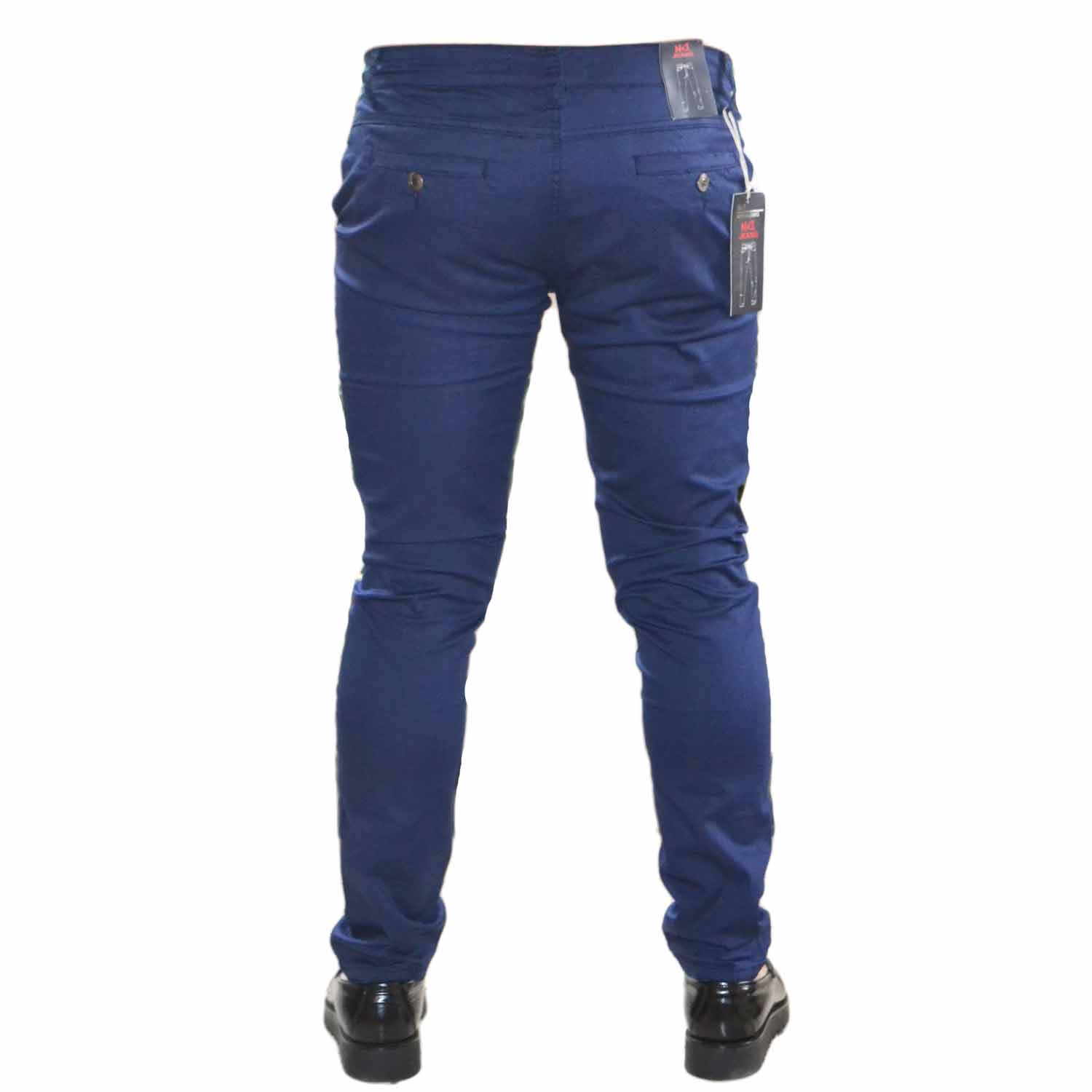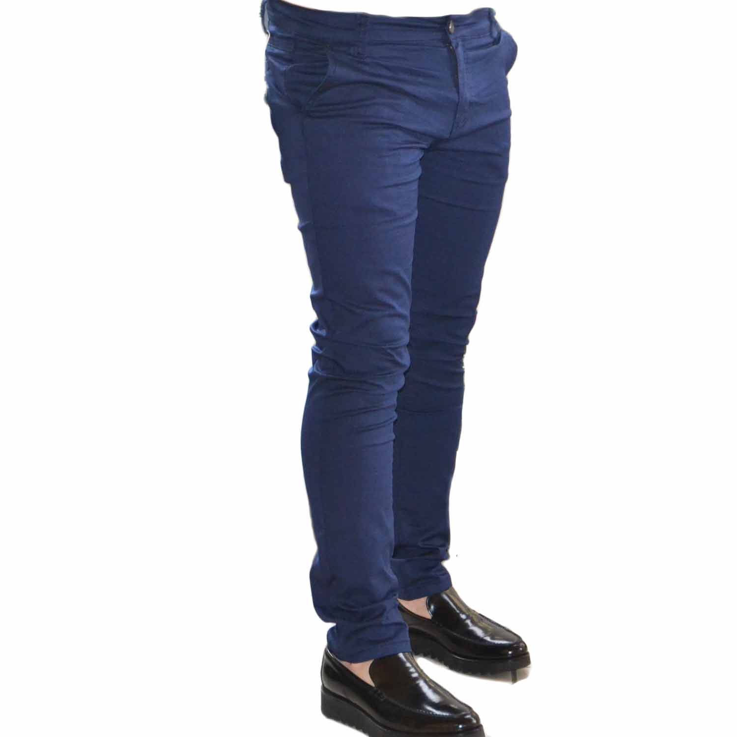 Pantalone Uomo Blu fantsia Modello Tasca America Chino Slim Cotone Elastico classico