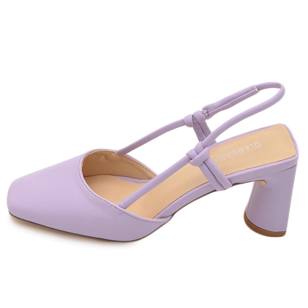 Decollete scarpe donna in ecopelle lilla con tacco largo punta quadrata open toe chiusura alla caviglia moda eventi