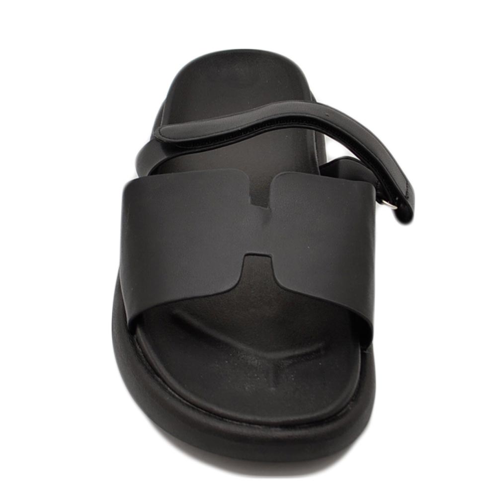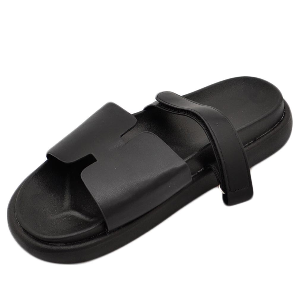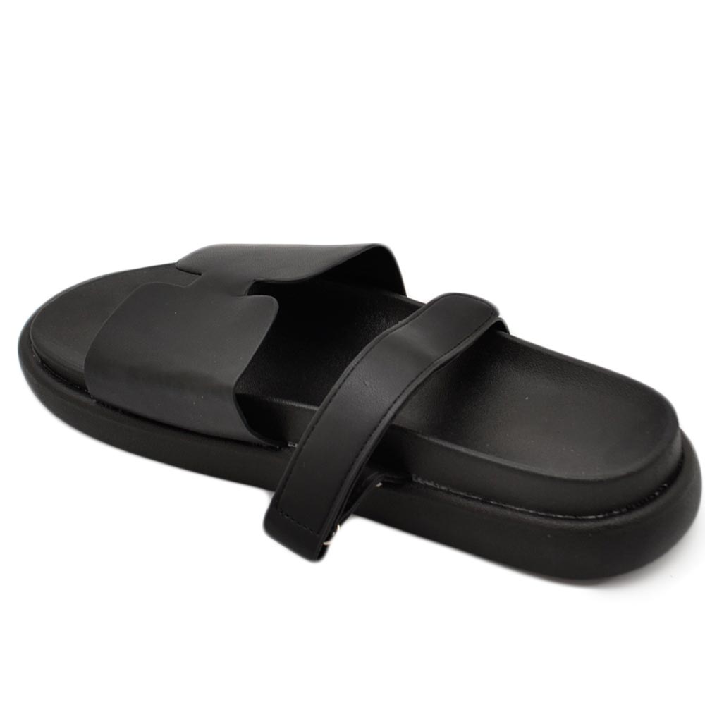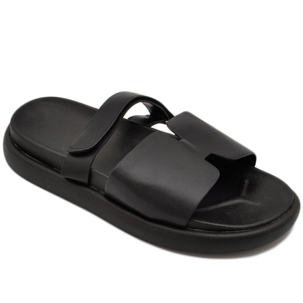 Pantofole ciabatte donna platform zeppa nera con fascia e fibbia strappo regolabile su dorso comodo