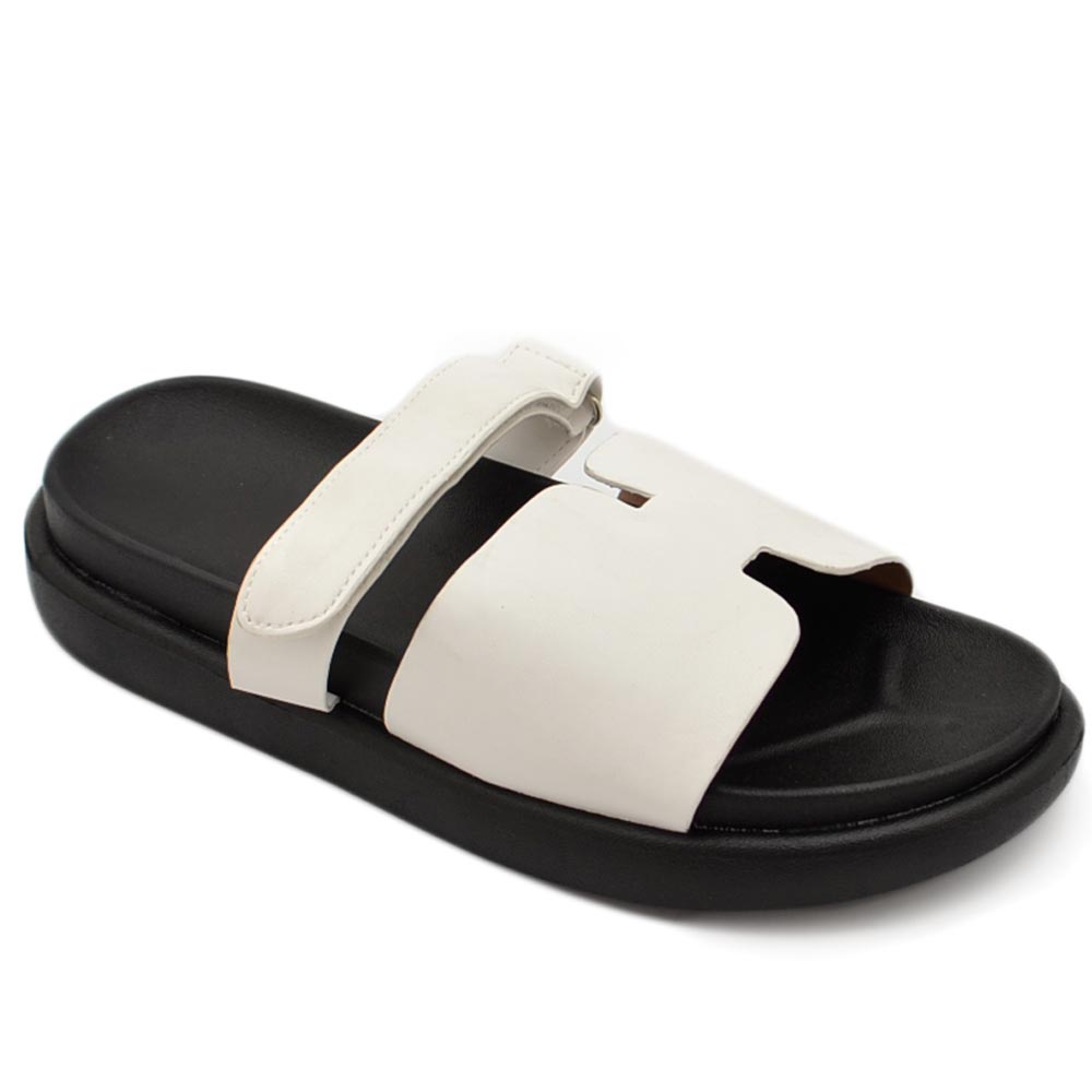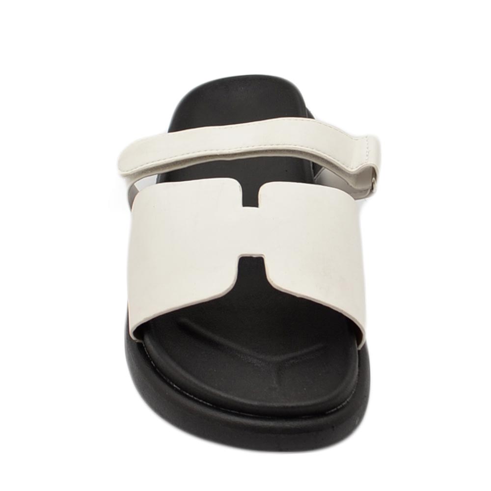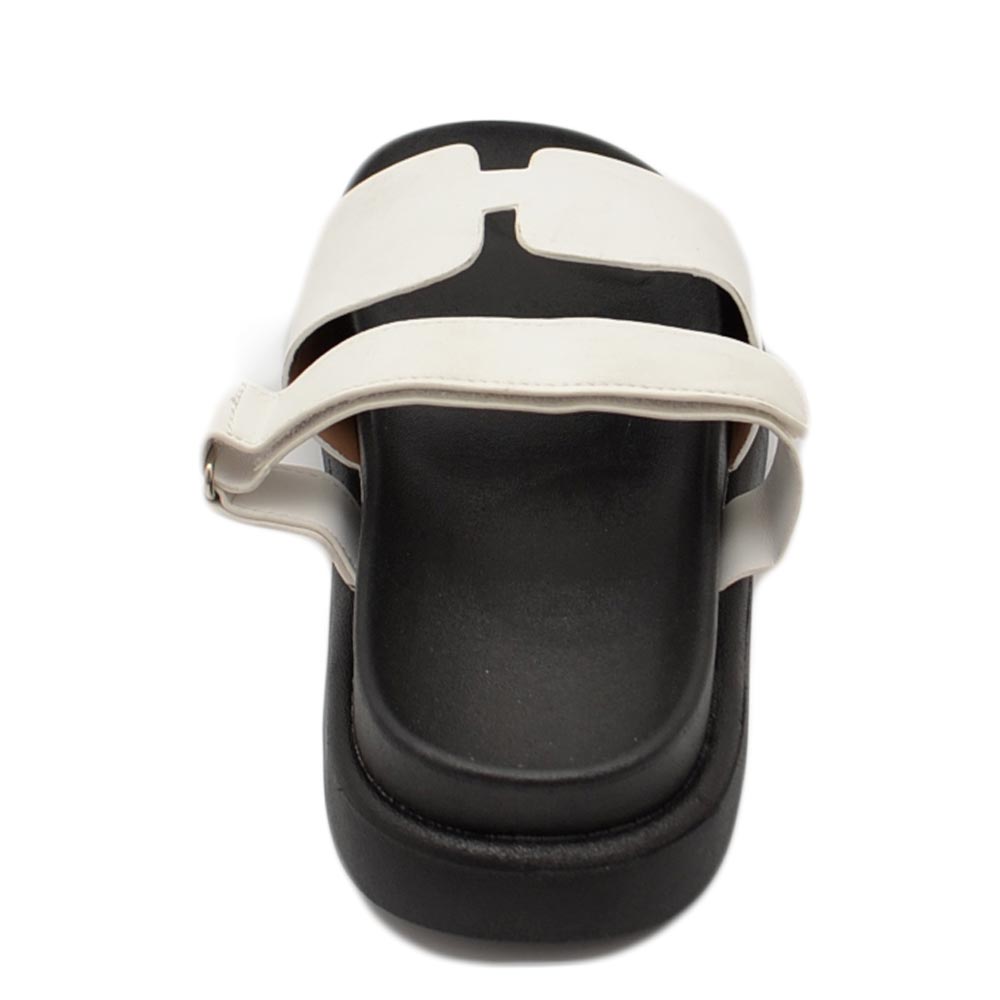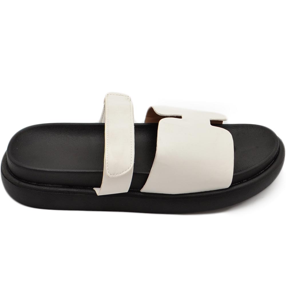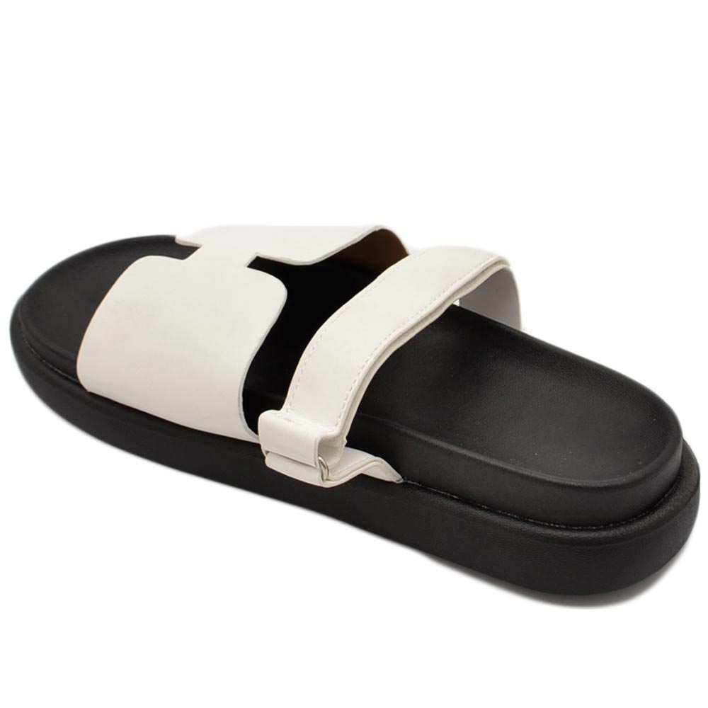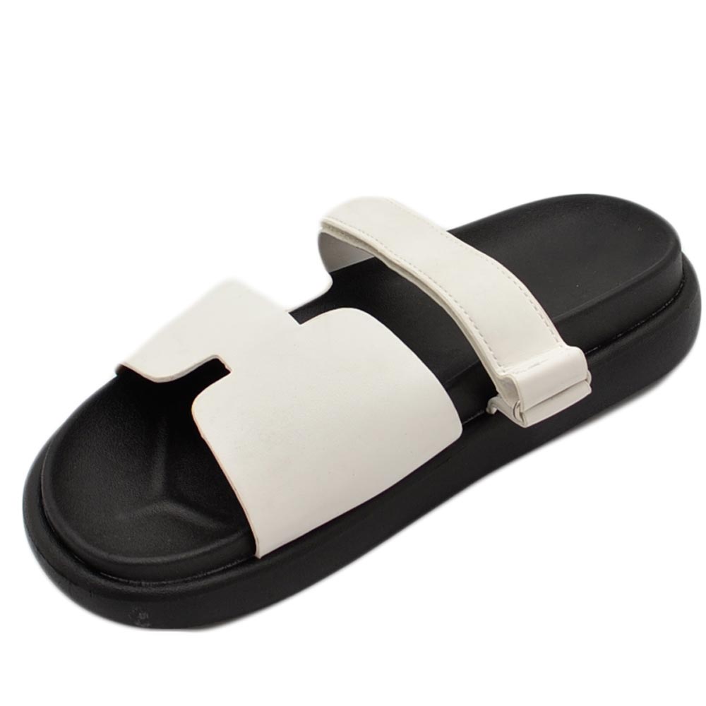 Pantofole ciabatte donna bianco platform zeppa nera con fascia e fibbia strappo regolabile su dorso comodo