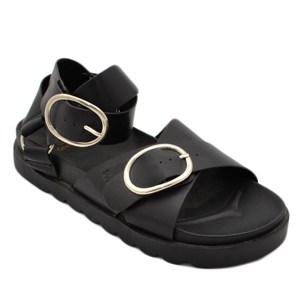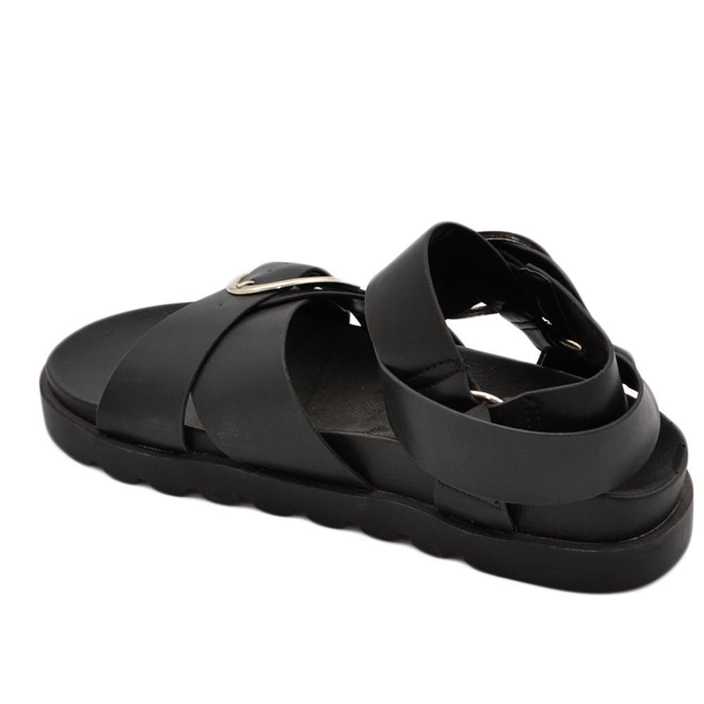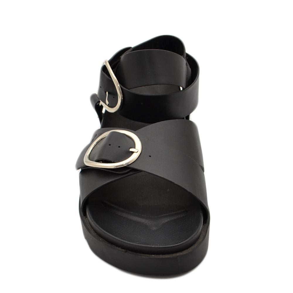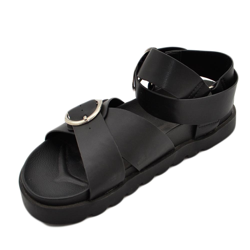 Sandali donna donna platform zeppa nero con fascia larga incrociata e cinturino alla caviglia comodo