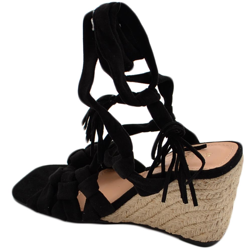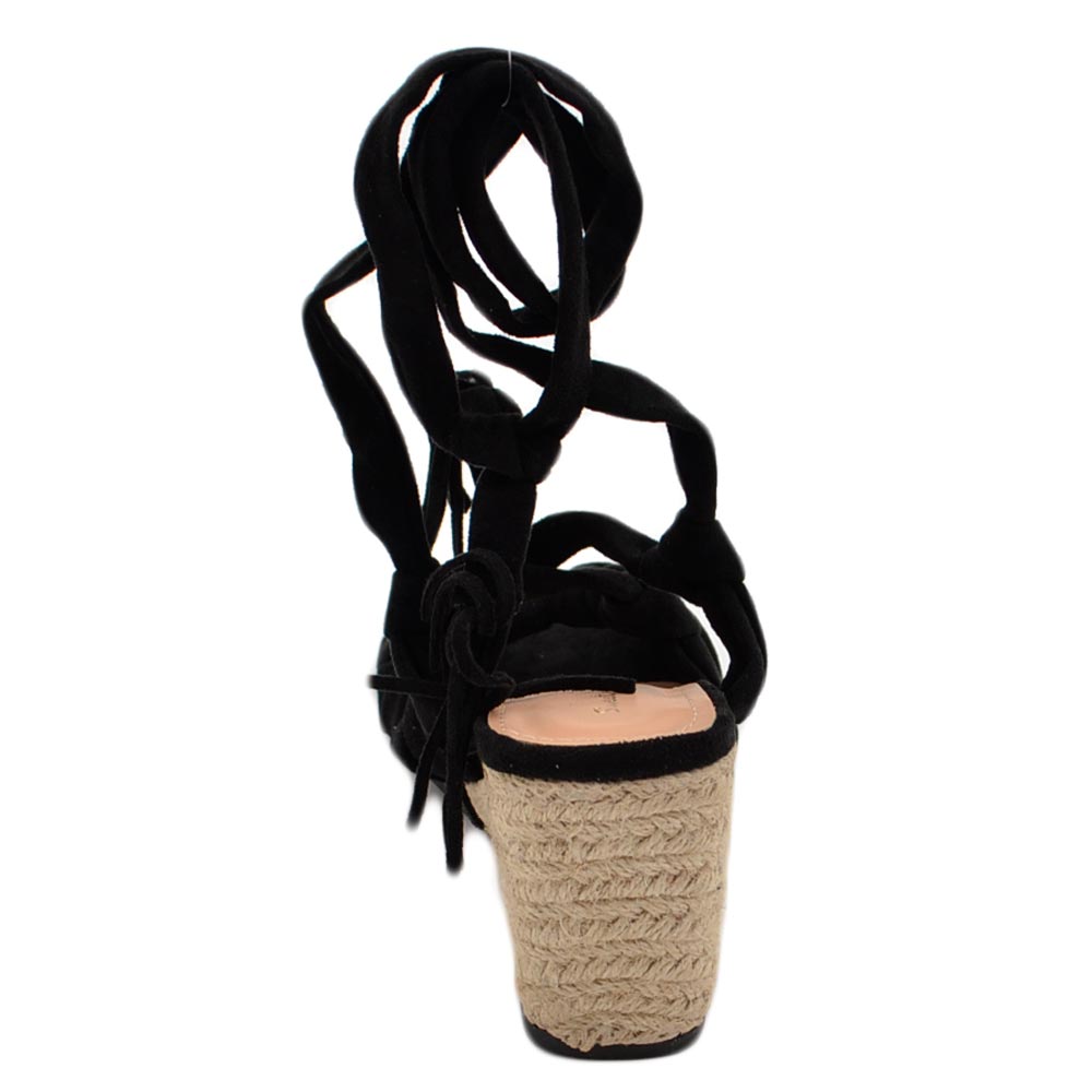 Sandali zeppa donna nero in camoscio suola in cordone e gomma moda mykonos alla schiava gladiatore