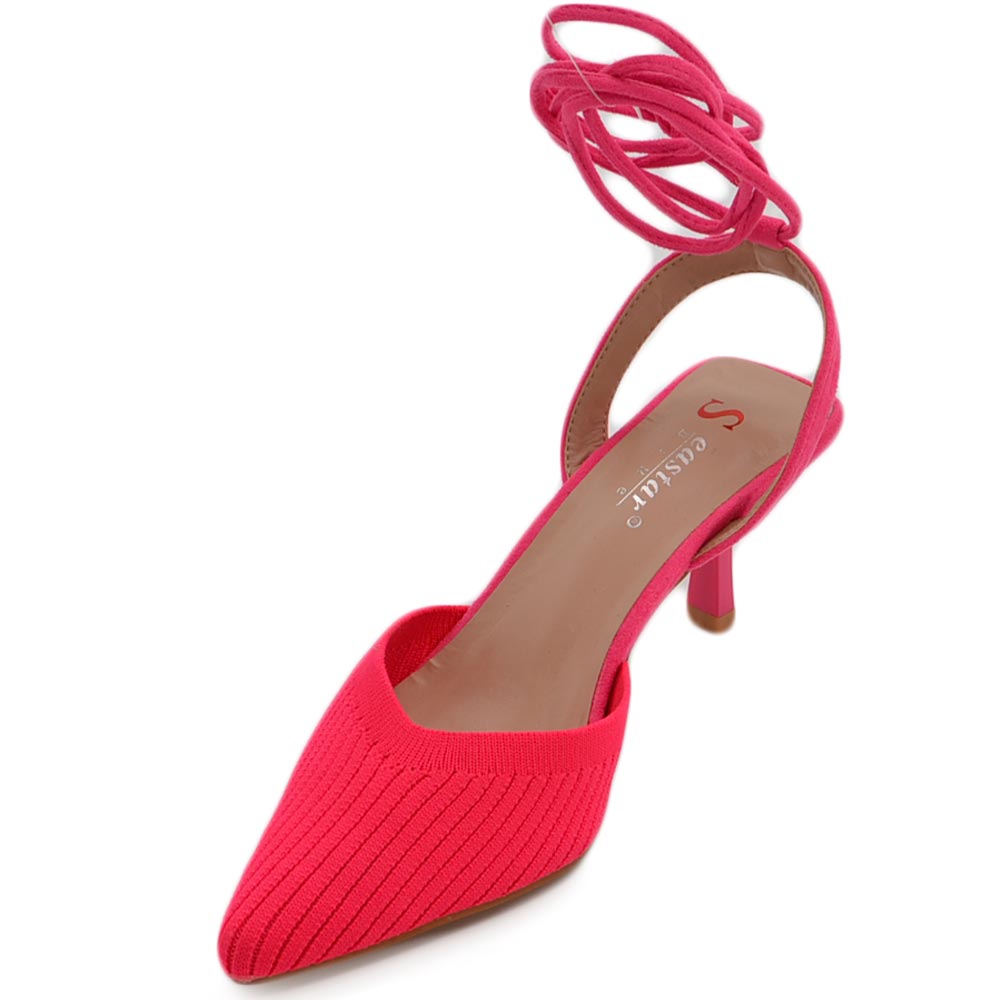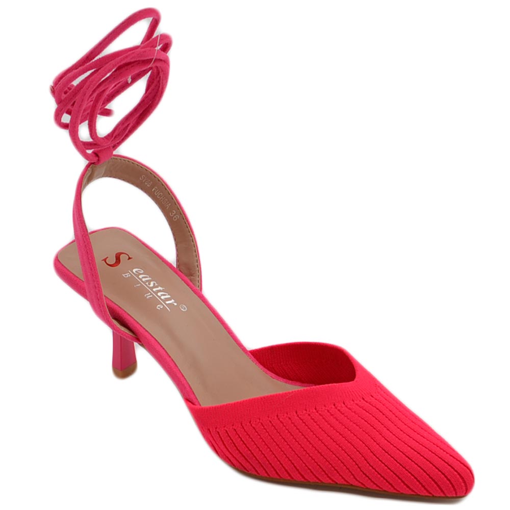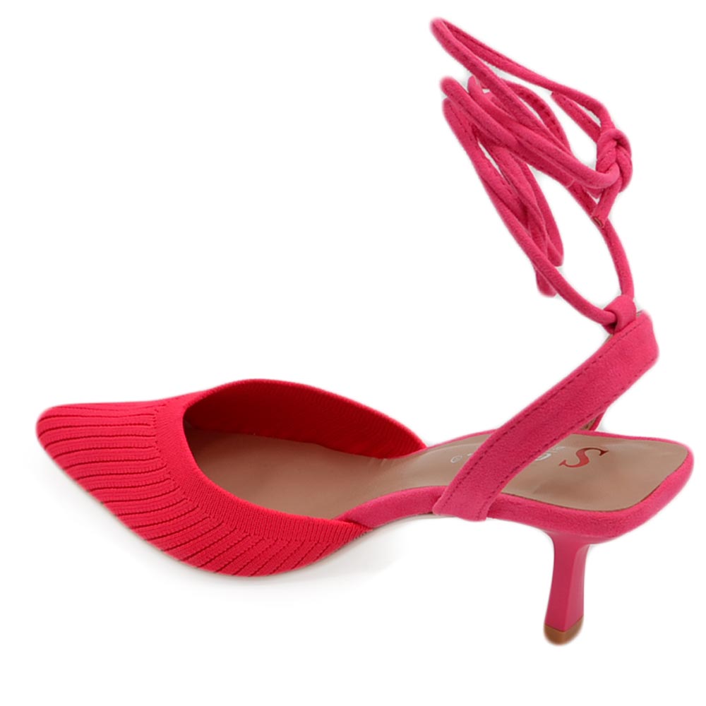 Scarpe decollete mules donna elegante punta in calzino fucsia tacco a spillo 8 cerimonia con allacciatura schiava