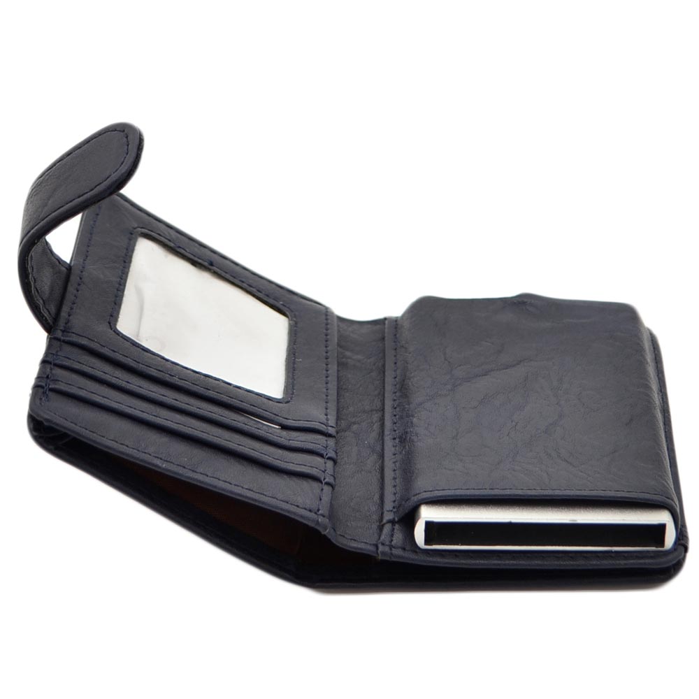 Portafoglio Wallet uomo in vera pelle blu portacarte pocket con molla e salvacarta con gancio contanti chiusura clip