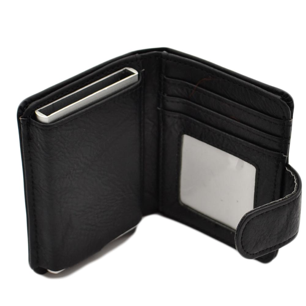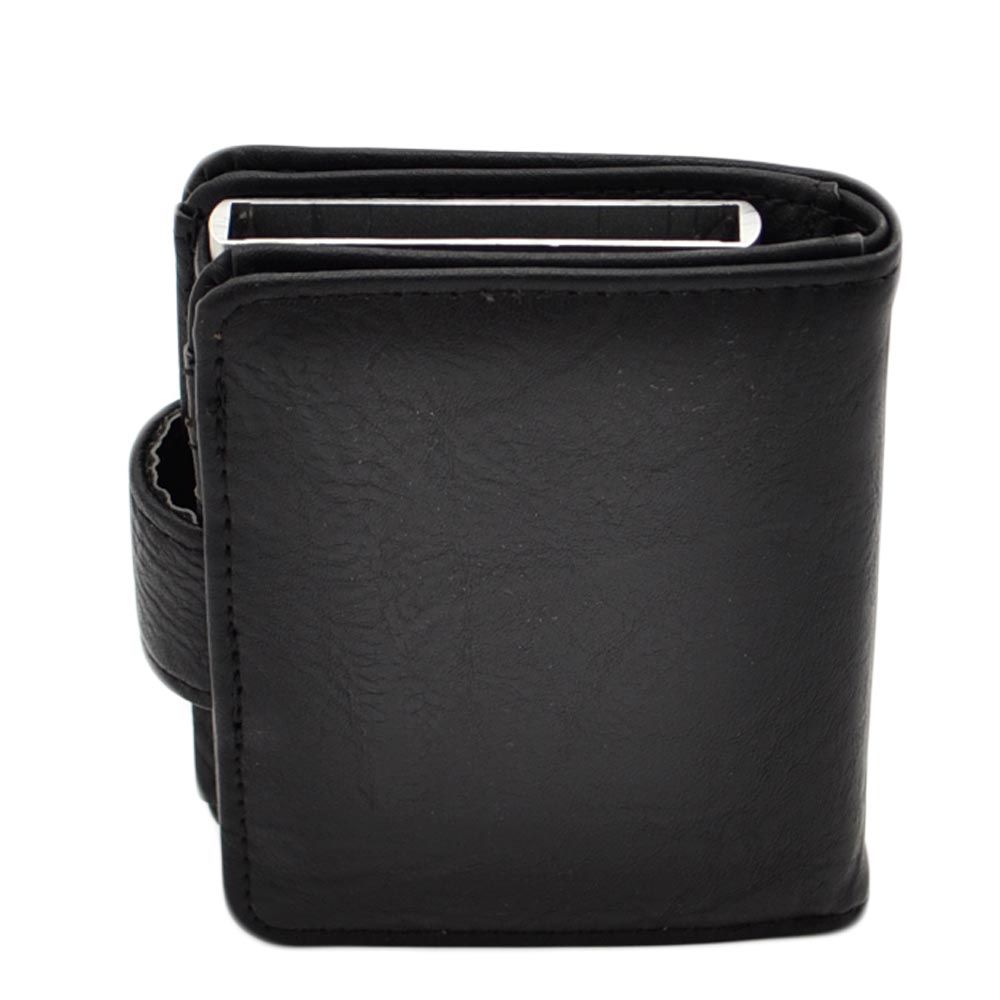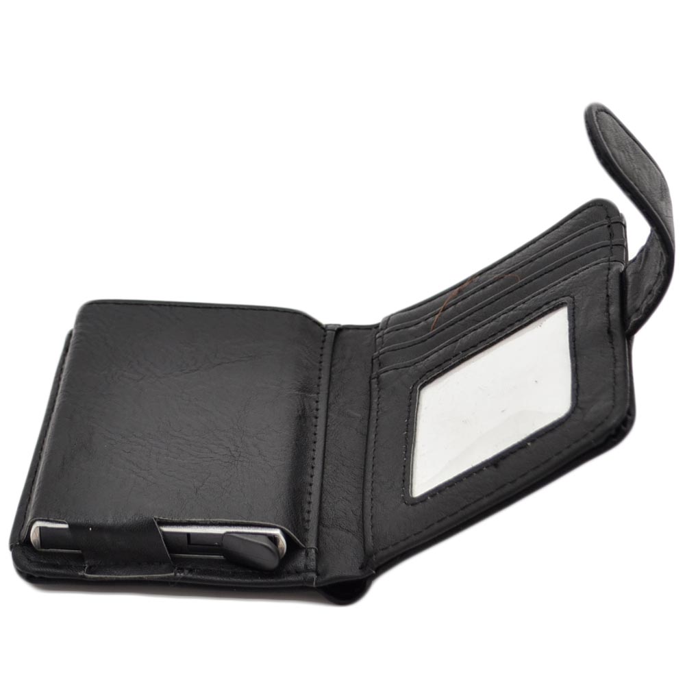 Portafoglio Wallet uomo in vera pelle nero portacarte pocket con molla e salvacarta con gancio contanti chiusura clip