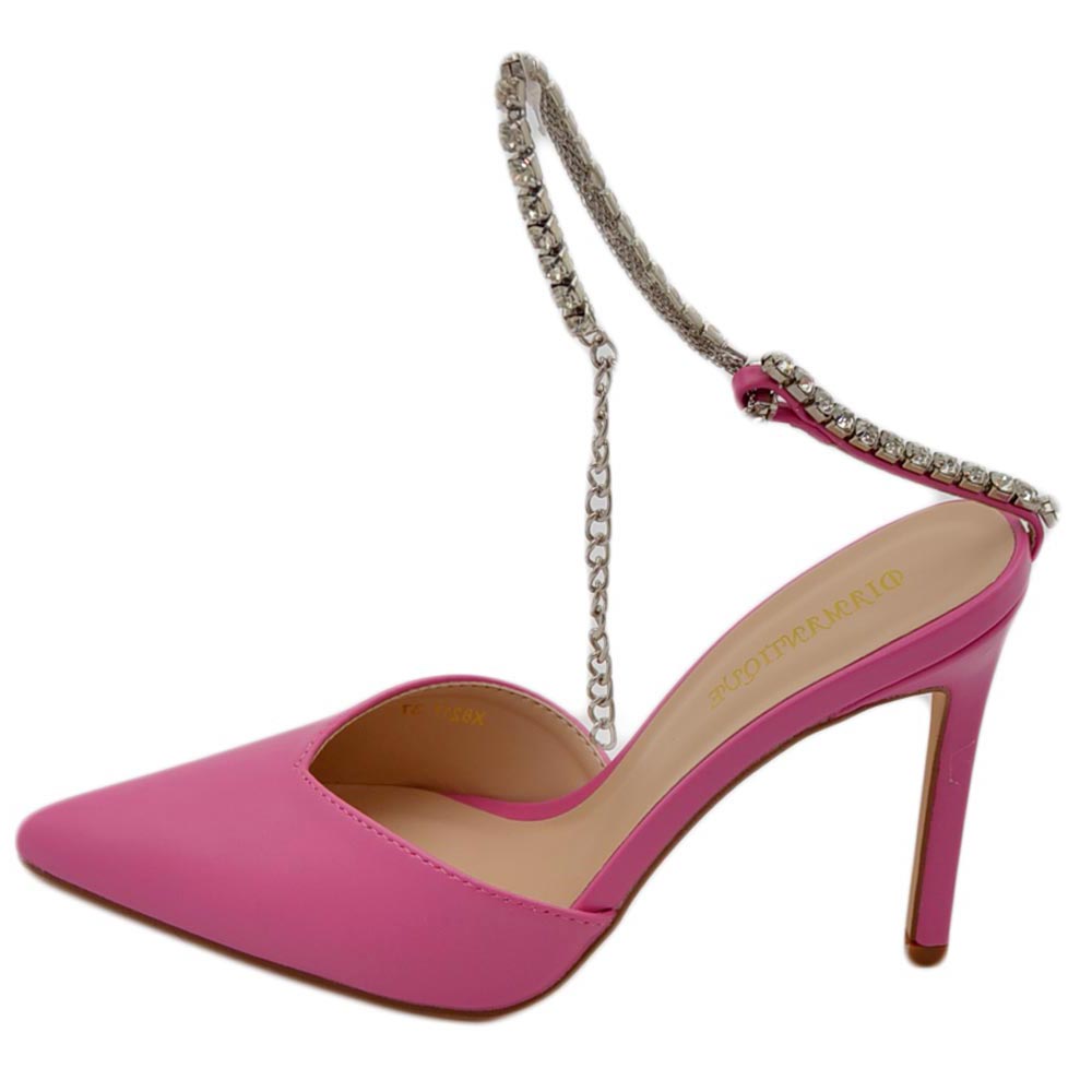 Decollete' donna gioiello elegante in ecopelle rosa fucs tacco a spillo 120 cinturino gioiello scintillante effetto nudo