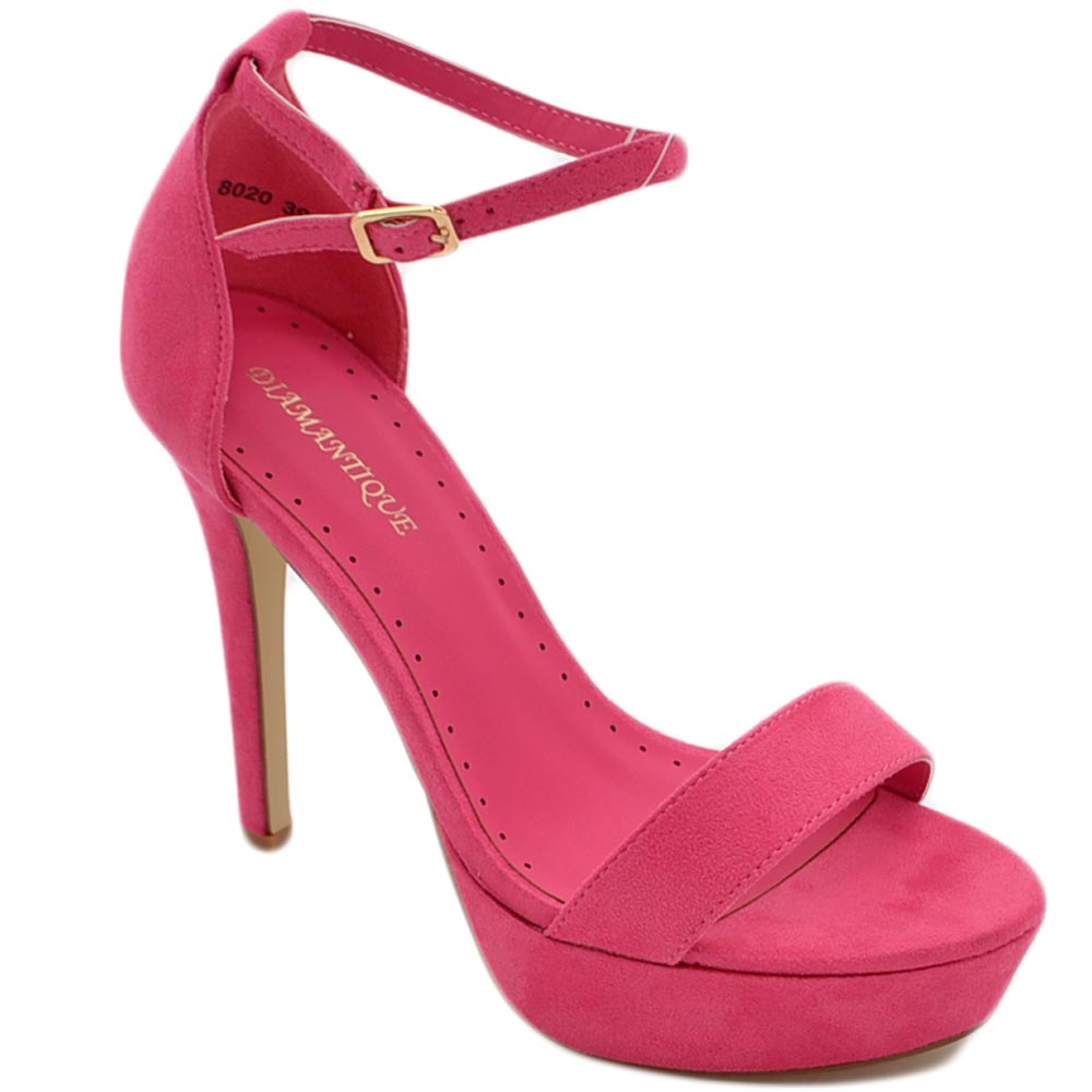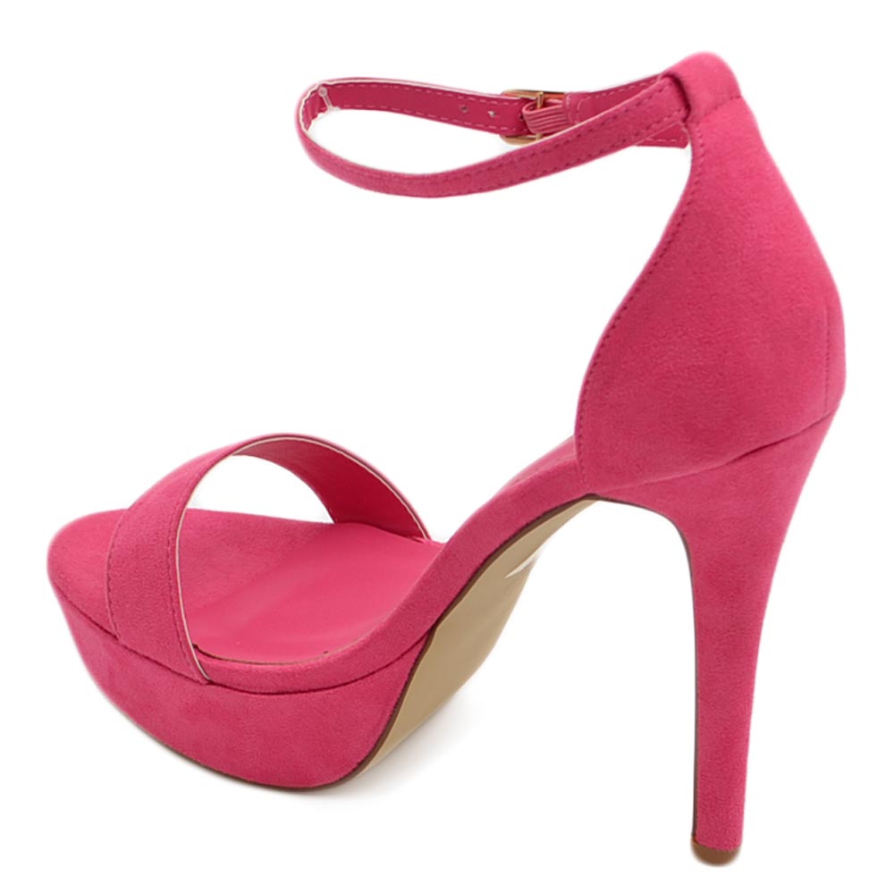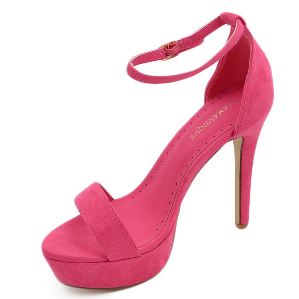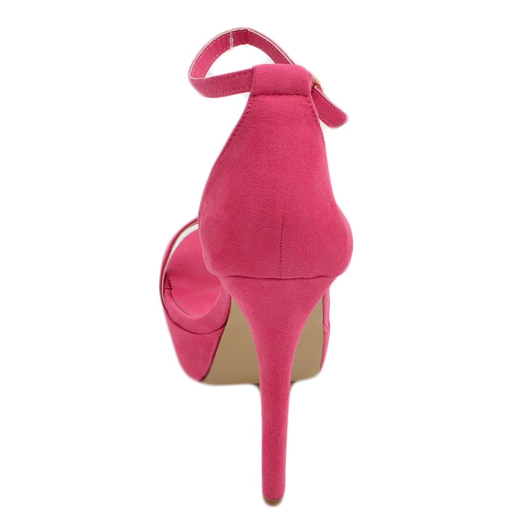 Sandali donna con tacco alto a spillo 15 cm e plateau 5 cm cinturino alla caviglia in camoscio fucsia
