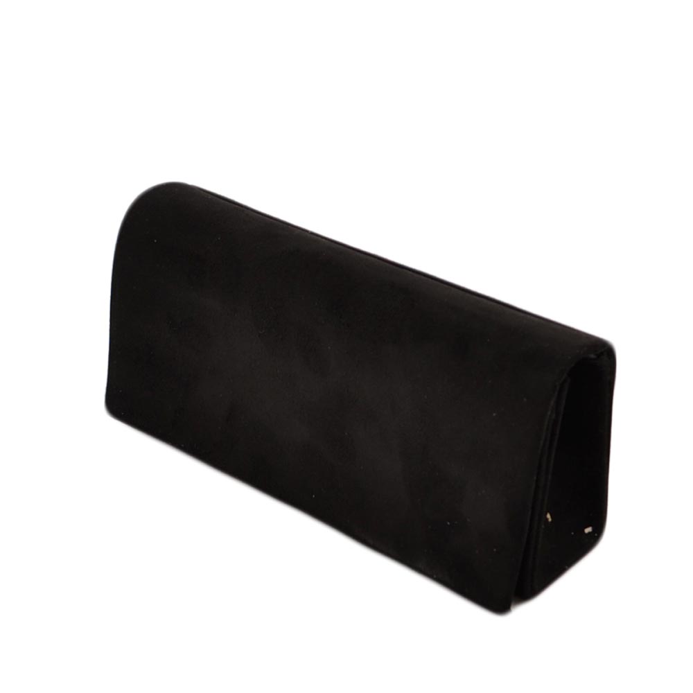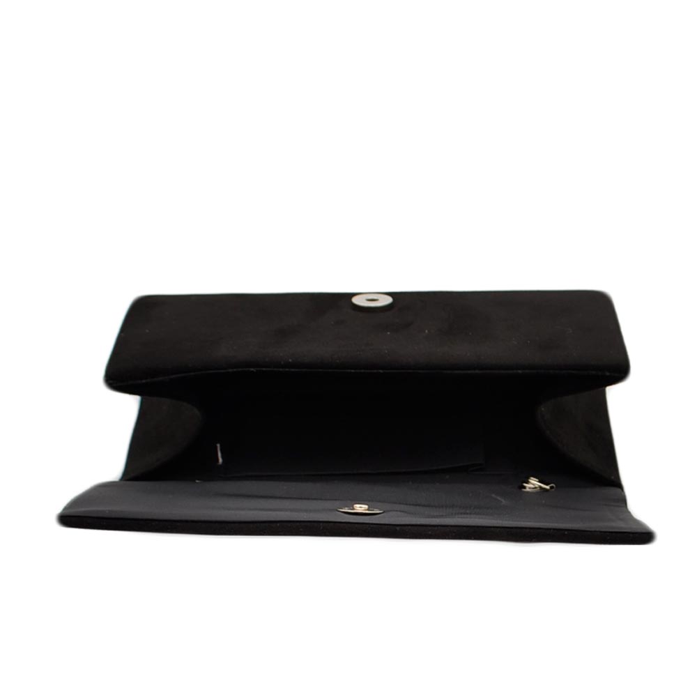 Pochette donna rettangolare a forma di lettera busta in camoscio nero con catena e taschino linea basic made in italy.