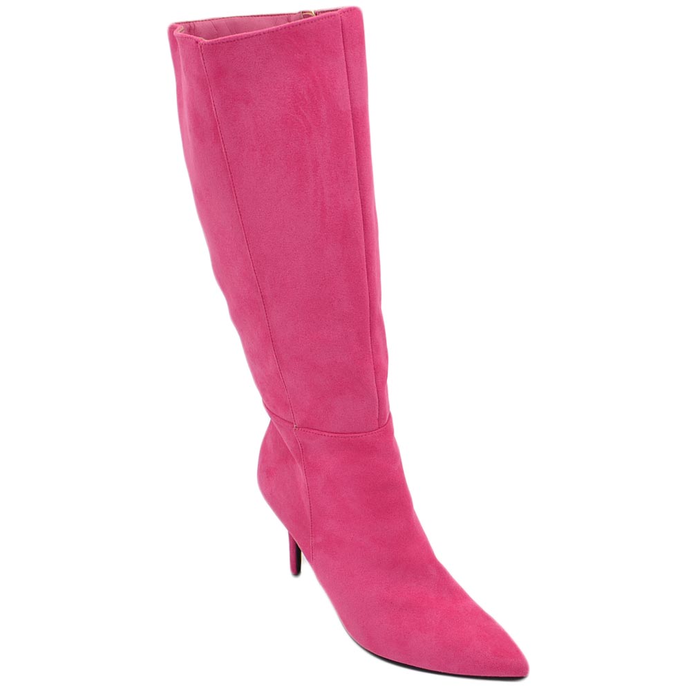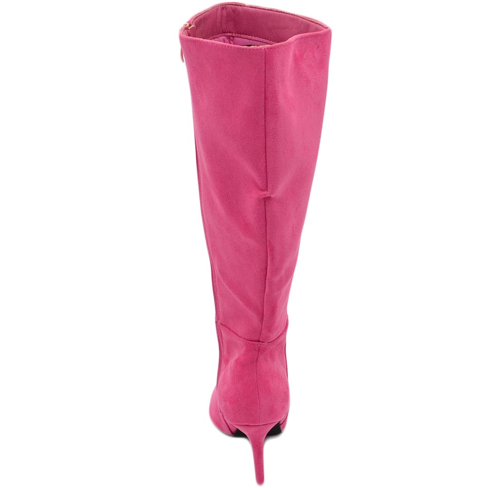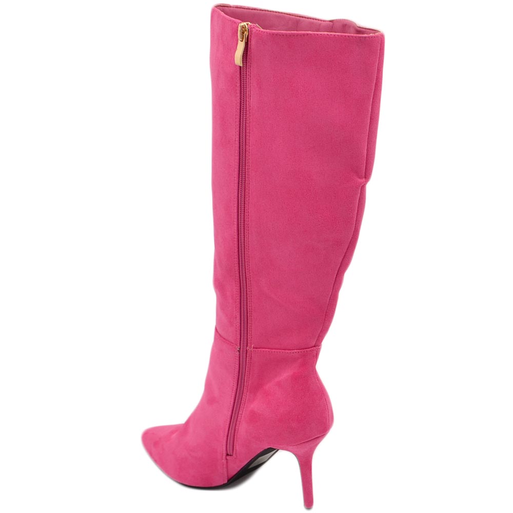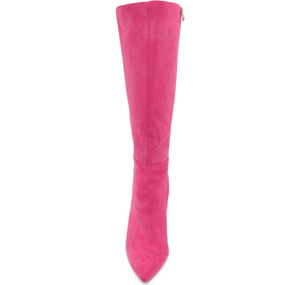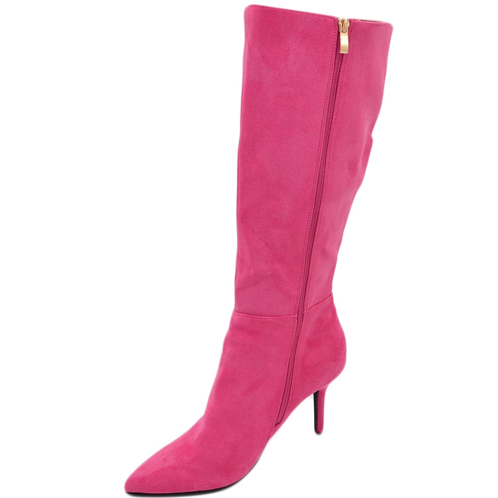 Stivale alto donna fucsia in ecopelle scamosciato morbido al polpaccio tacco a spillo 8cm con zip e punta moda