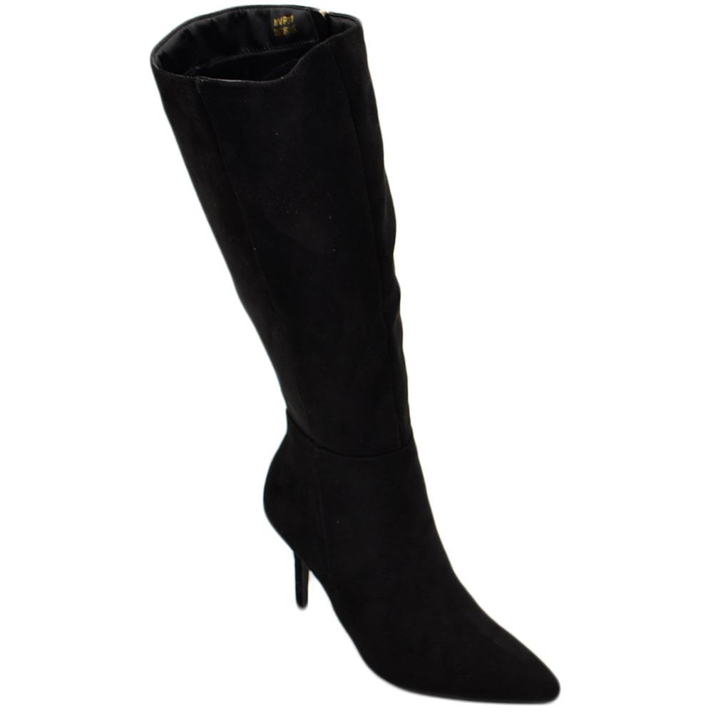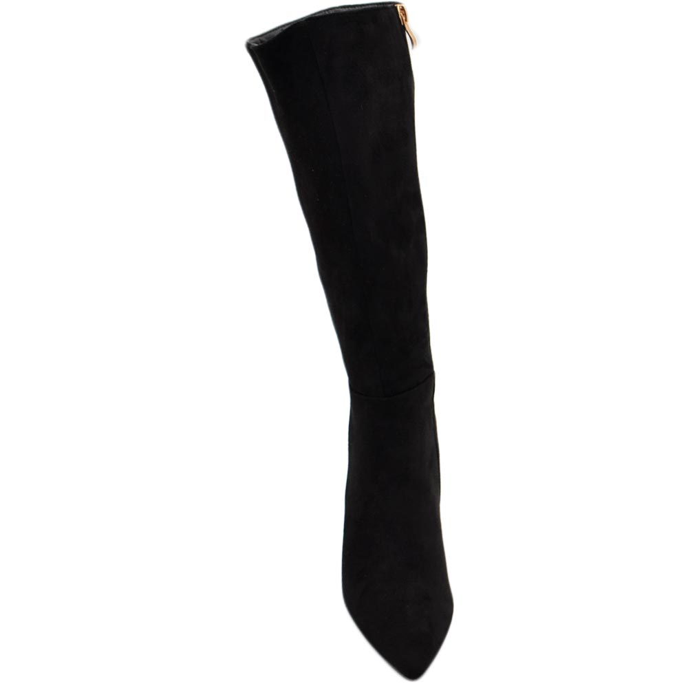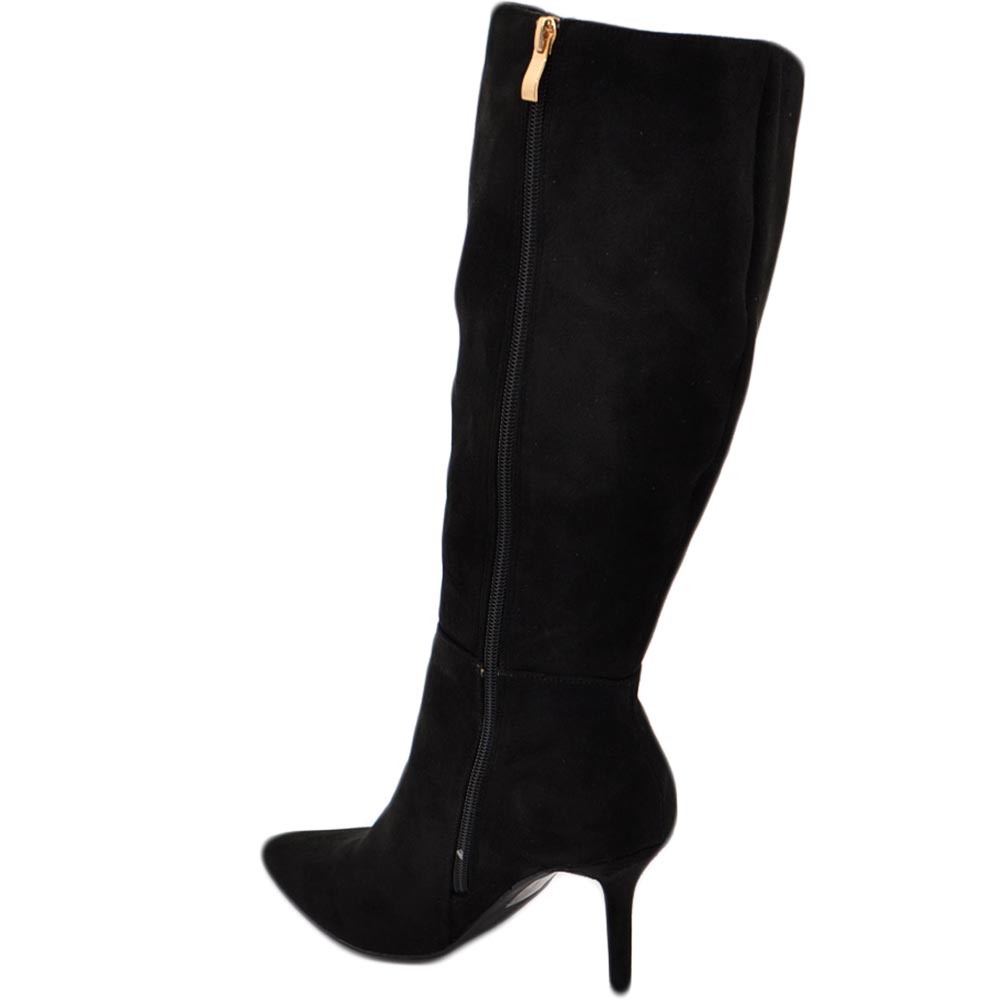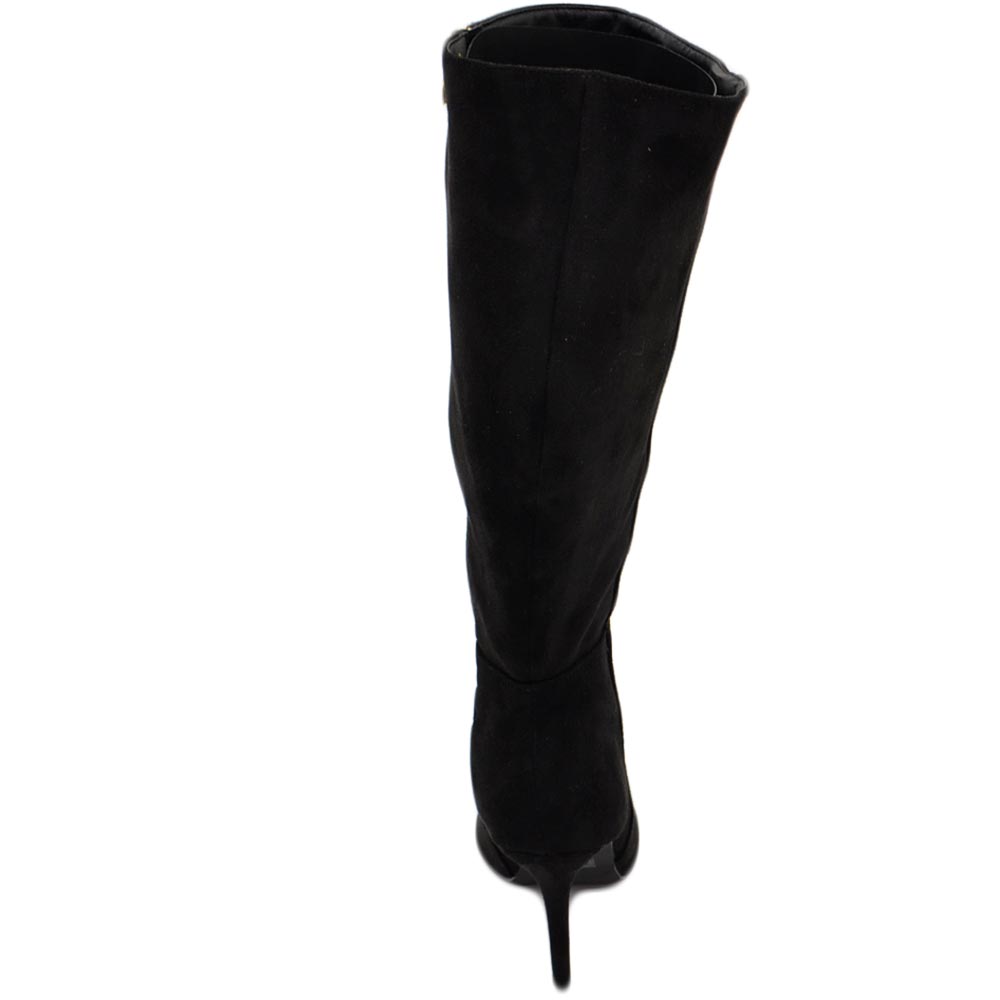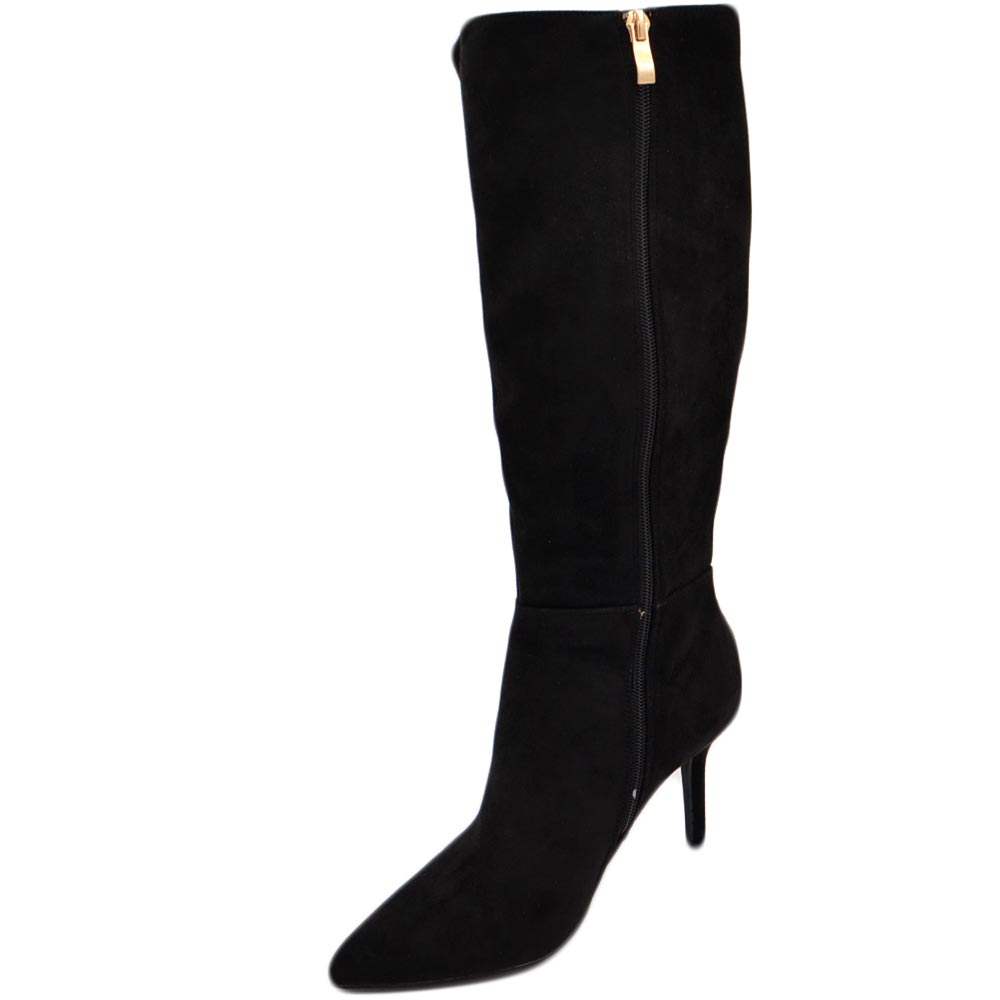 Stivale alto donna nero in ecopelle scamosciato morbido al polpaccio tacco a spillo 8cm con zip e punta moda