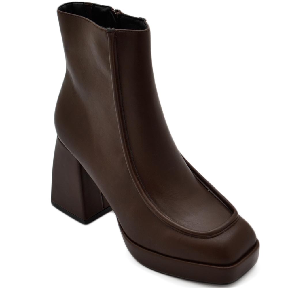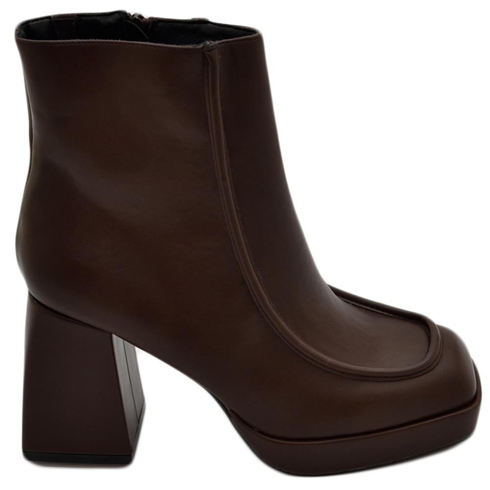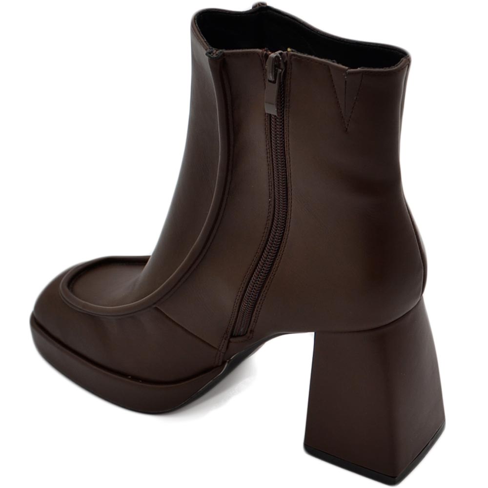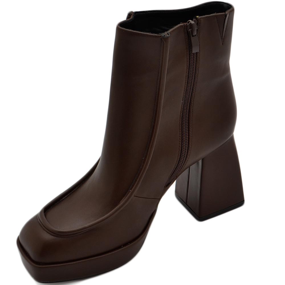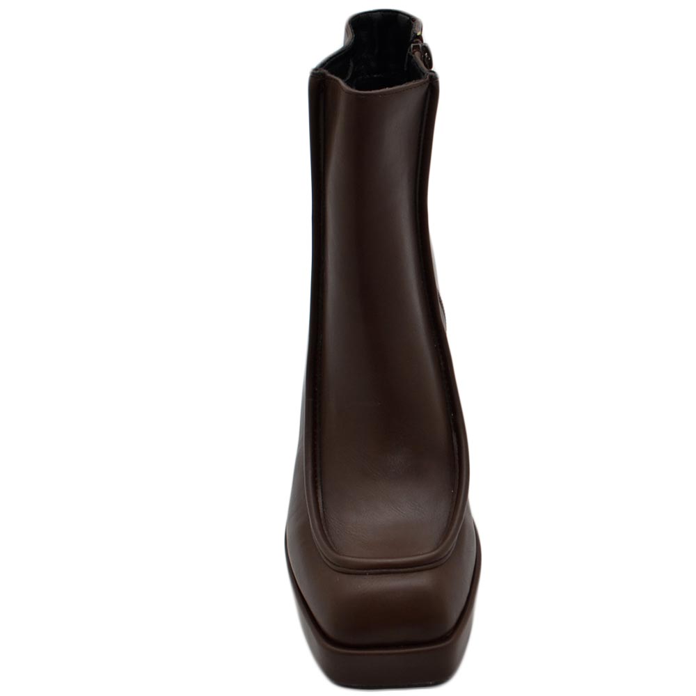 Tronchetto donna platform marrone punta quadrata con bordo in rilievo zip laterale tacco grosso 10 e plateau 3 cm
