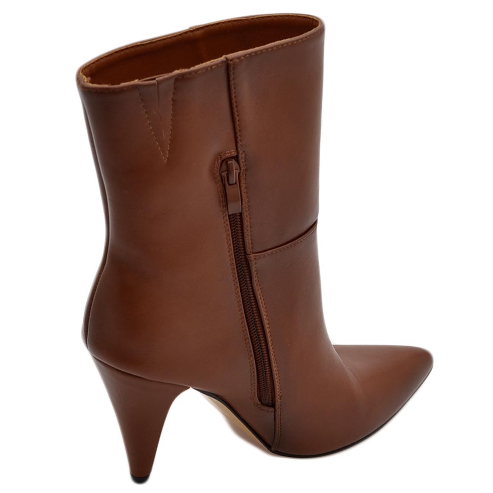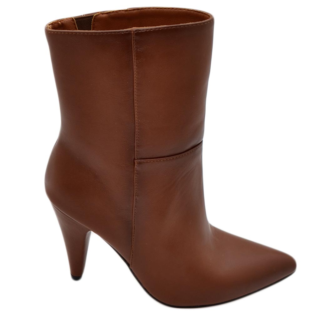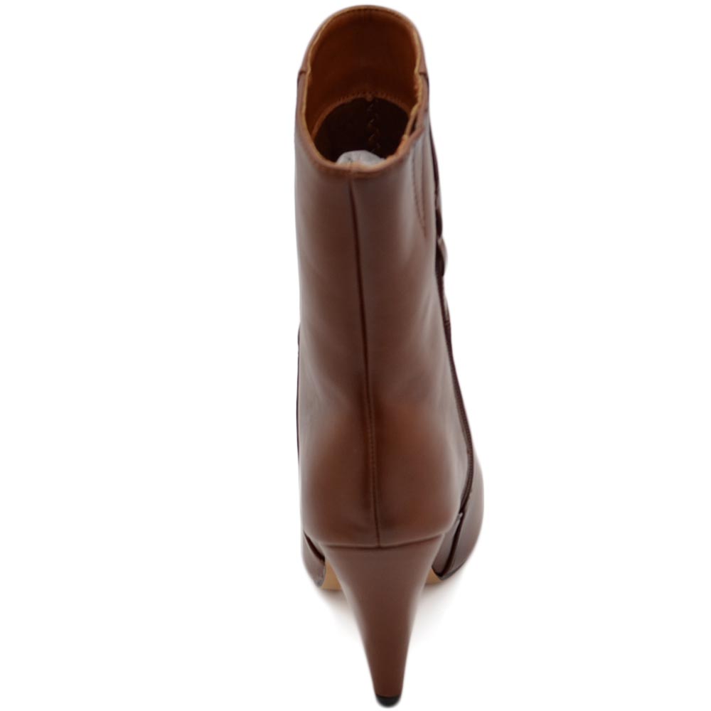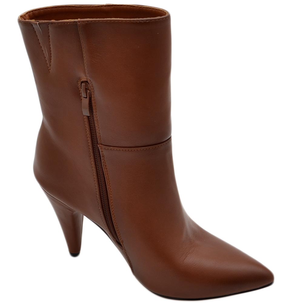 Tronchetto stivaletto cuoio a punta donna con tacco comodo 6 cm laterale e zip alla caviglia
