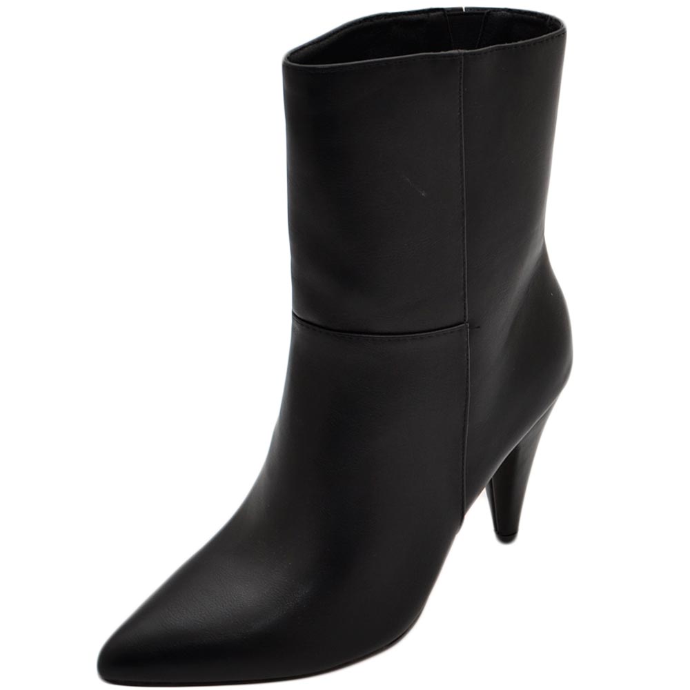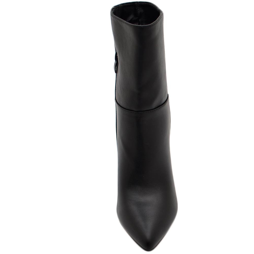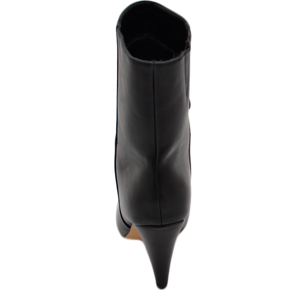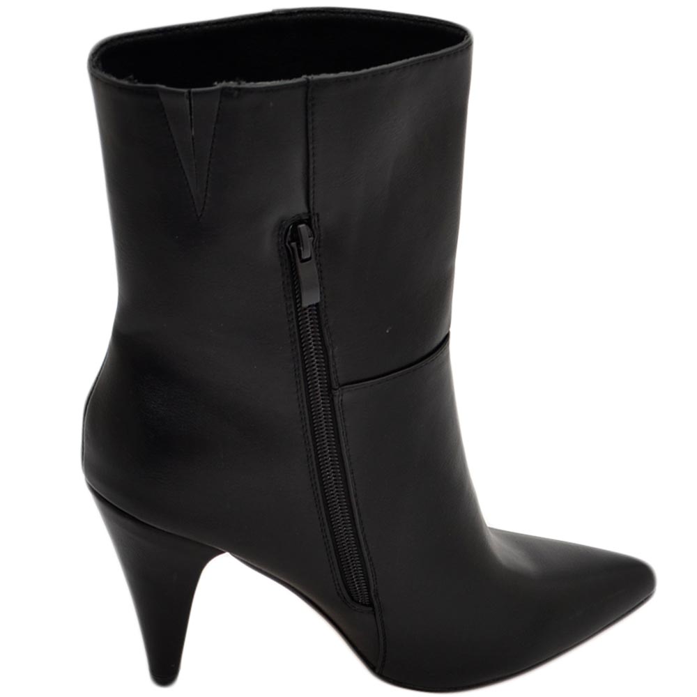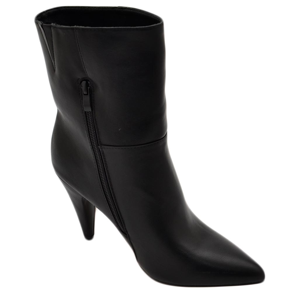 Tronchetto stivaletto nero lucido a punta donna con tacco comodo 6 cm laterale e zip alla caviglia