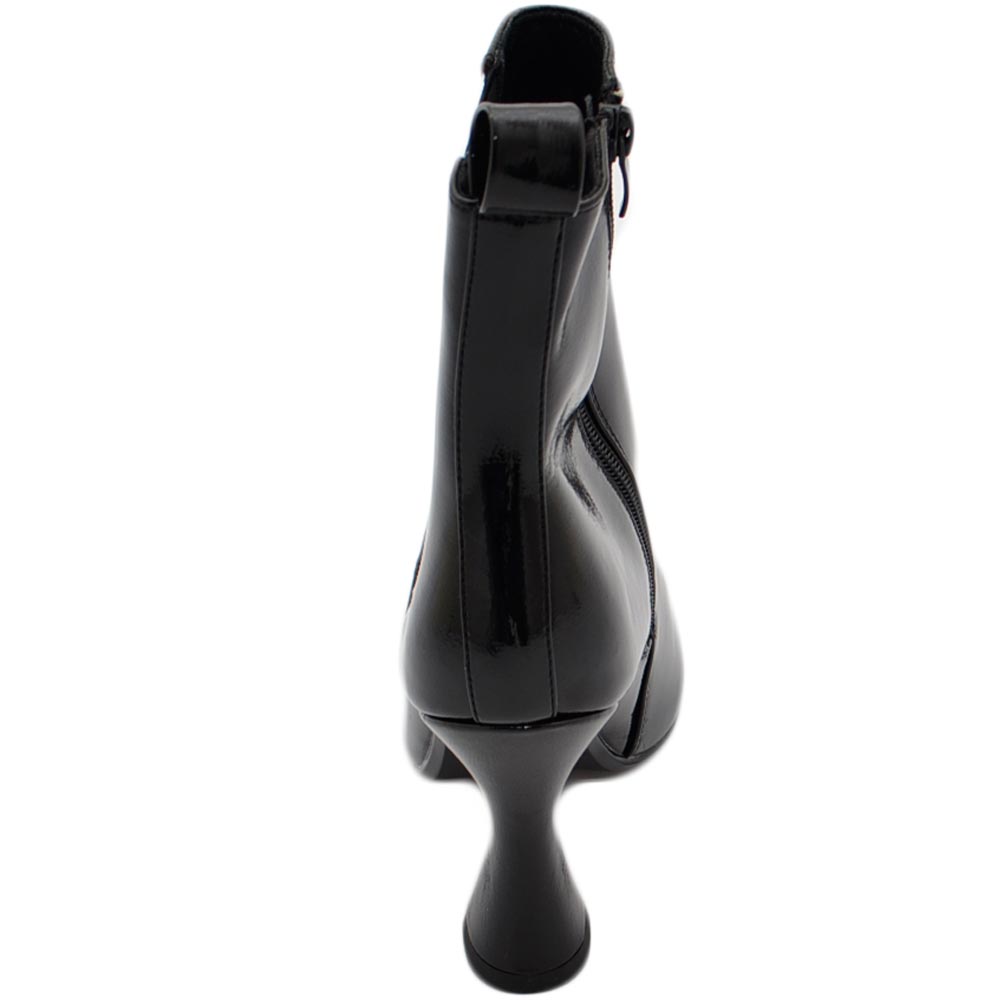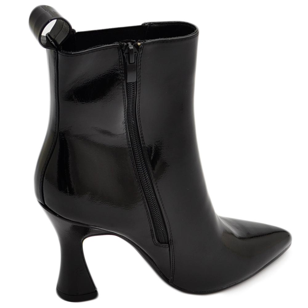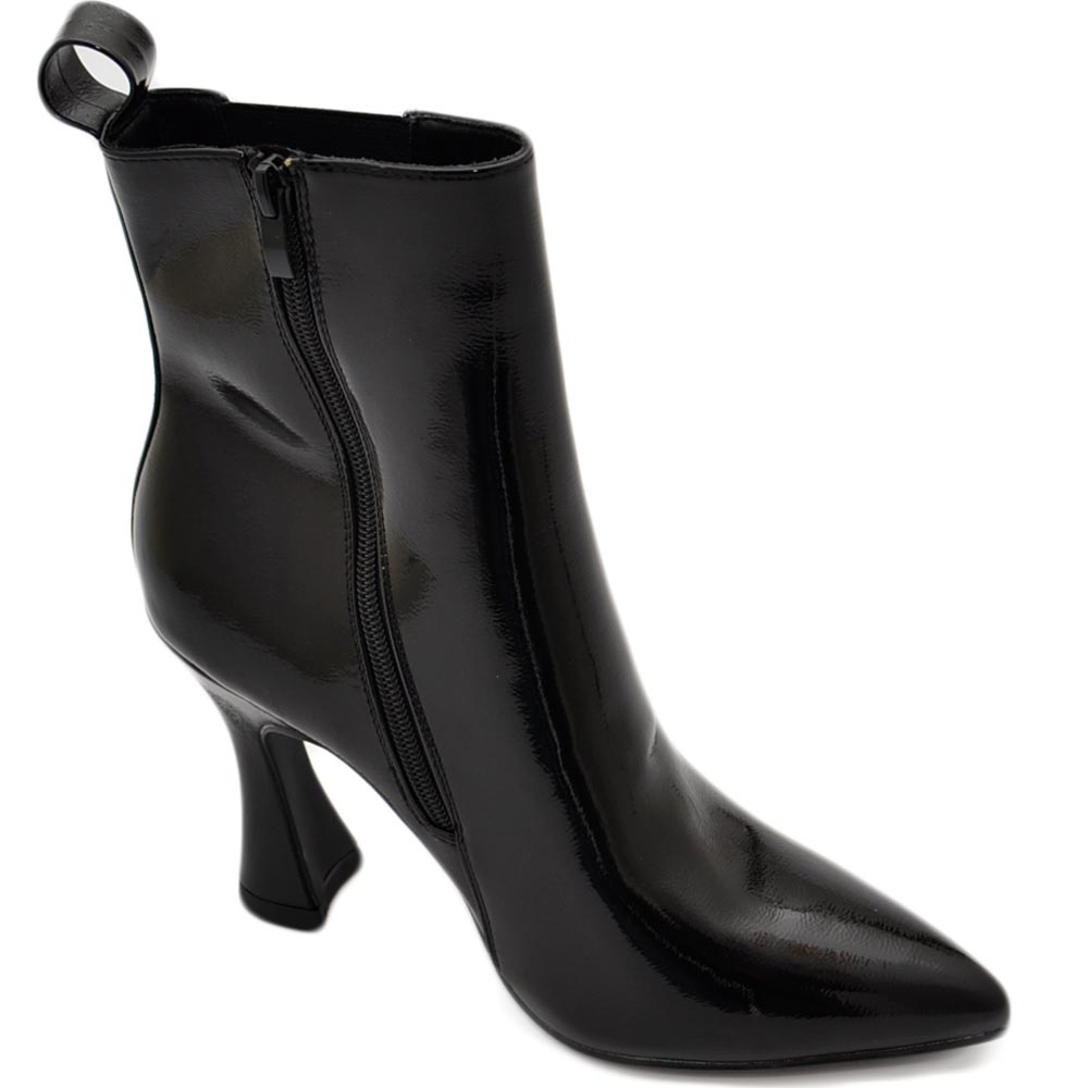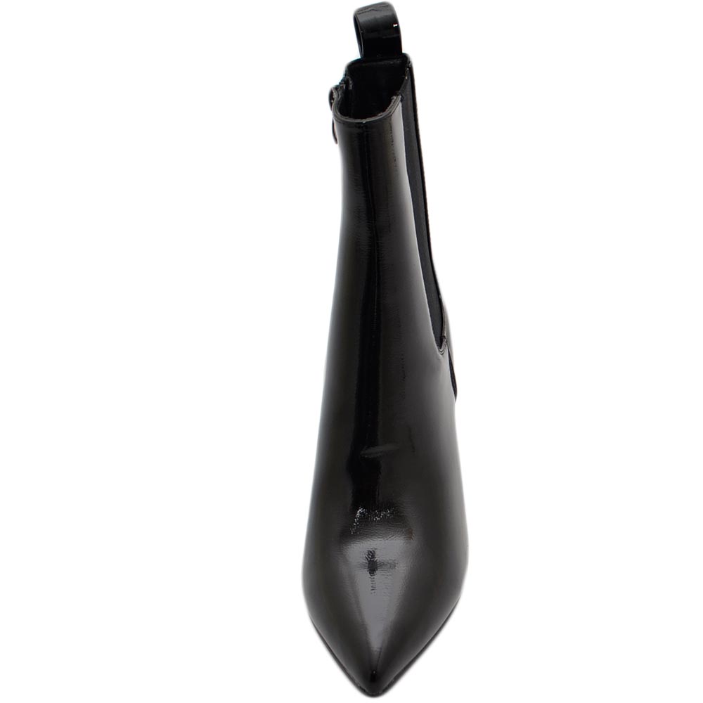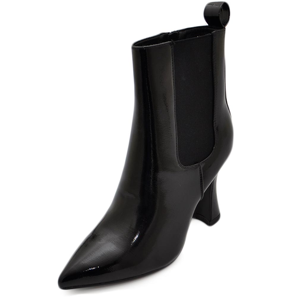 Tronchetto stivaletto chelsea nero lucido a punta donna con tacco comodo 6 cm elastico laterale e zip alla caviglia