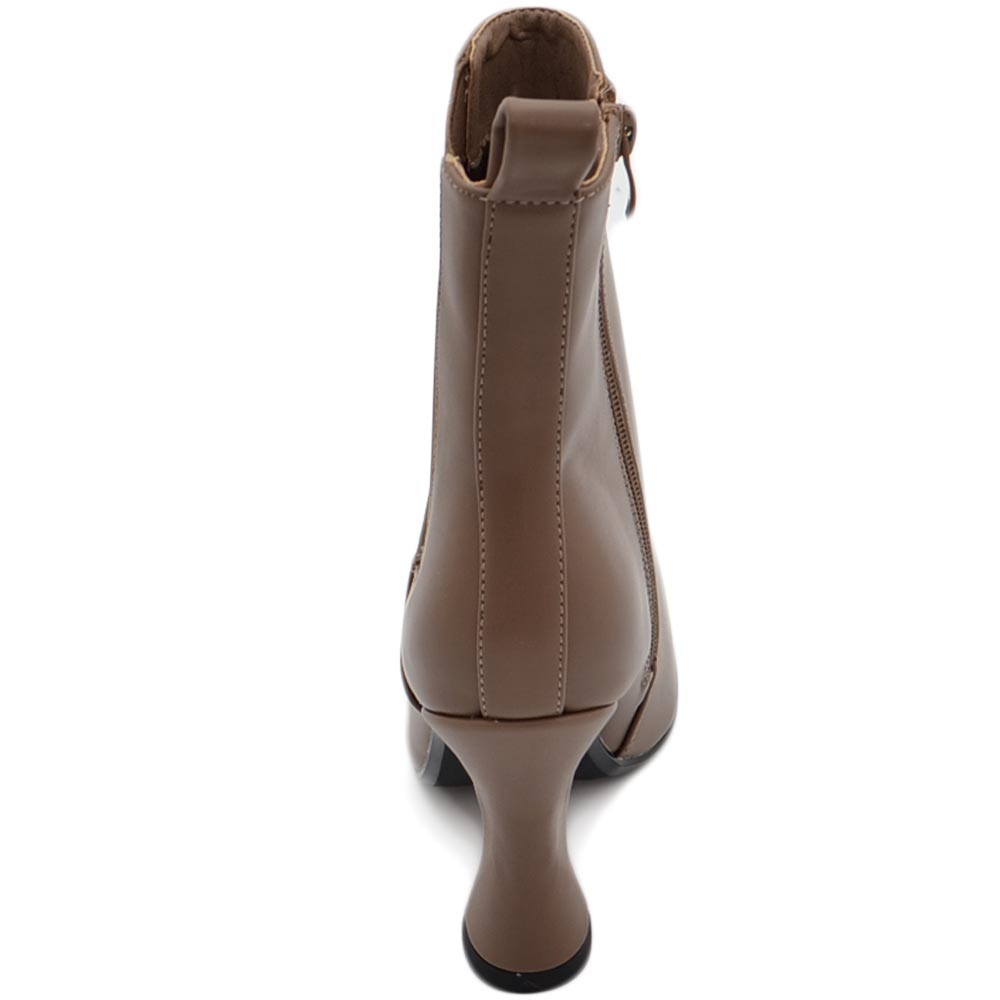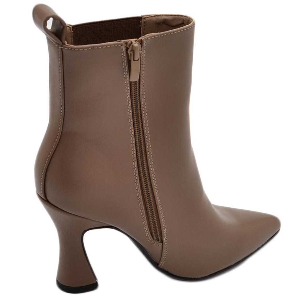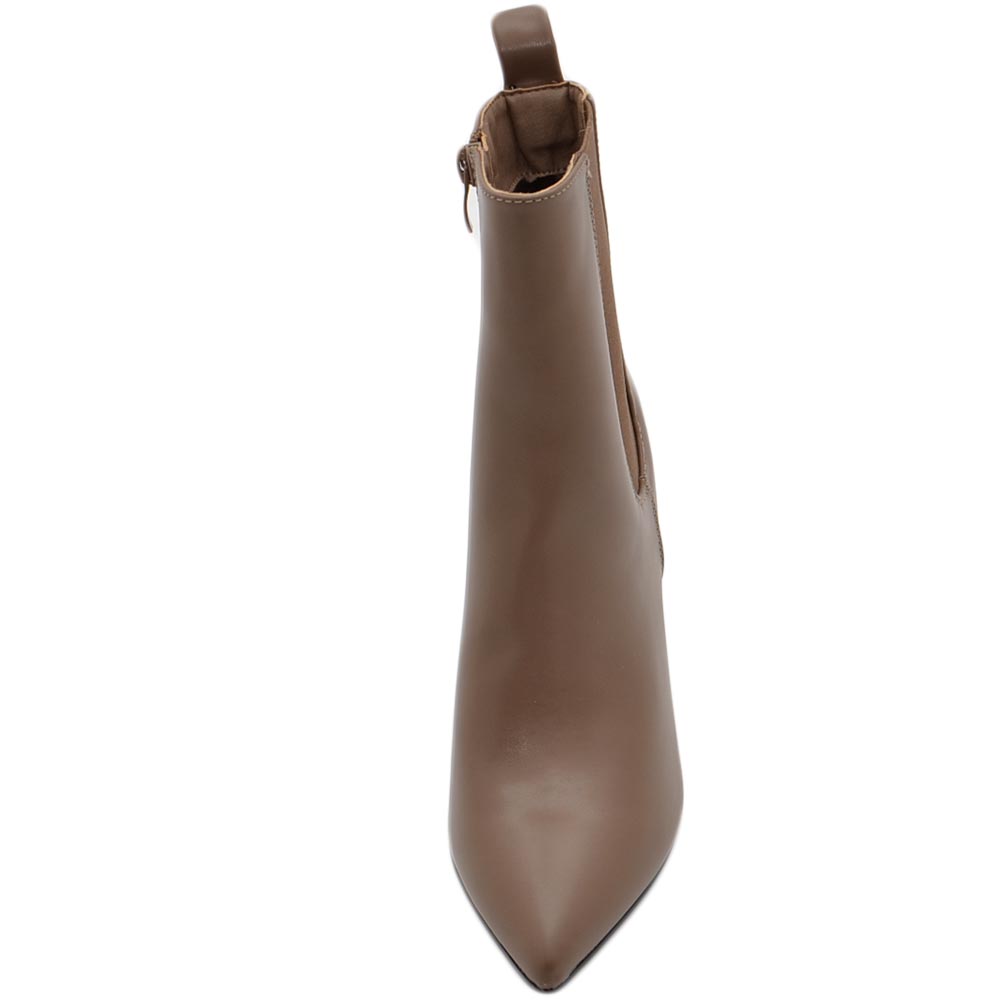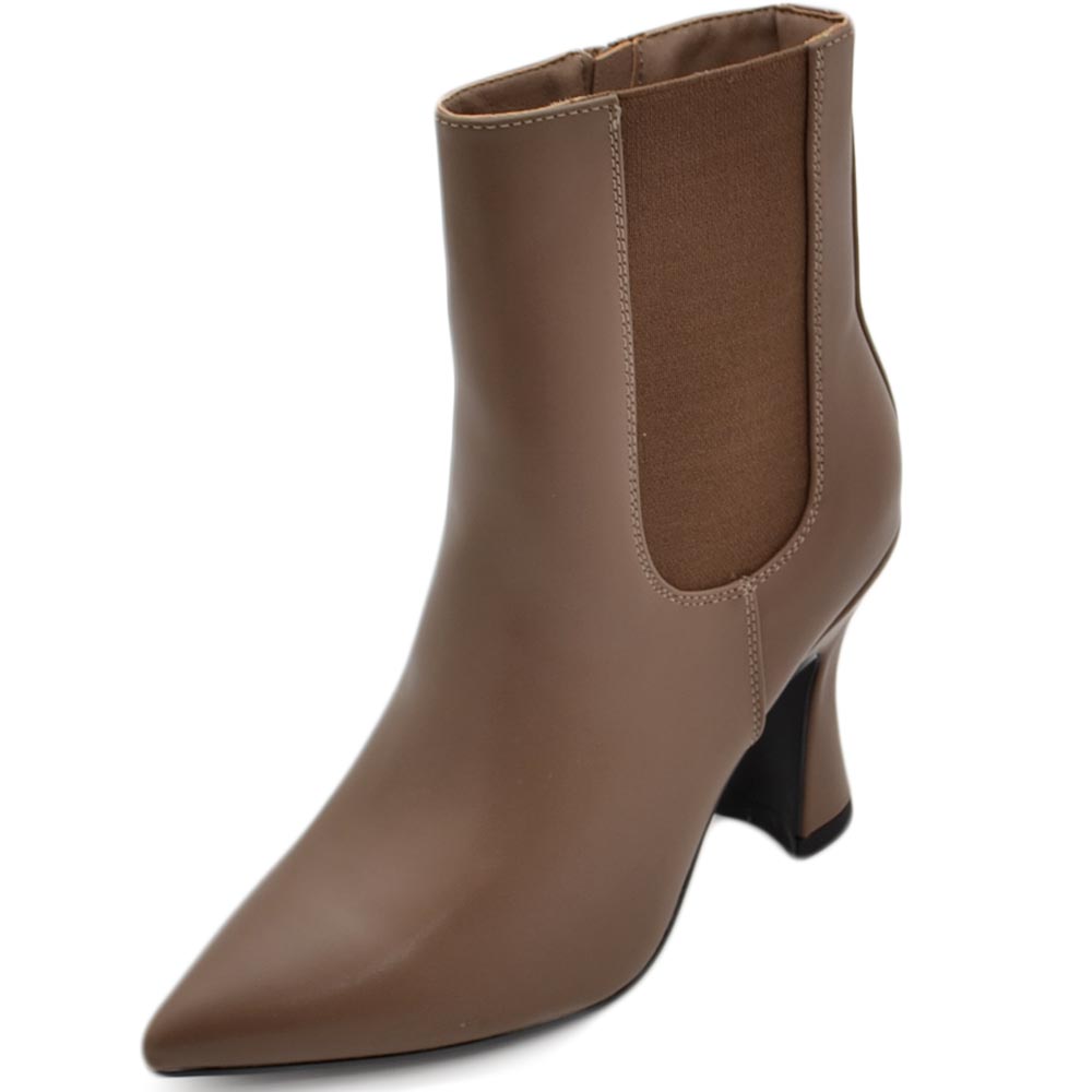 Tronchetto stivaletto chelsea tortora a punta donna con tacco comodo 6 cm elastico laterale e zip alla caviglia