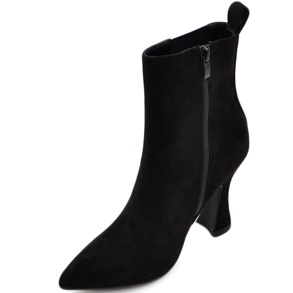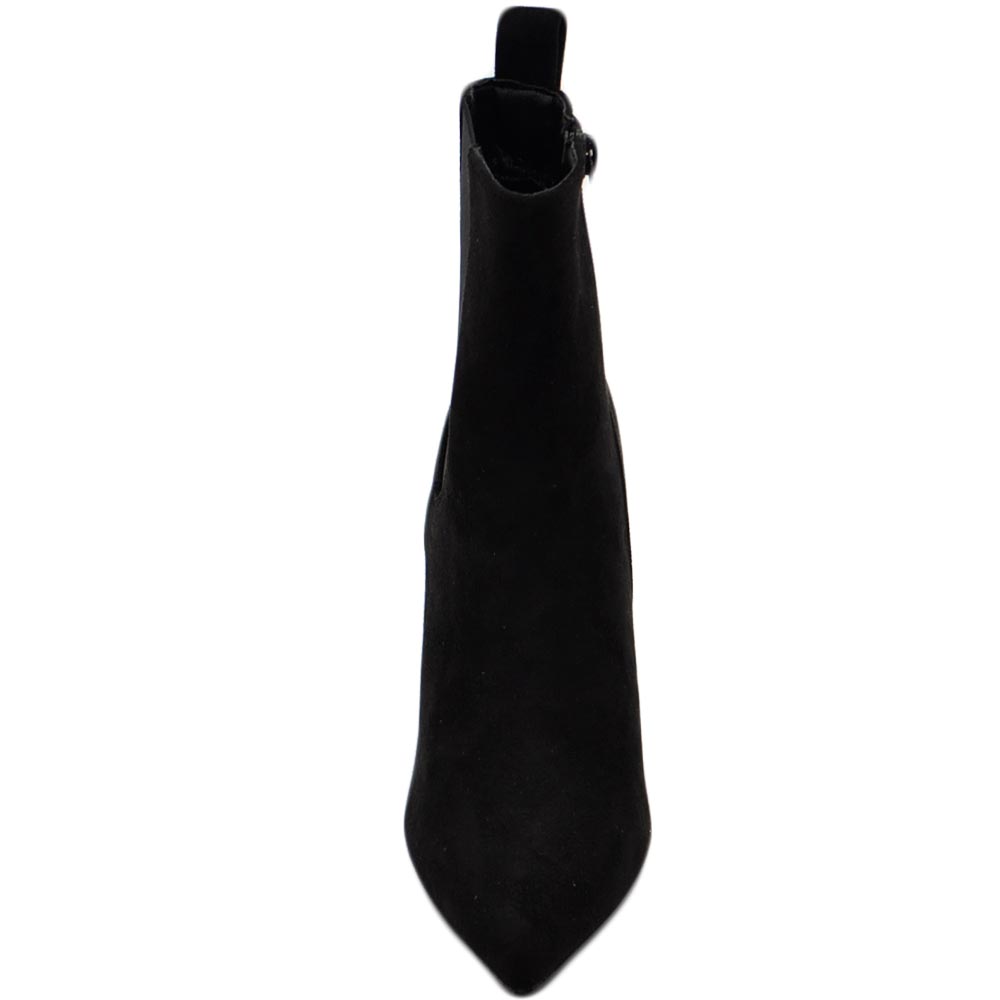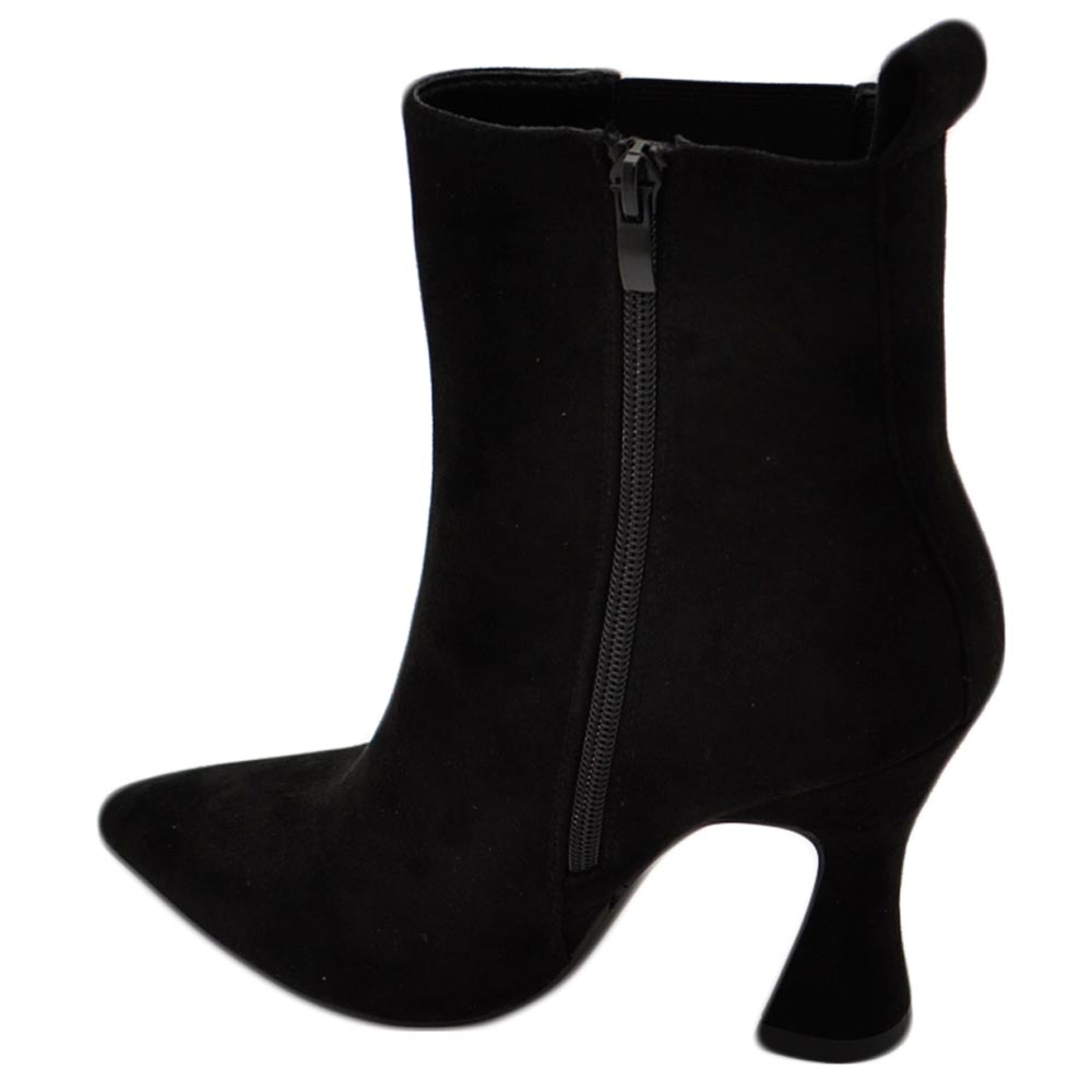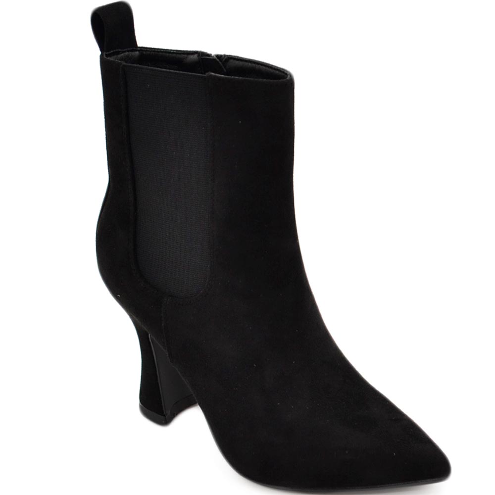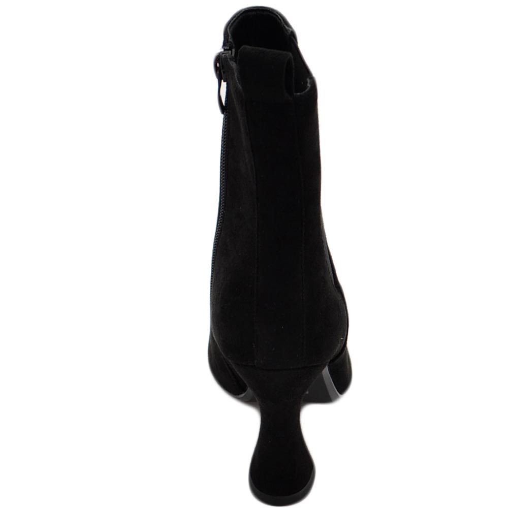 Tronchetto stivaletto chelsea nero camoscio a punta donna con tacco comodo 6 cm elastico laterale e zip alla caviglia