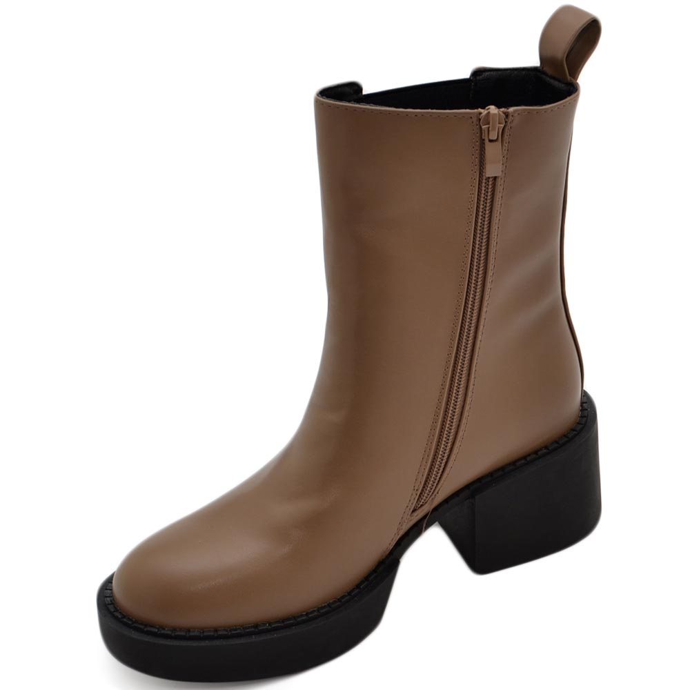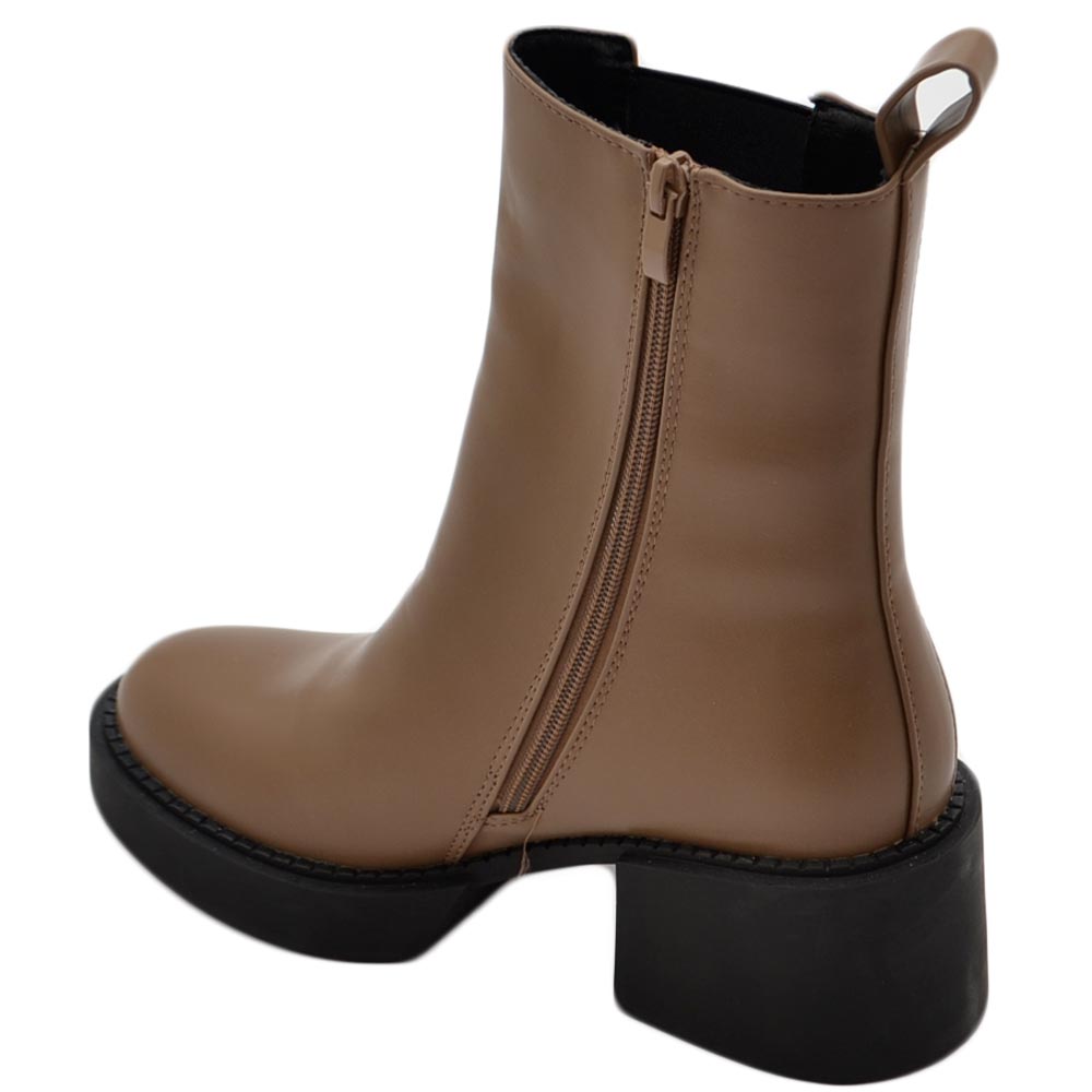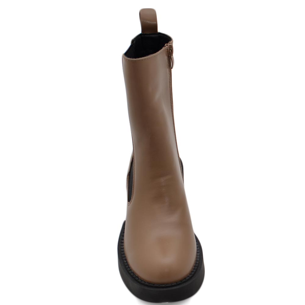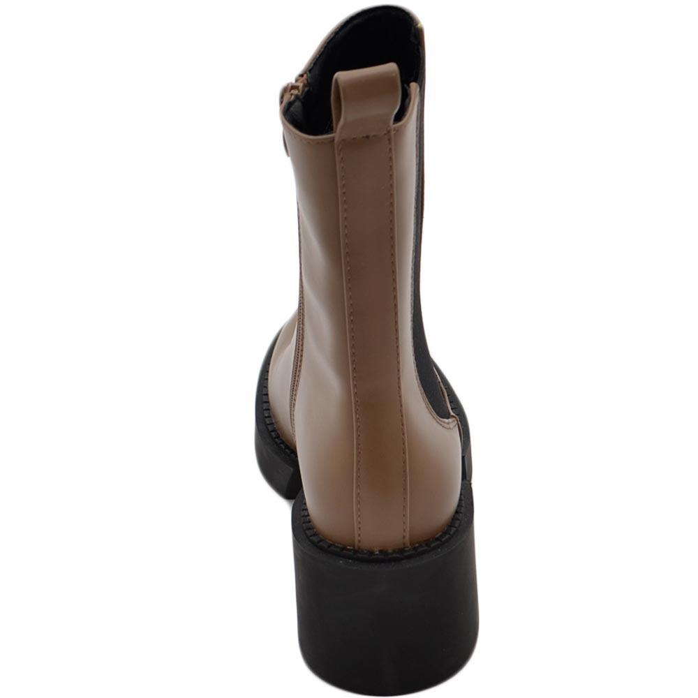 Stivale basso donna platform chelsea boots beige con fondo alto zip elastico laterale tinta moda tendenza comodo