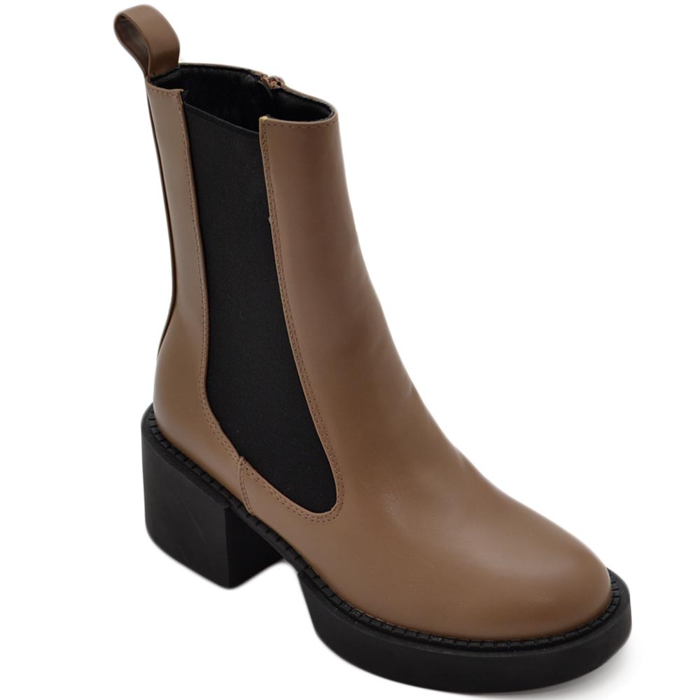 Stivaletto donna linea Basic cuoio con elastico Beatles punta squadrata tacchetto 2 cm moda.