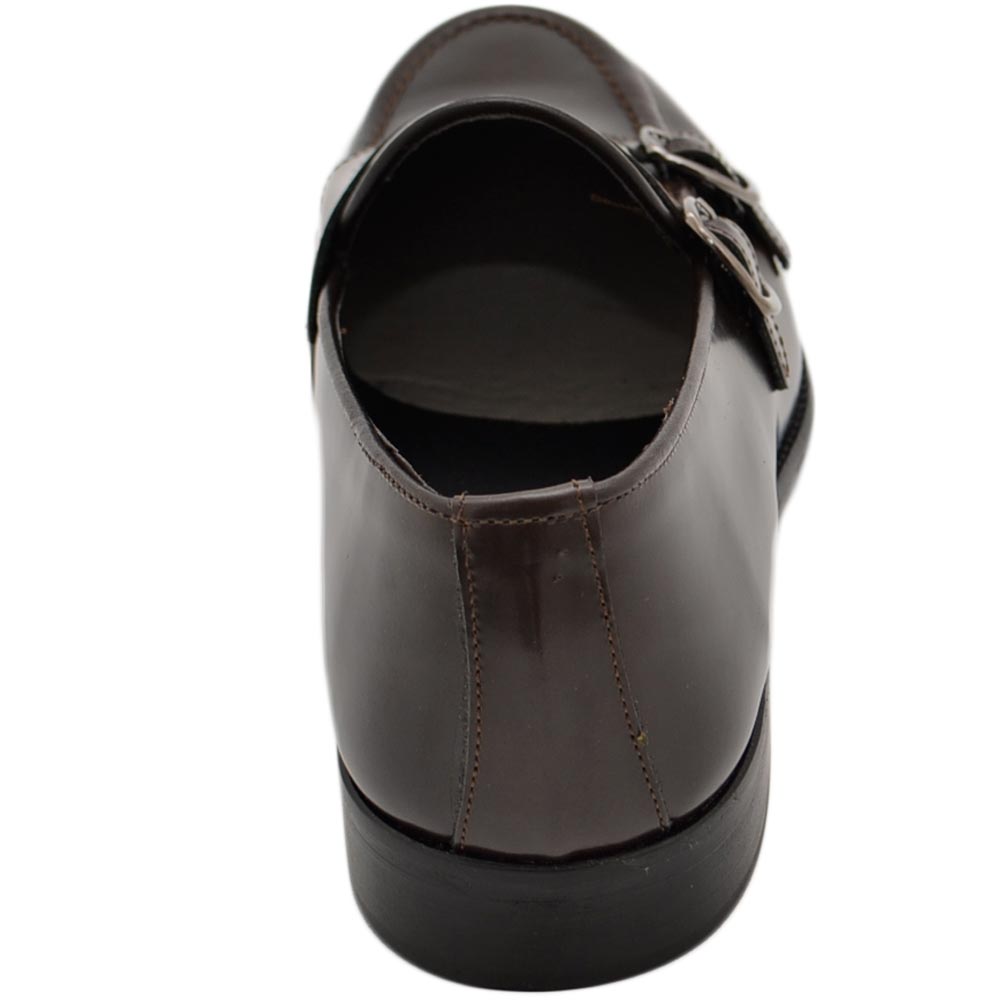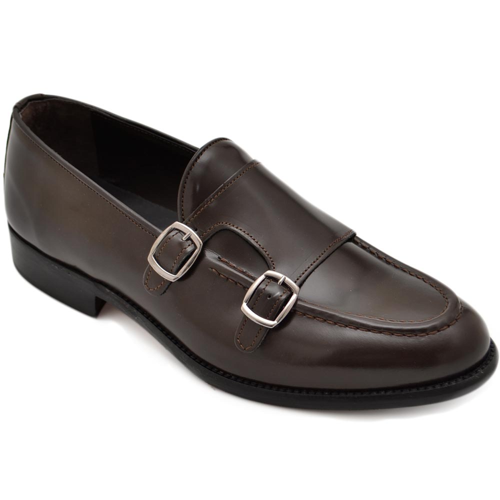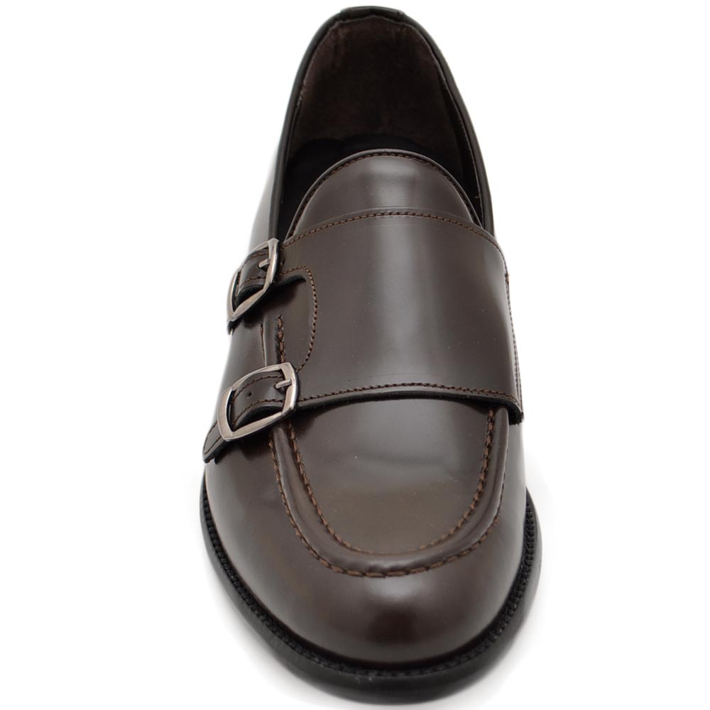 Scarpe uomo mocassino fibbia doppia marrone sottile derby vintage in vera pelle semilucida business fondo vero cuoio