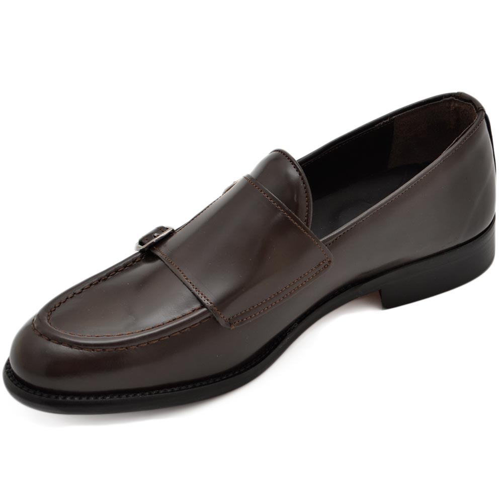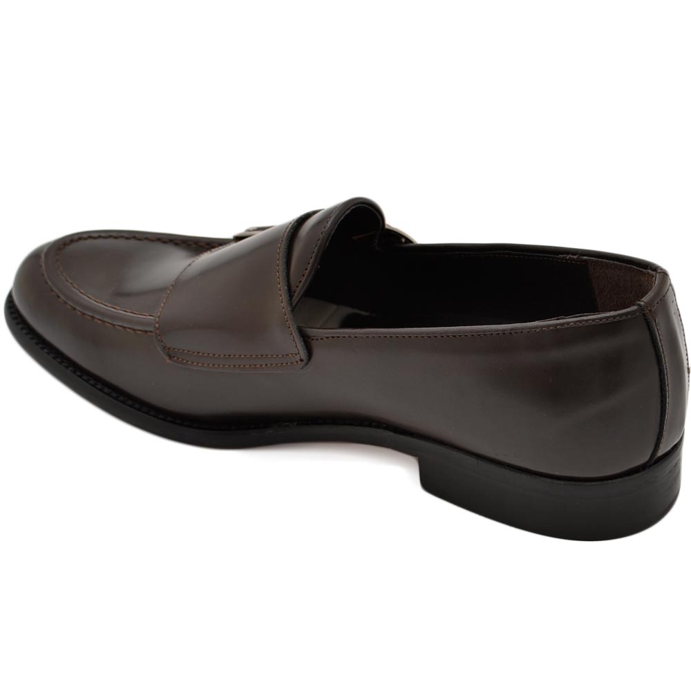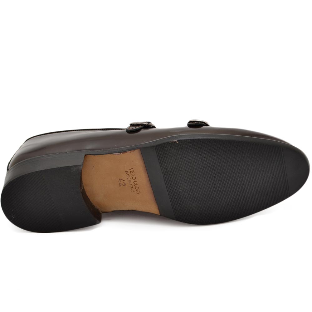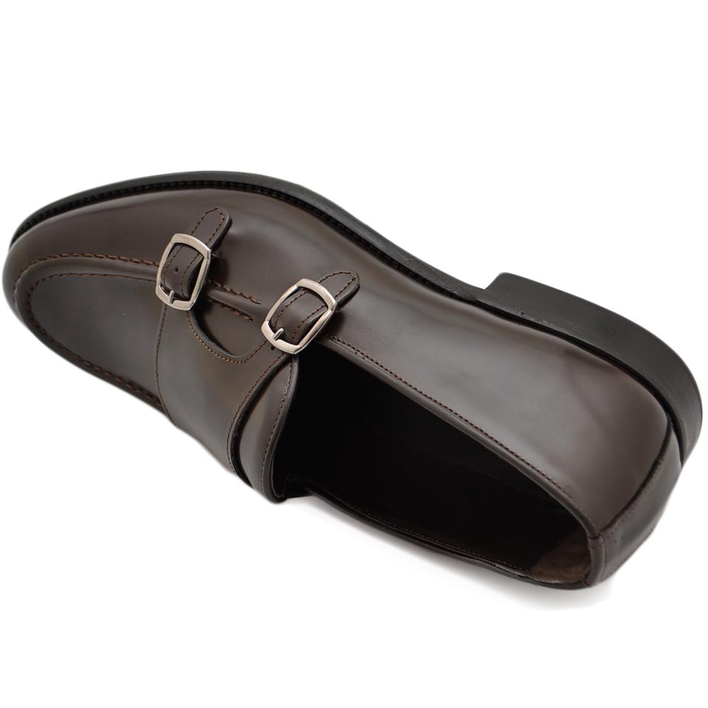 Scarpe uomo mocassino fibbia doppia marrone sottile derby vintage in vera pelle semilucida business fondo vero cuoio