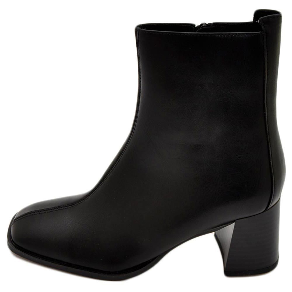 Scarpe stivaletto donna Tronchetto in ecopelle nero punta quadrata alla caviglia tacco largo comodo 5 cm zip