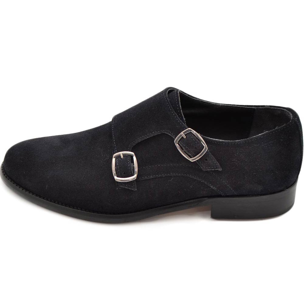 Scarpe uomo doppia fibbia eleganti vera pelle scamosciata blu suola vero cuoio con antiscivolo handmade in italy