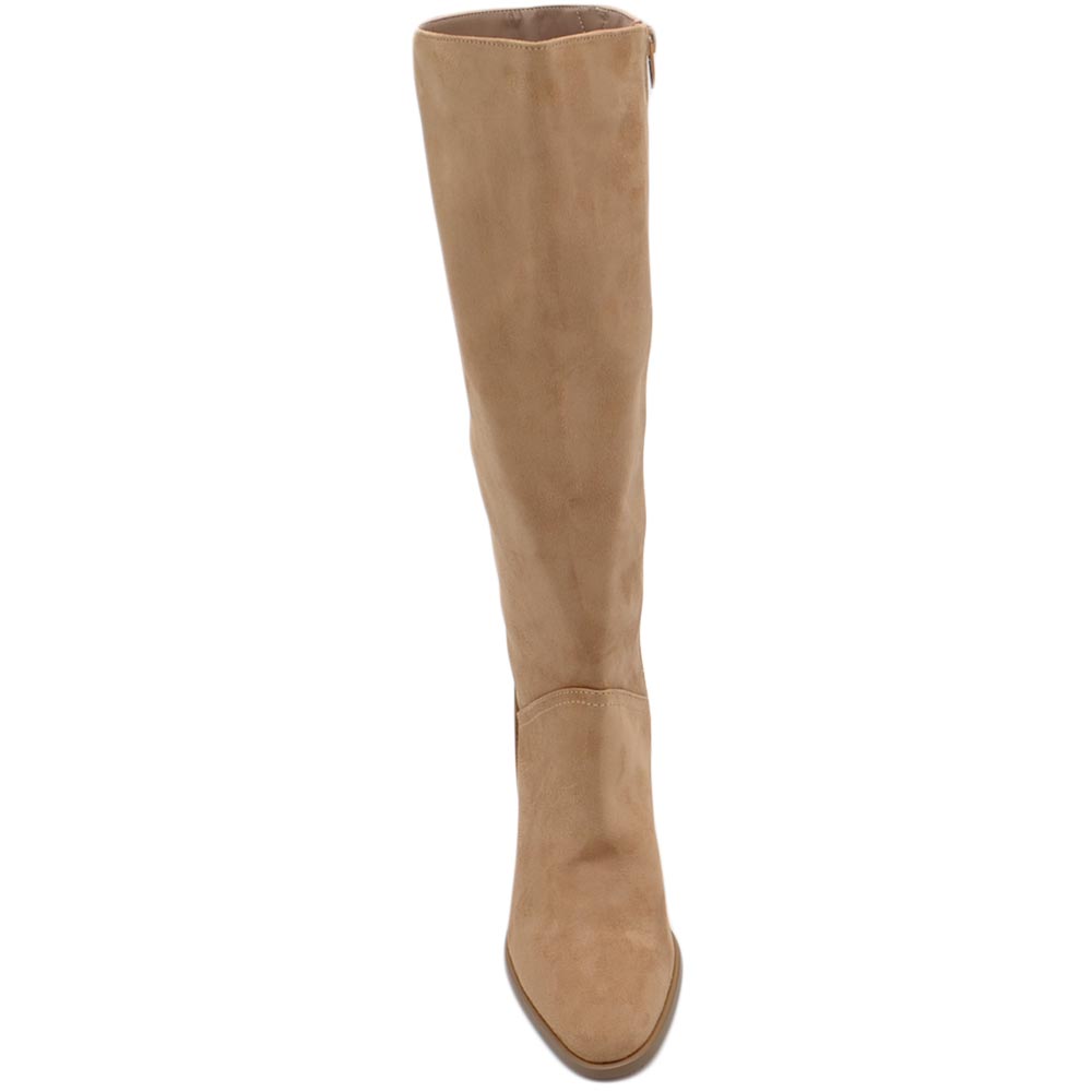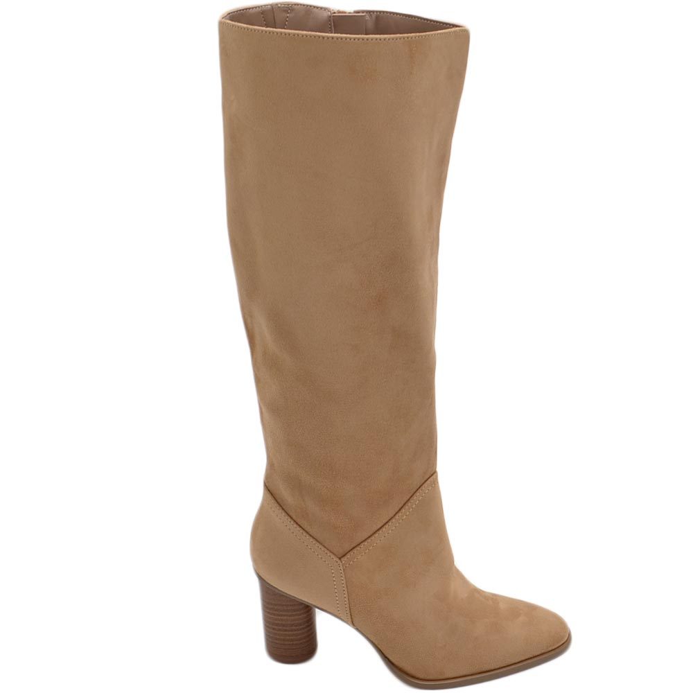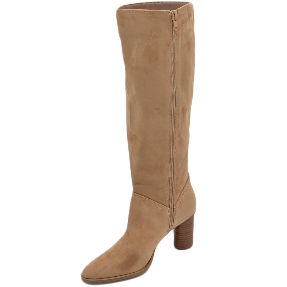 Stivale donna alto rigido in camoscio cuoio tacco largo liscio linea basic a punta moda altezza ginocchio zip.