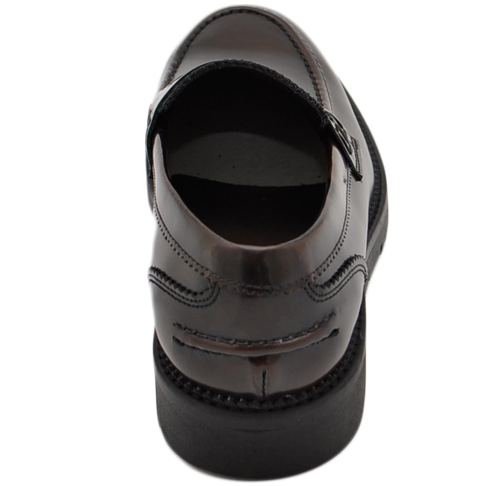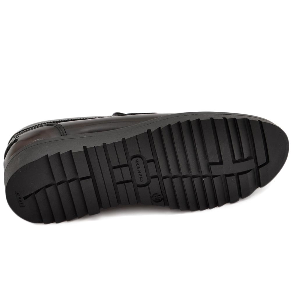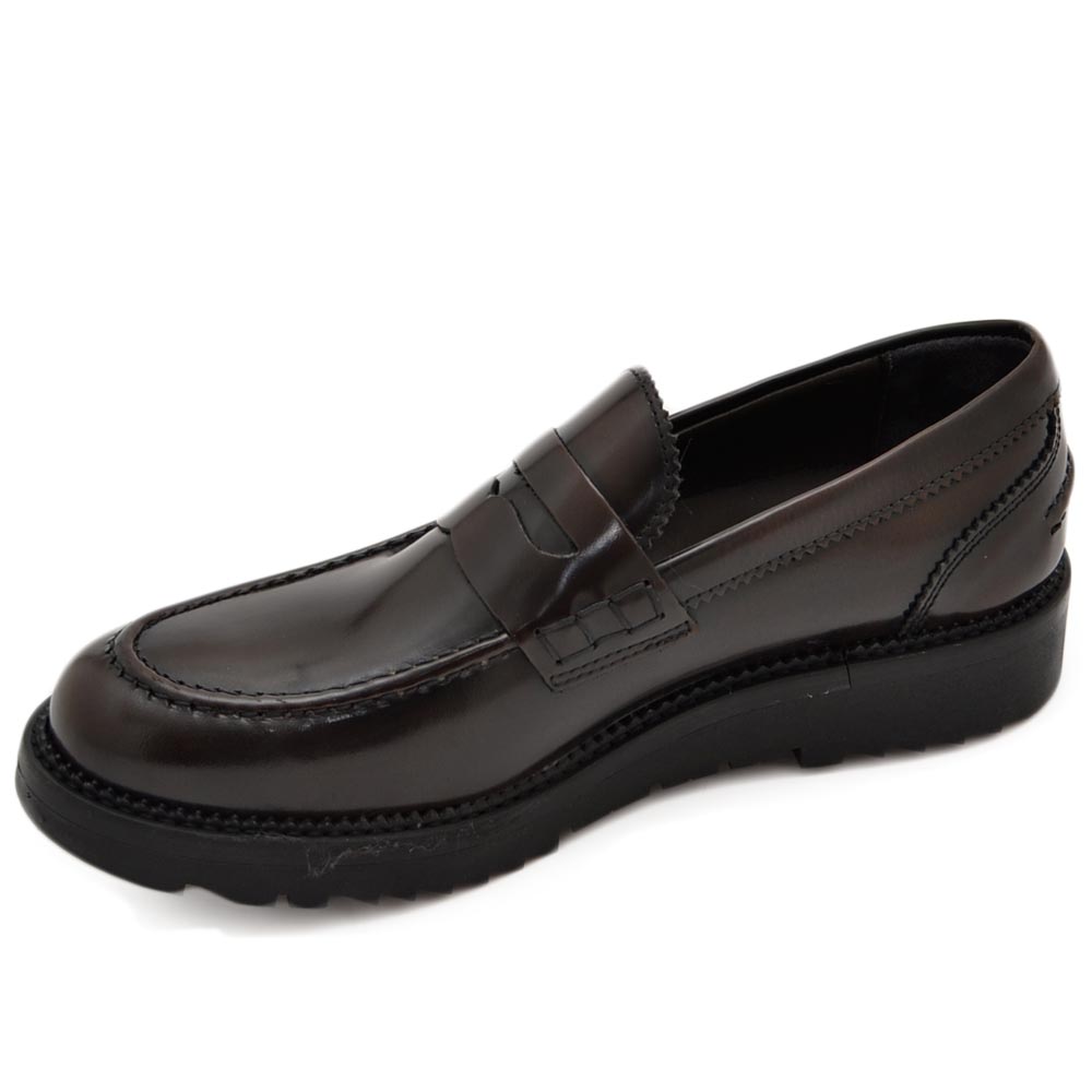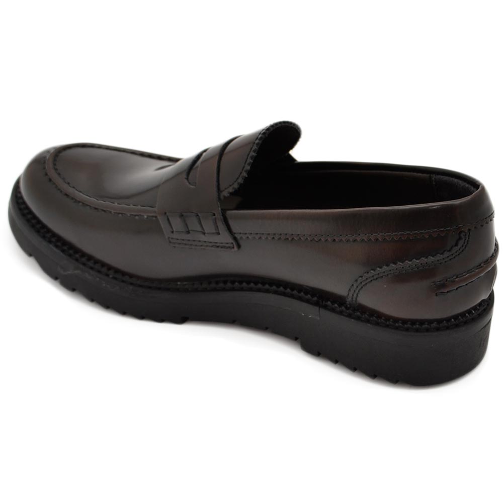 Mocassimo college uomo classico in vera pelle liscia marrone con suola alta zigrinata 3,5 cm