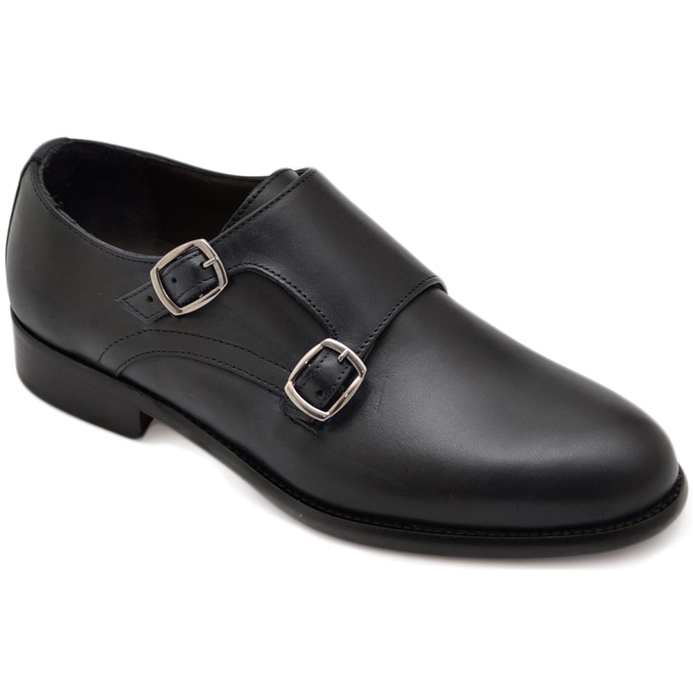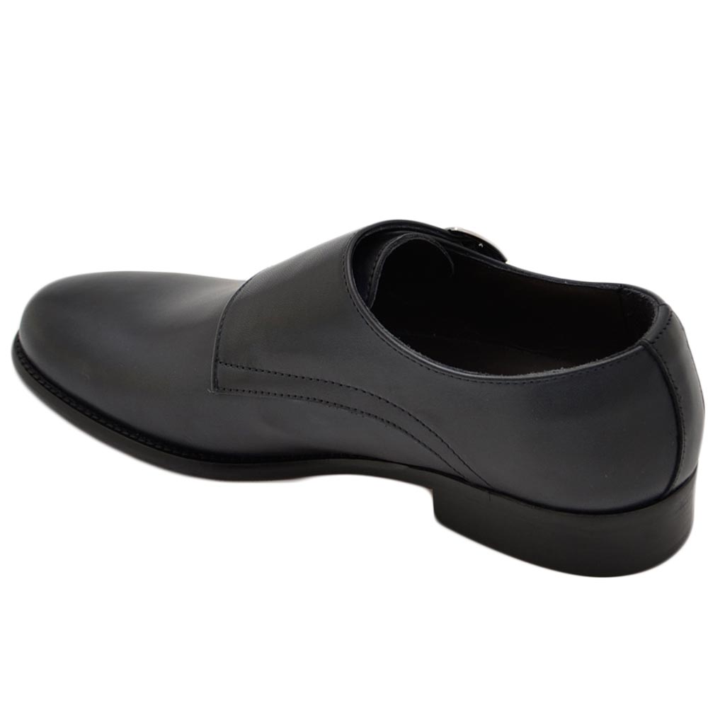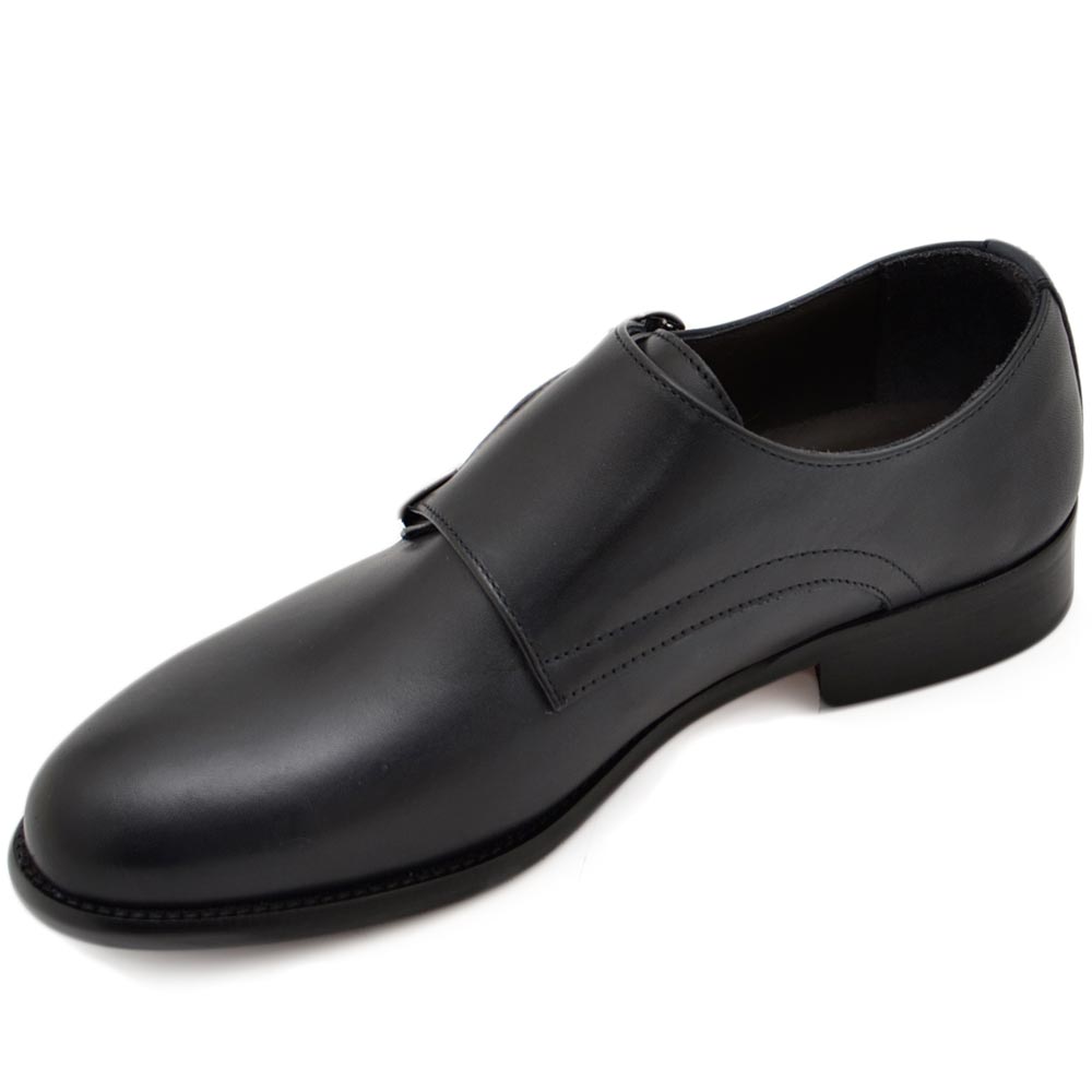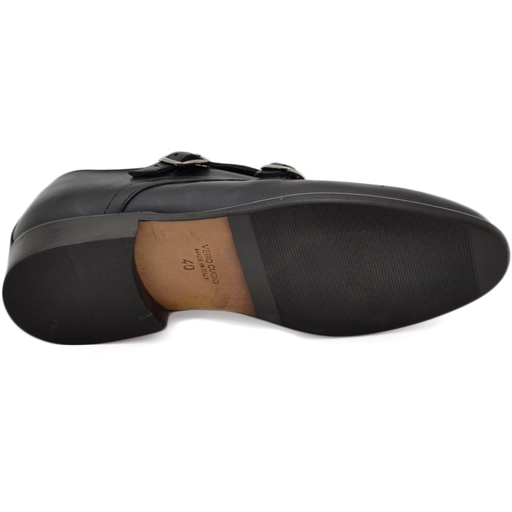 Scarpe uomo doppia fibbia eleganti vera pelle blu suola in vero cuoio con antiscivolo handmade in italy