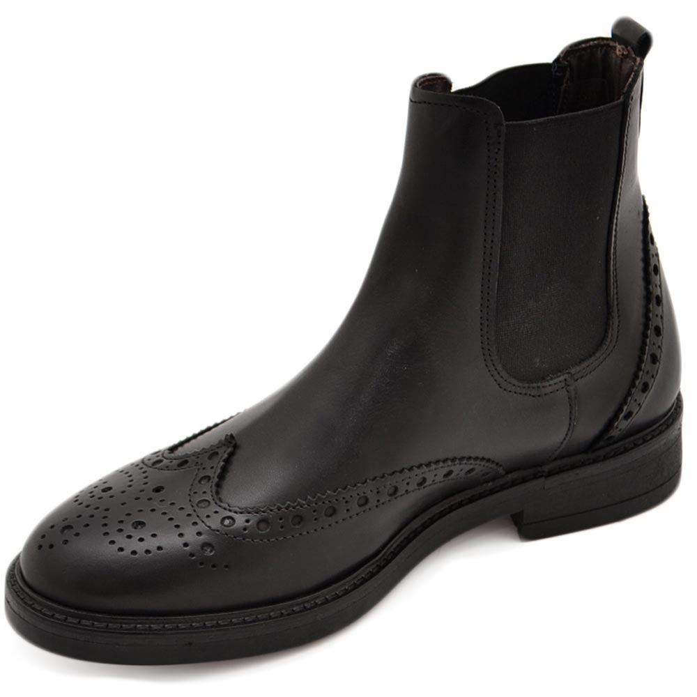 Beatles uomo stivaletto con elastico in vera pelle con ricamo nera suola in gomma casual made in italy handmade